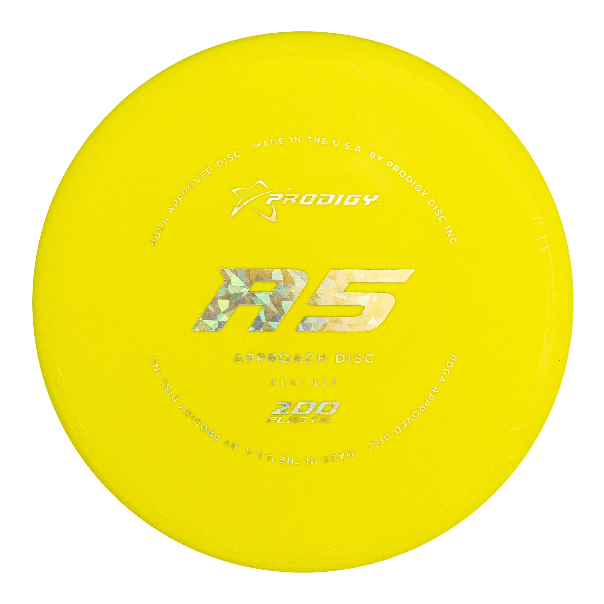 The Prodigy A5 is a slightly overstable approach disc that will work in to be a straight flyer. It has a nice, smooth feel with a shallow profile and flat top, which makes it ideal for sidearm approaches. It can handle torque well and has a mild finish on the end, so it won't skip too far from where it lands.