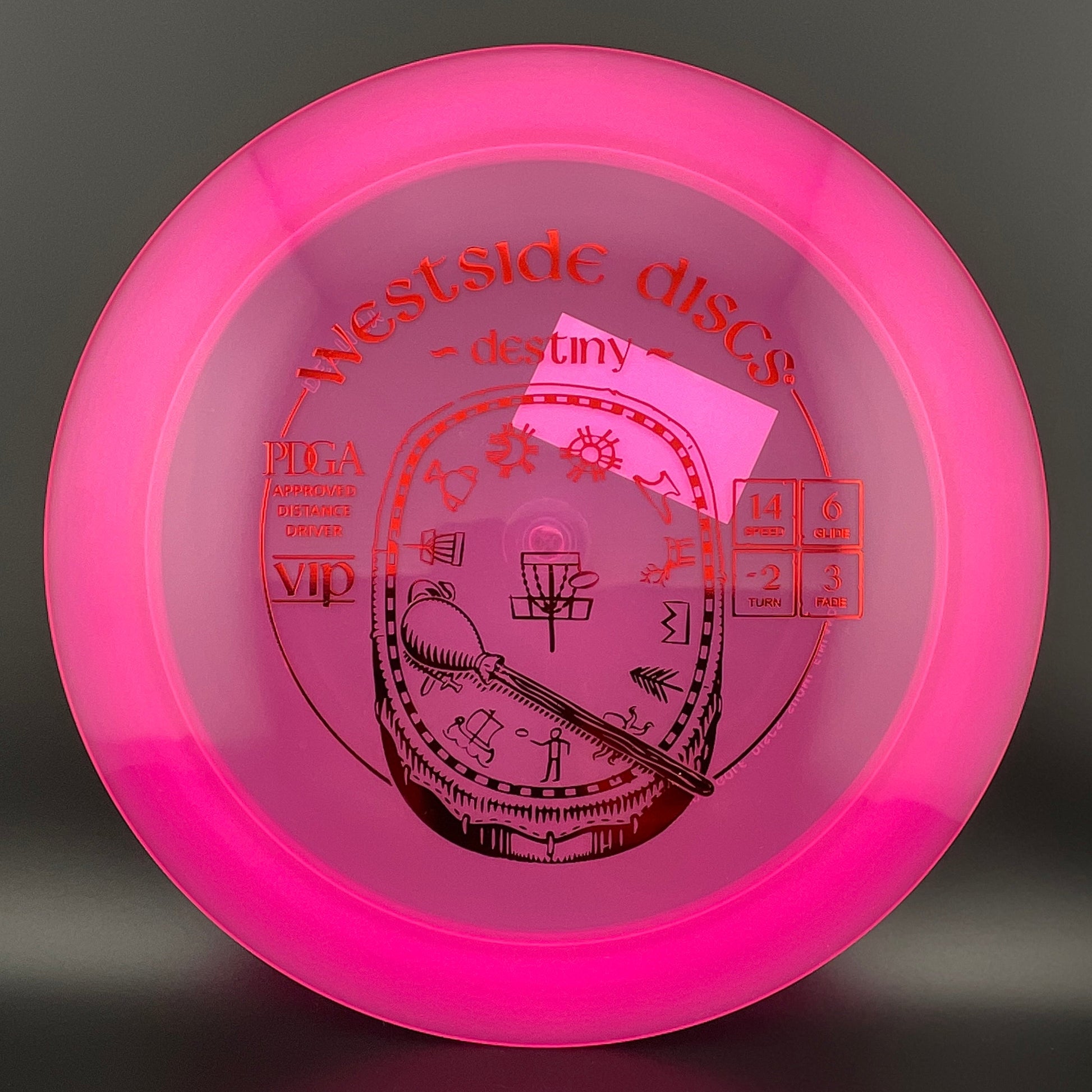 Westside Discs' Destiny is an understable super-high speed driver. Two things are undeniable about this disc - speed and glide. This beauty really gets out there. For the higher arm speeds, a powered down throw will still get out to great distances. For the lower arm speeds, this will be your long range bomber. Everyone can find a way to throw the Destiny. You will just have to walk a long way to go pick it up.