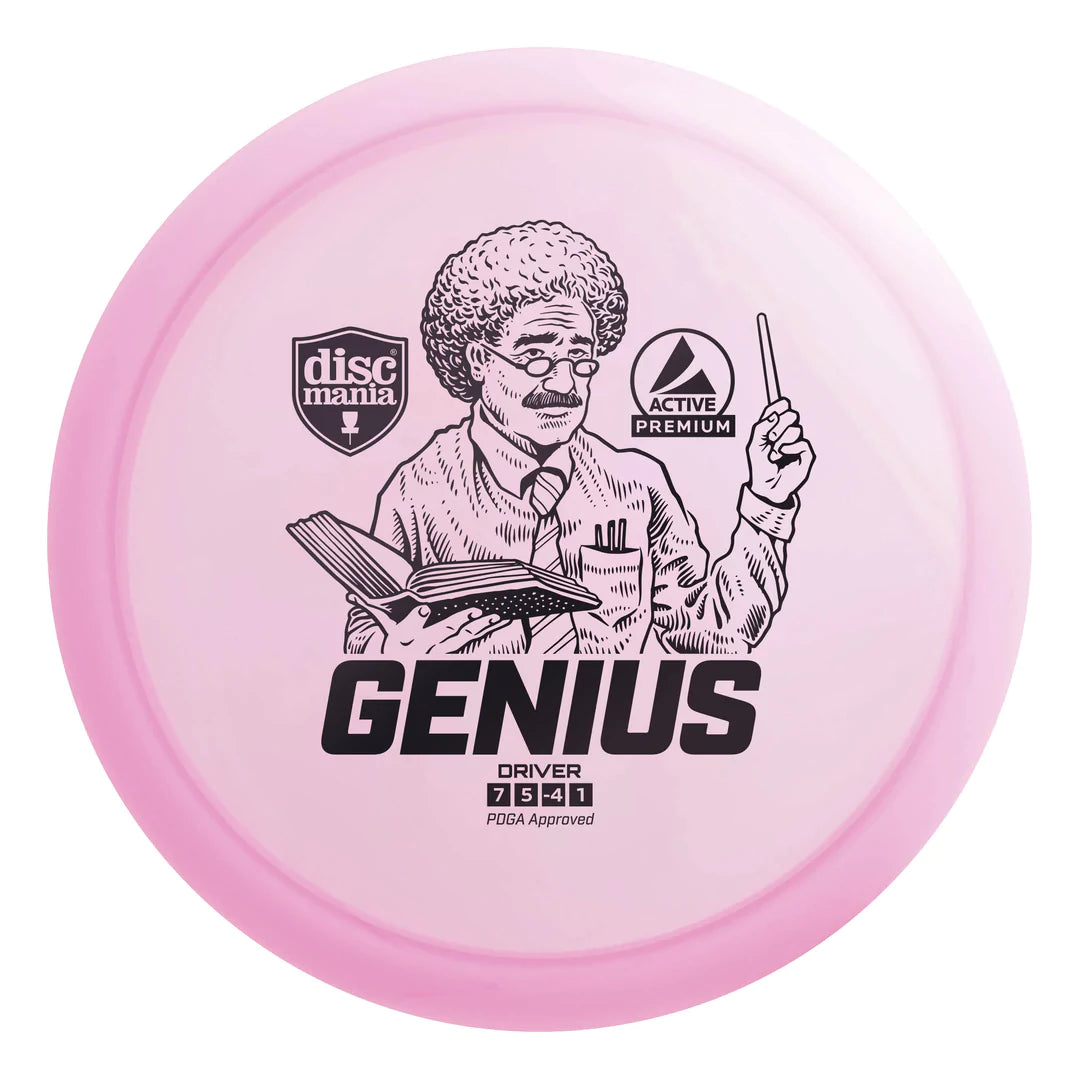 Designed to flip and fly, the Genius has massive amounts of turn making this the optimal disc for beginners as well as anyone looking for a disc that can do more. Due to its unique flight characteristics the Genius is able to fill a variety of shots in the bag making this an optimal driver for any player. The Genius uses its massive turn to carve shots in the air, navigate tight lines, and even turn into a roller that tears down the fairway. The Active premium plastic is a step above traditional base-level plastic. You can expect it to be a bit more rigid to the touch and maintain a grippy, glossy appearance.