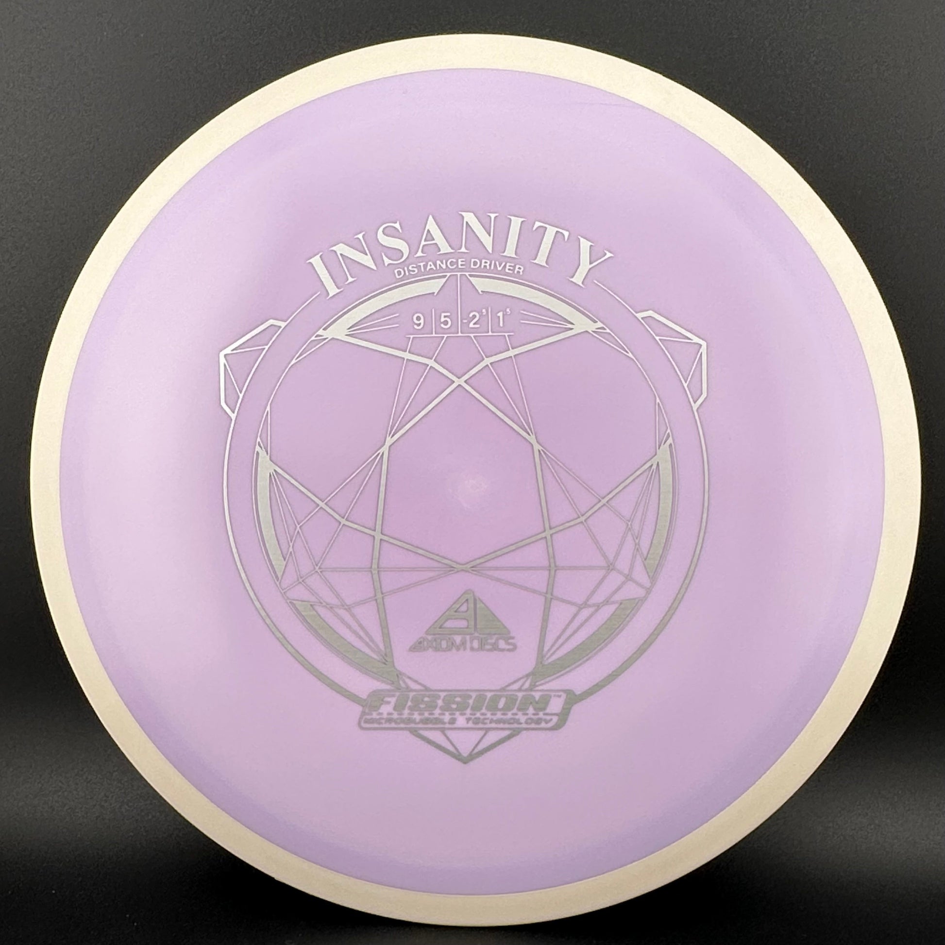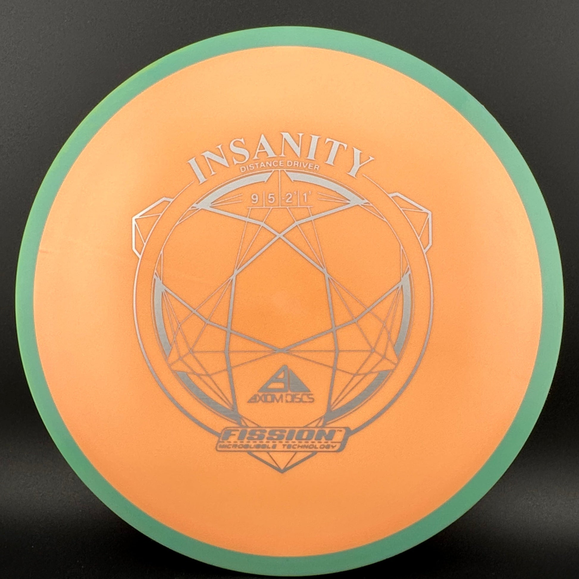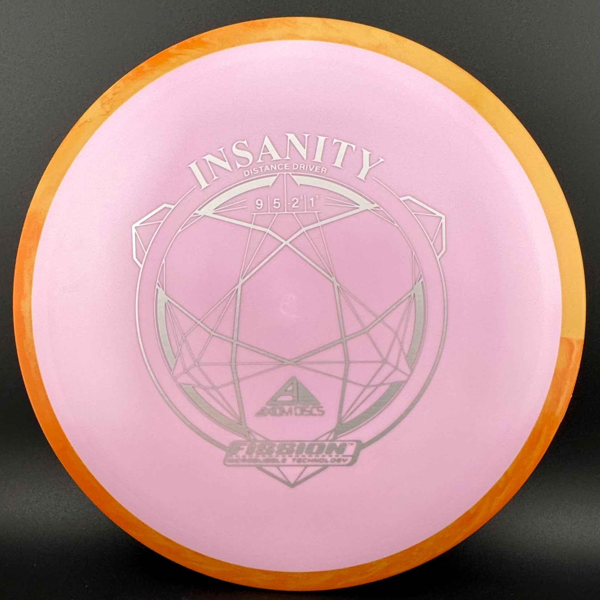The Insanity was Axiom's first distance/control driver. This disc is slightly less stable than the ultra popular MVP Inertia. The Insanity flies like a longer crave, and will provide straight as an arrow flights for intermediate players, and slightly understable turnovers for power players.