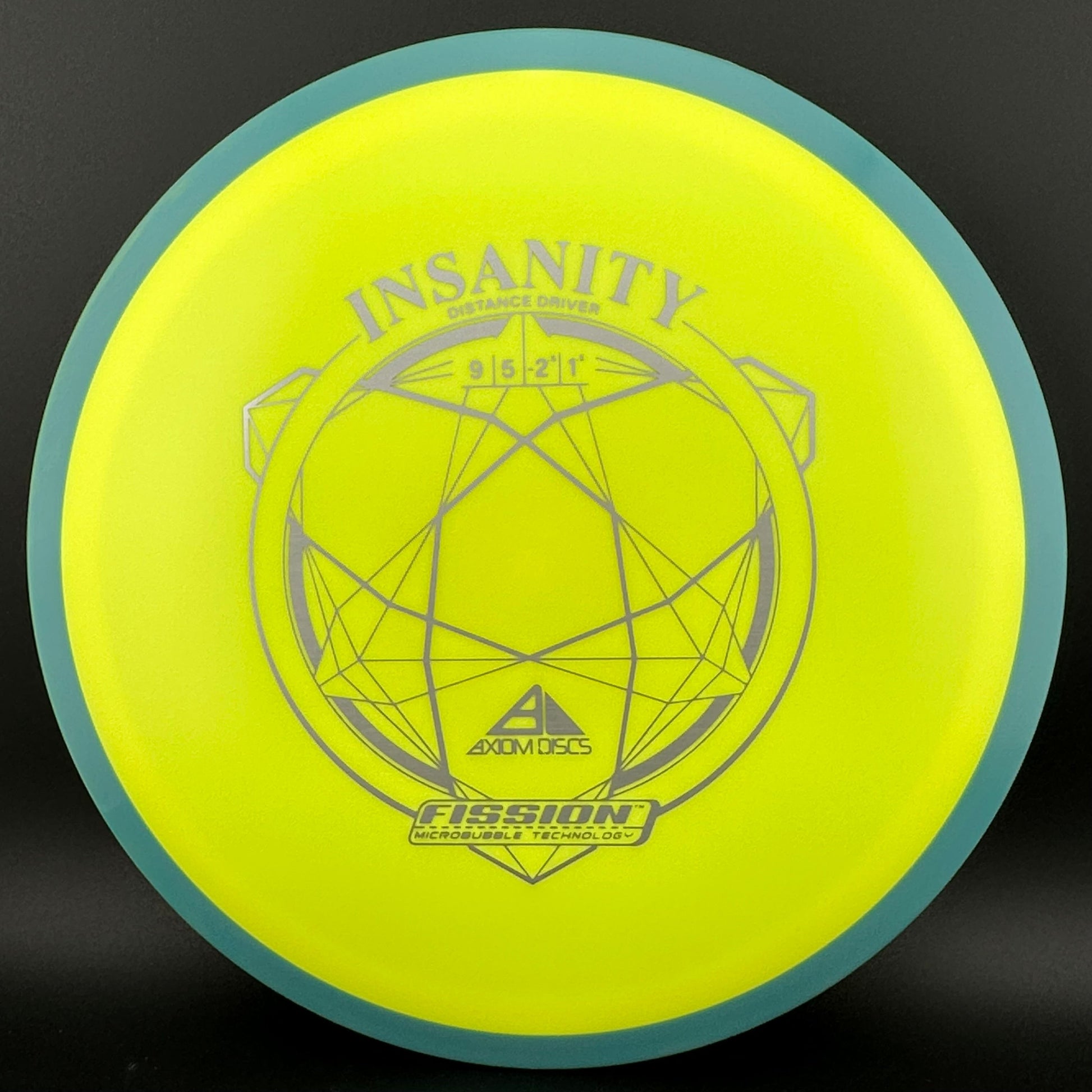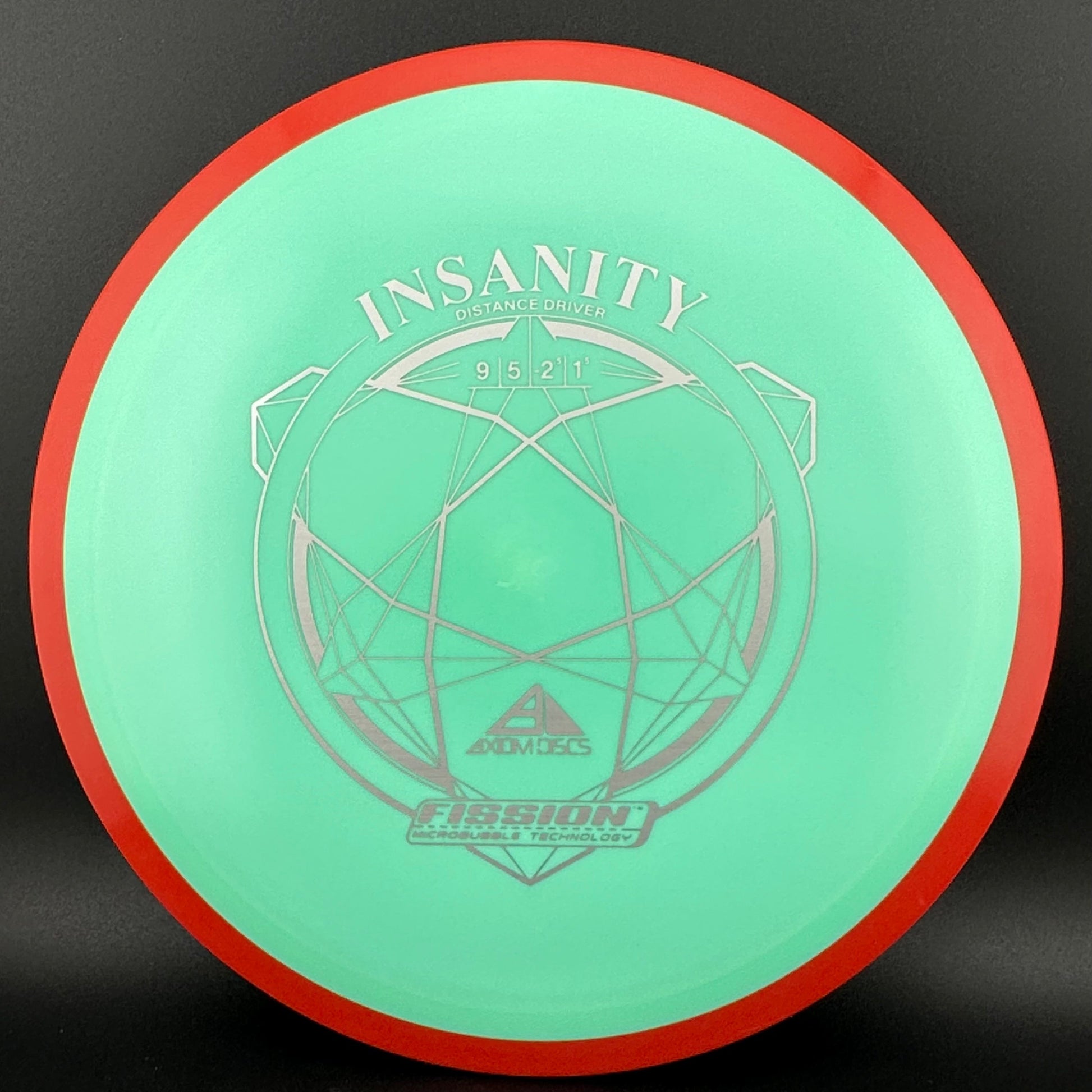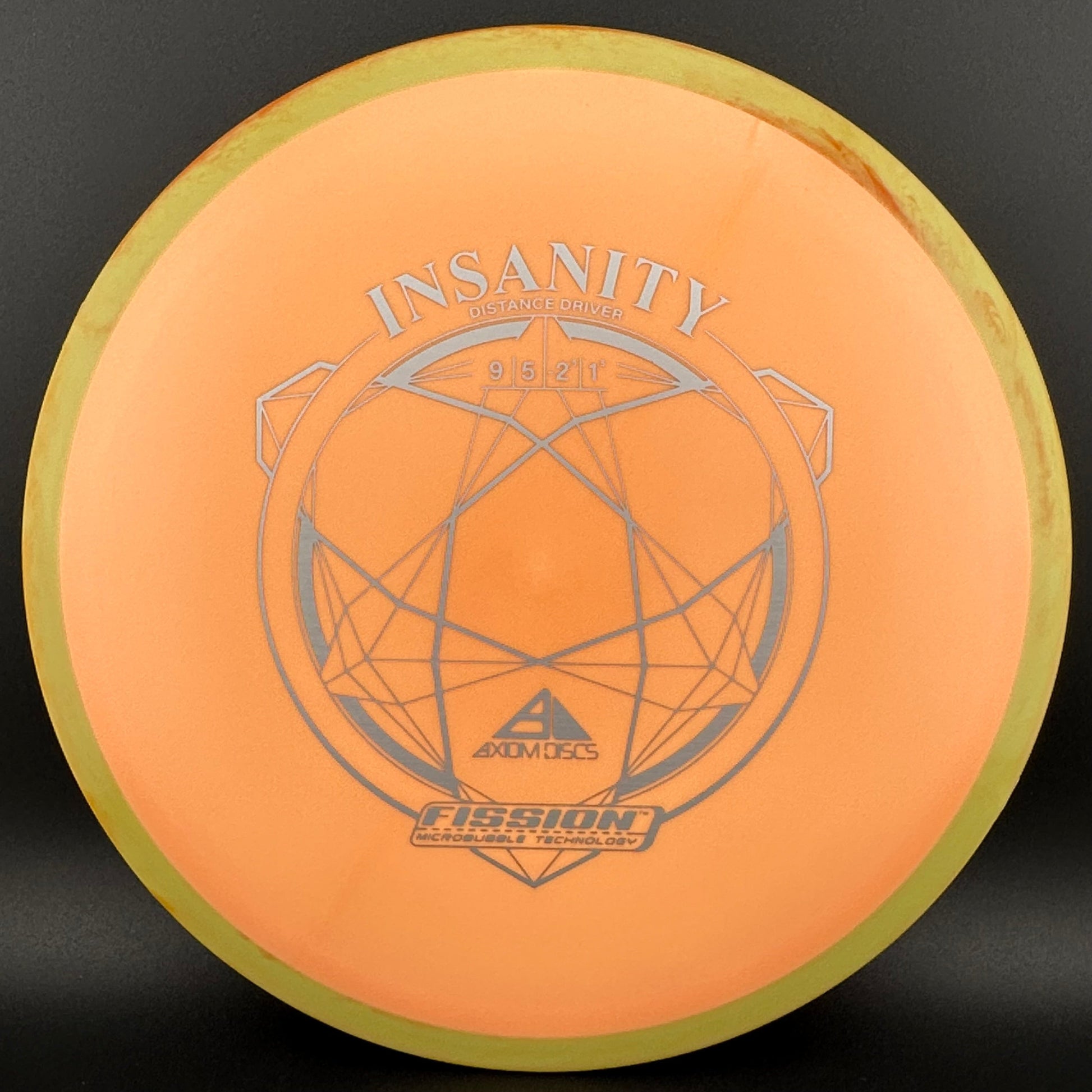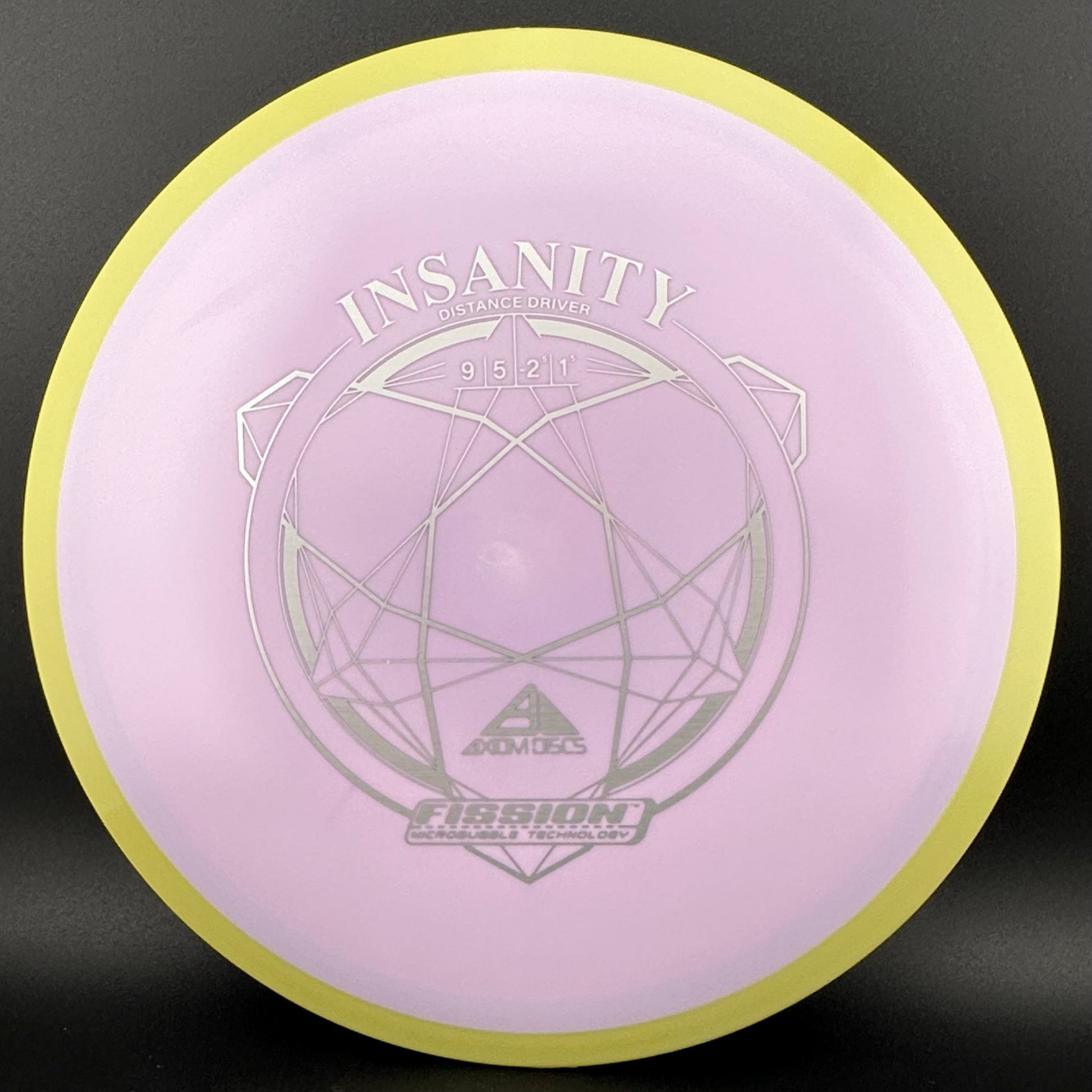 The Insanity was Axiom's first distance/control driver. This disc is slightly less stable than the ultra popular MVP Inertia. The Insanity flies like a longer crave, and will provide straight as an arrow flights for intermediate players, and slightly understable turnovers for power players.