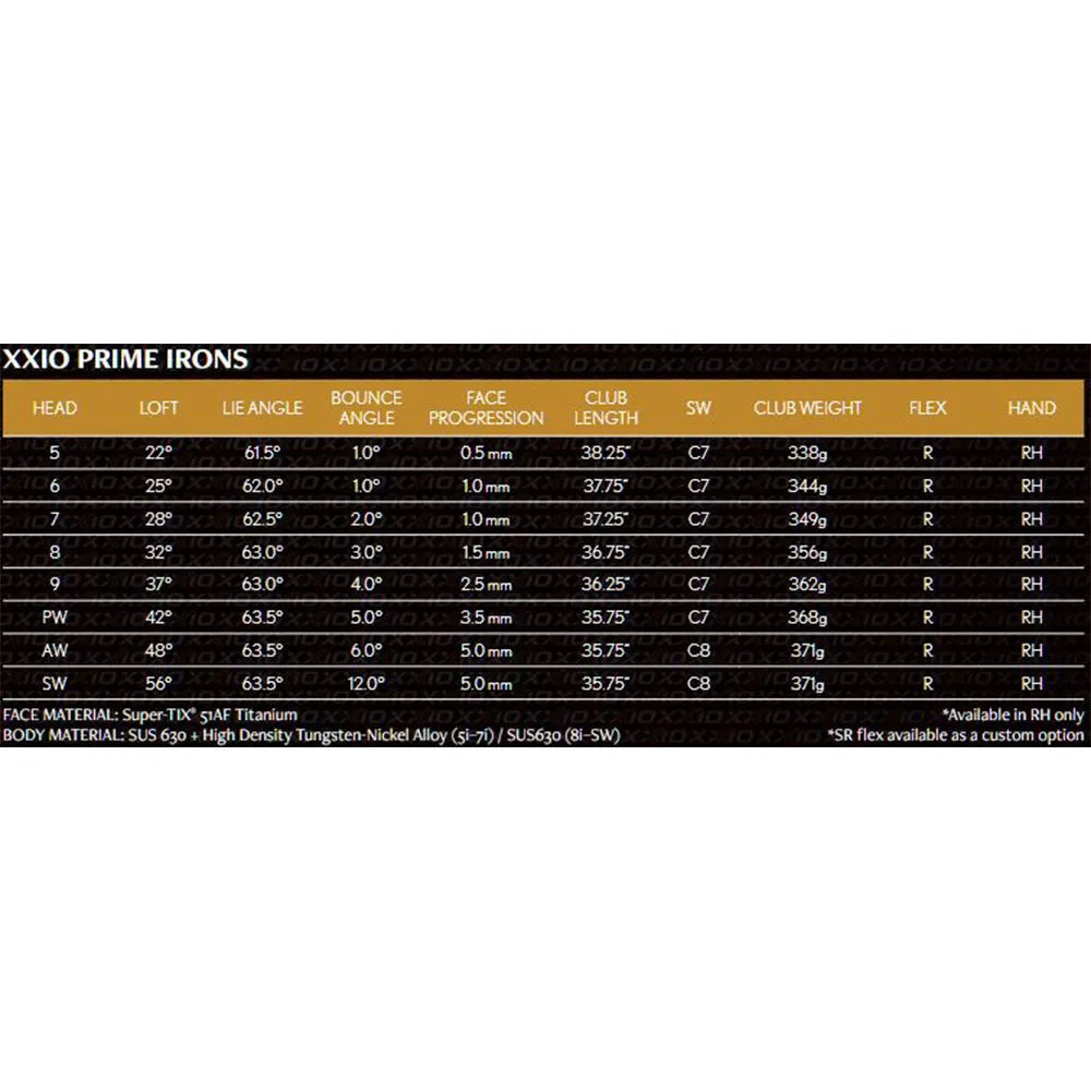 • Ultra-lightweight XXIO Prime SP-1200 graphite shafts (approx. 44.5g)