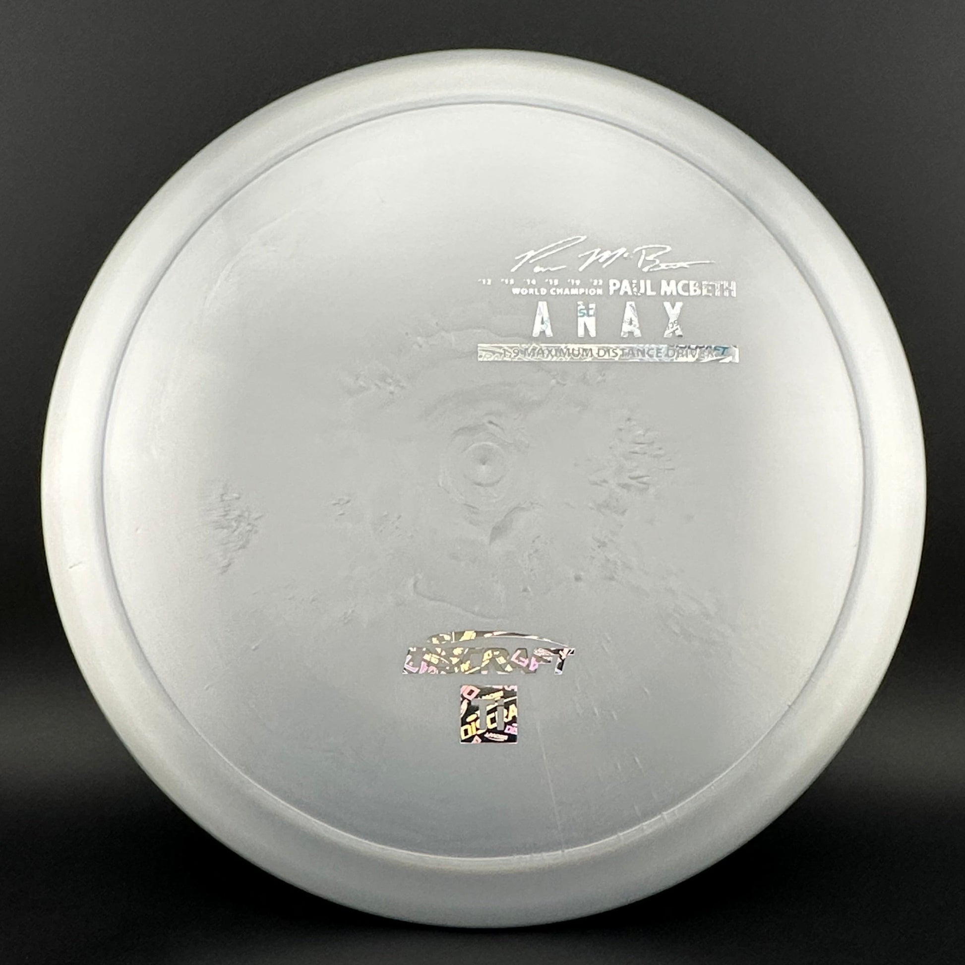 The Anax (pronounced "Onyx") is Paul McBeth's new signature fairway/power driver. This 10 speed driver will fight the wind and stay straight down the fairway before a nice fade at the end. Slower arm speeds will find this disc to be very reliable for shorter fairway drivers. Big arms can expect big distance out of the Anax.