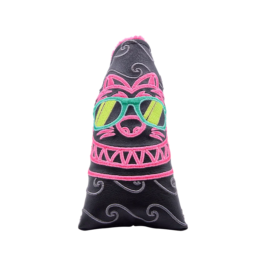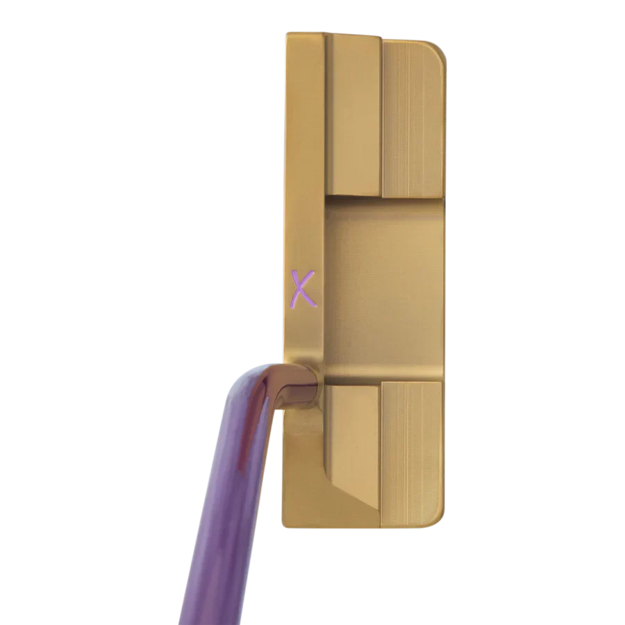 Exclusive to THE HIVE™! This DASS SS9 is a true showstopper and precision milled to 354-grams! The putter features a spud neck, Floating F.I.T. over Flymill Face with a special polished heart and dice on the heel. The stunning SS9 is finished in gold flame with a Lucky Cat on the sole and a poison sight dot alignment in purple and pink paintfills. This putter comes paired a UV Purple PVD Shaft, a white perforated leather Fat Cat Gripmaster grip, and a Maui Cat blade putter headcover. Only 1 available. Good Luck!