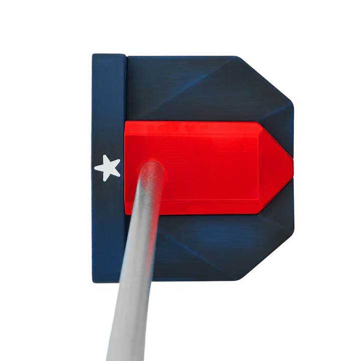 Exclusive to THE HIVE™! This 361-gram precision milled Antidote SB2 Mallet putter features Milled in the USA on the Blue TPT sole with red, white and blue paint fills on the 6061 Aluminum body. The Cherry Red Anodized Aluminum engine and navy blue TPT 303SS face features over 50 American stars, nano-engraved over the Micro Honeycomb™ facemilling. This small batch putter comes complete with a brushed metal shaft, navy perforated leather Gripmaster grip and a matching RWB Milled in the USA center shafted mallet headcover.