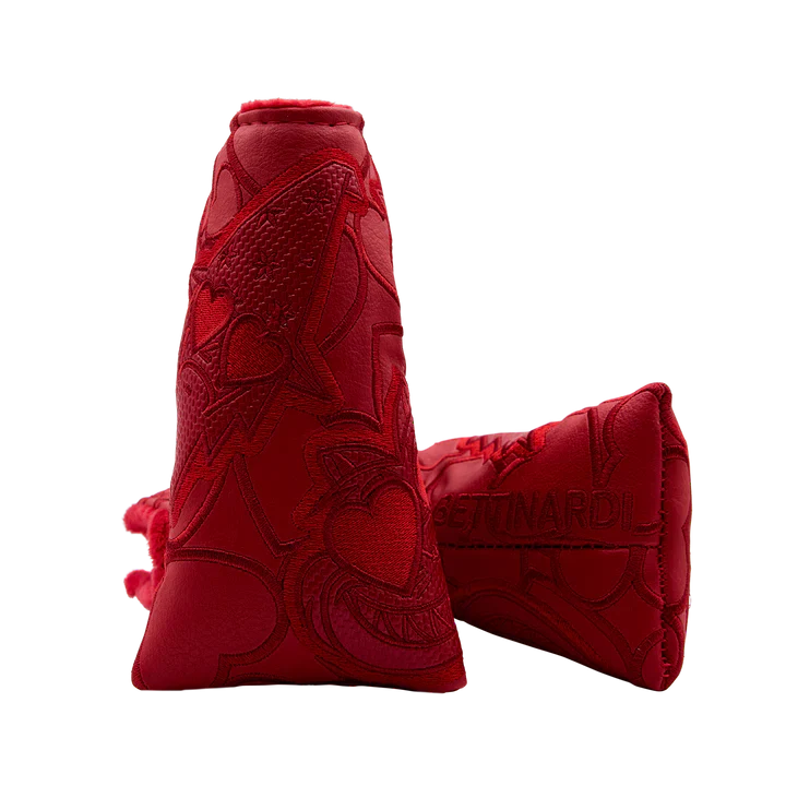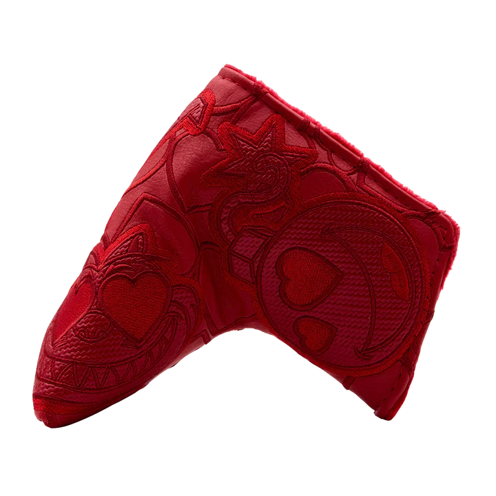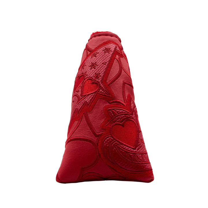It's Valentine's Day in THE HIVE! The first ever limited SB1, this DASS putter was precision milled to 359-grams and features our Heart Eyes Icons on the sole, ready to spread the love on the greens. Showcasing a polished Ghost face with nano-engraved hearts over a Mirco Honeycomb™ face milling, the pocket features a 6061 aluminum red insert with a Micro Honeycomb™ milling and a cupid Hex B. Finished with a chrome shaft and a red tonal Heart Eyes Multi Icon blade and Red Leather Gripmaster grip. Limited quantities are available. Good luck!