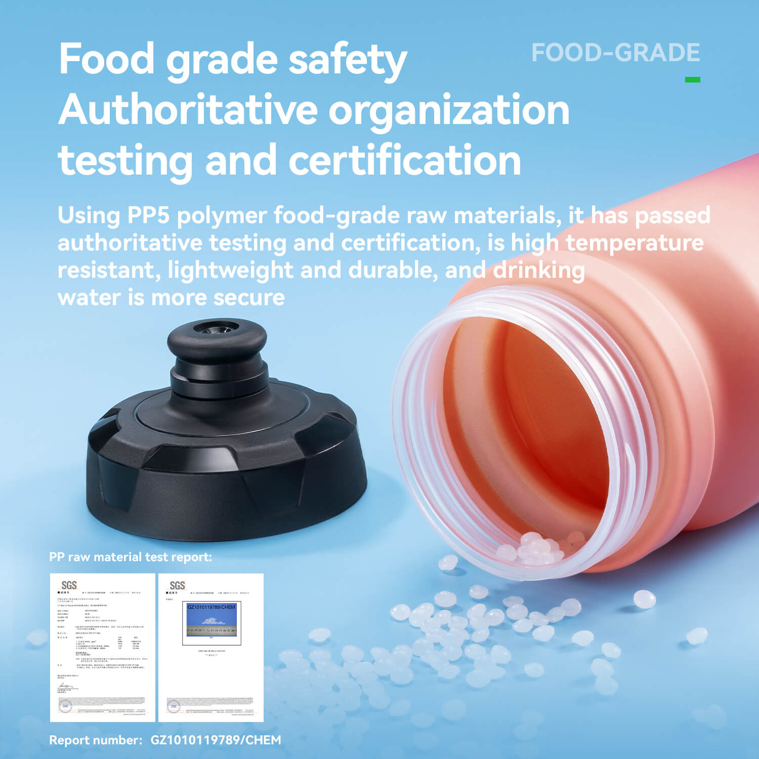 Made from high-quality PP5 food-grade polymer, this bike water bottle passes authoritative safety certifications, ensuring your hydration is safe and reliable. The durable and heat-resistant material makes it perfect for daily commuting, long-distance cycling, and outdoor adventures. -