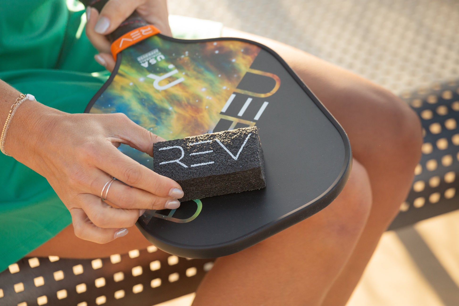 Maintain peak performance with the Rev Carbon Fiber Paddle Eraser, specifically designed for raw carbon fiber pickleball paddles.