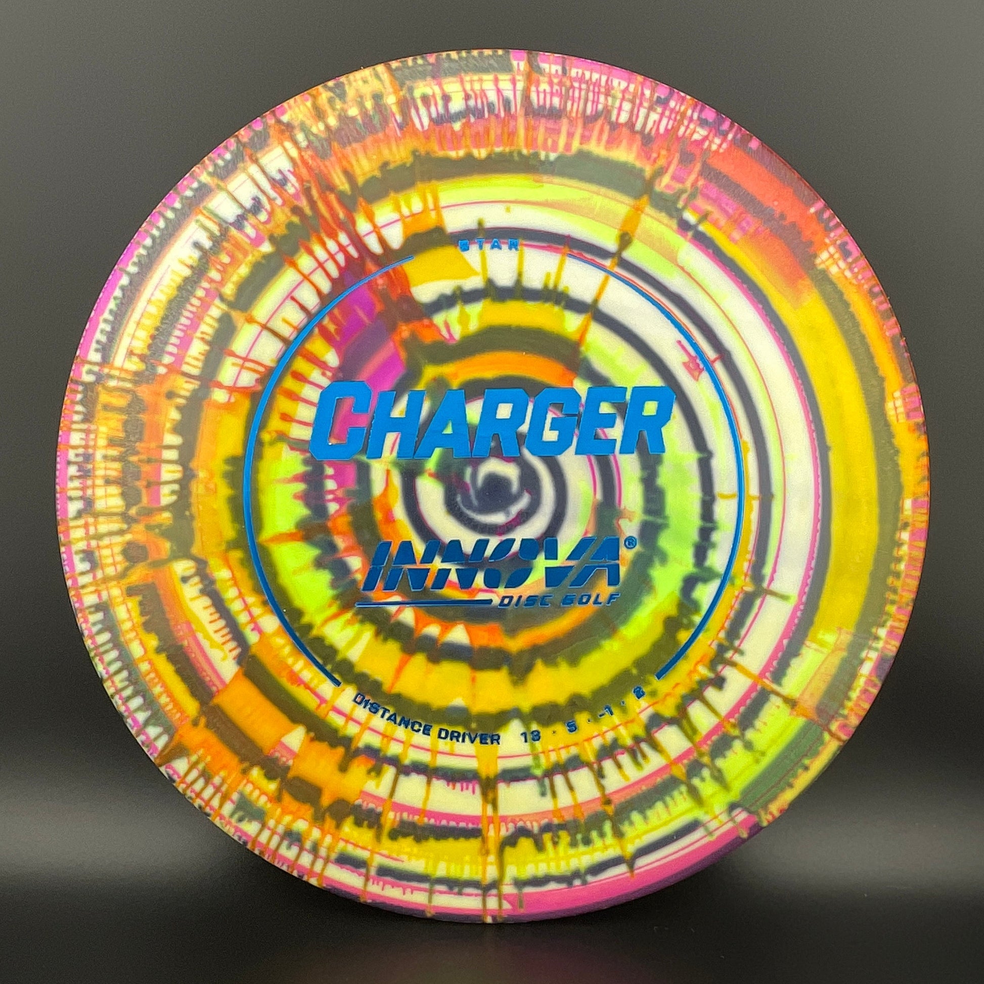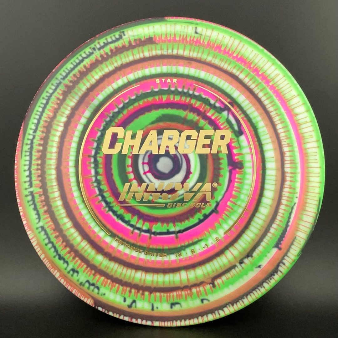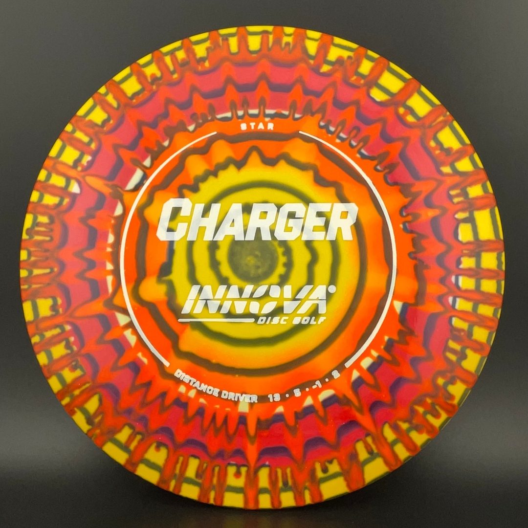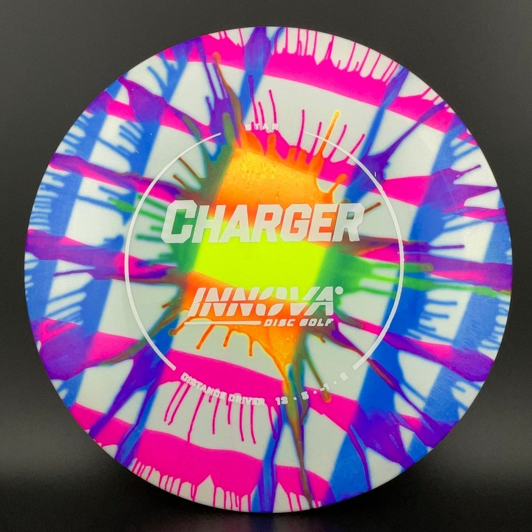 The Charger is a straight-finishing, 13-speed driver that can be thrown at full power without worrying about the disc flipping over. The Charger fills a gap between the Destroyer and the Shryke. For players looking for the consistency of the Destroyer with less fade, try the Charger. For those looking for the big distance of the Shryke, but in a disc that can better handle the wind, try the Charger.
