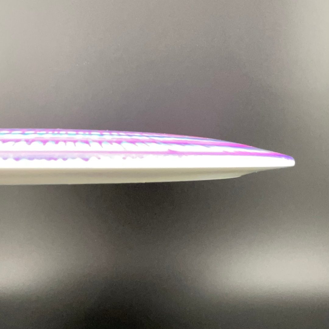 How the Charger flies: During mild and tailwind conditions you’ll experience a very fast, straight flight, followed by slight turn, and ending with a hefty fade. Go ahead and force it anhyzer. It will still come out. Watch the Charger valiantly fight back during medium-force headwind shots. Overall, it’s a very tightly tuned disc. For you sidearm specialists, give it a go. Put a little stank on it without the worry of a cut roll.