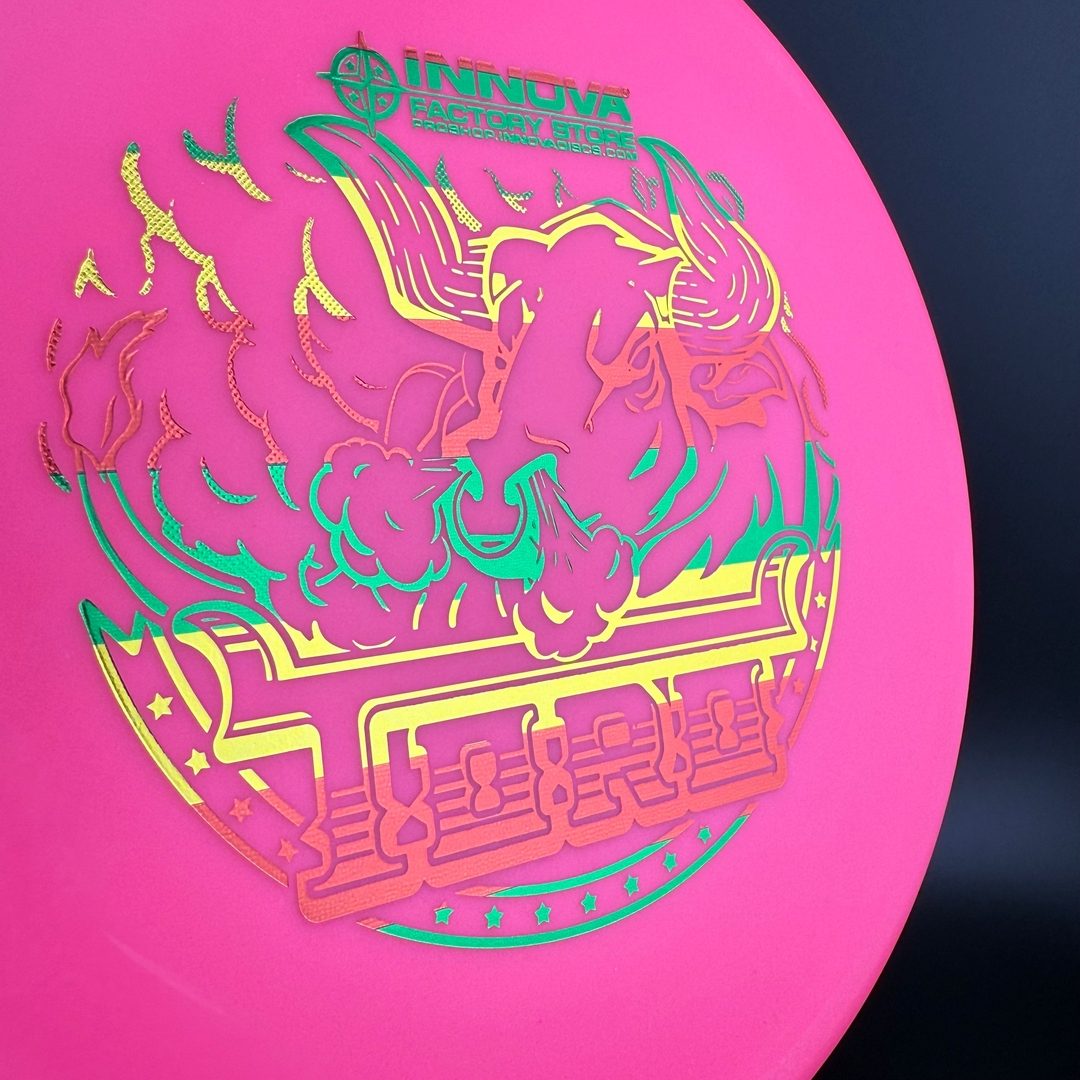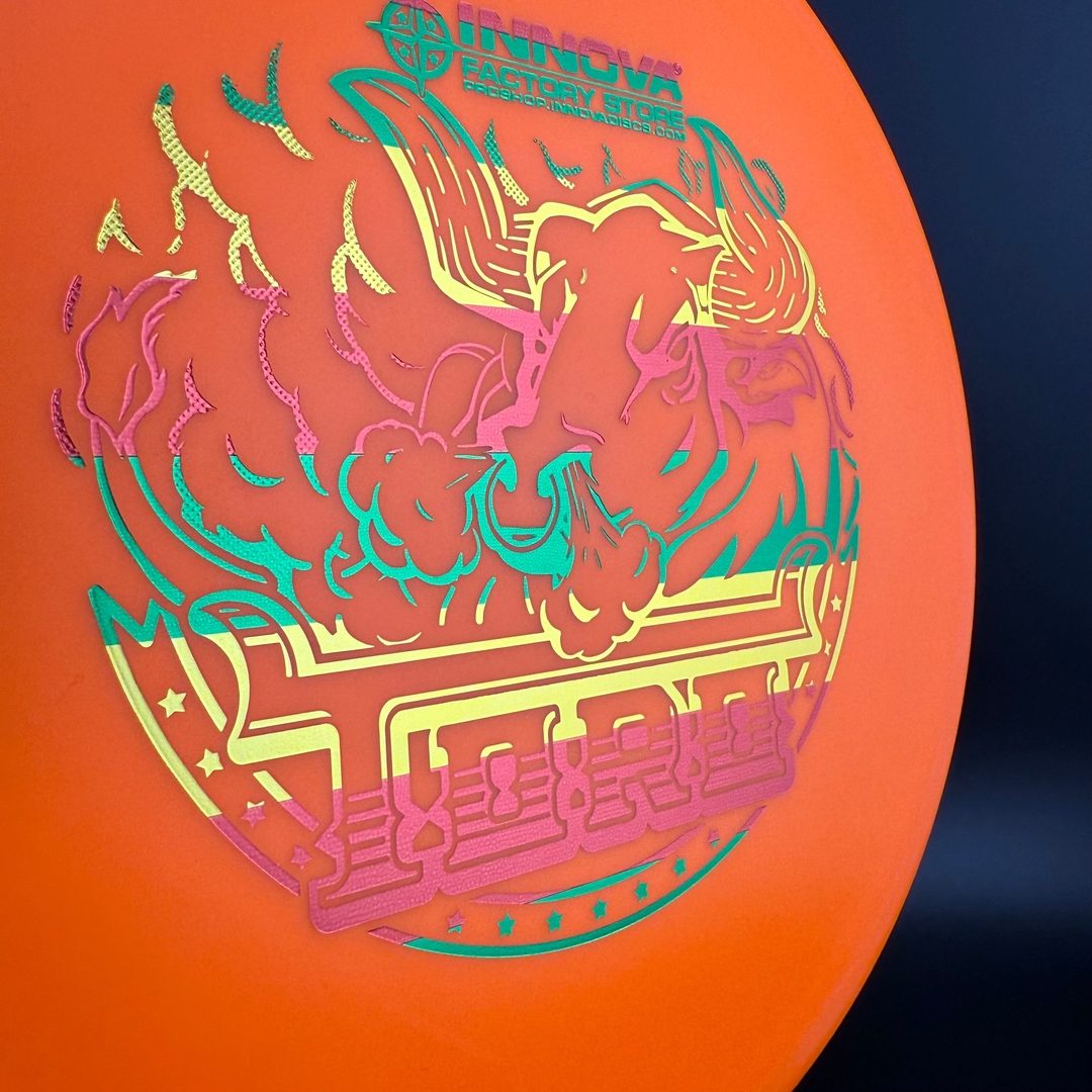 The Innova Toro is a flat-top, overstable approach disc designed in collaboration with Calvin Heimburg to deliver precise control and torque resistance. With flight numbers of 4 | 2 | 0 | 3, the Toro is perfect for forehand upshots, windy conditions, and backhand approaches that demand a dependable fade. Its low glide and strong finish make it ideal for sticking near the basket without skipping long. Whether you’re attacking tight lines or looking for a disc that handles power with ease, the Toro delivers elite-level consistency with a confident, compact feel.