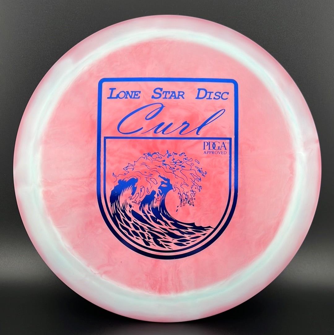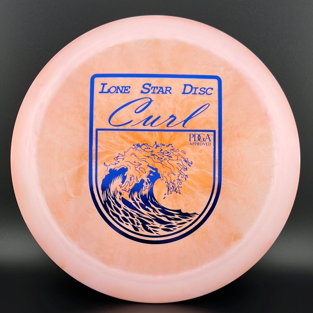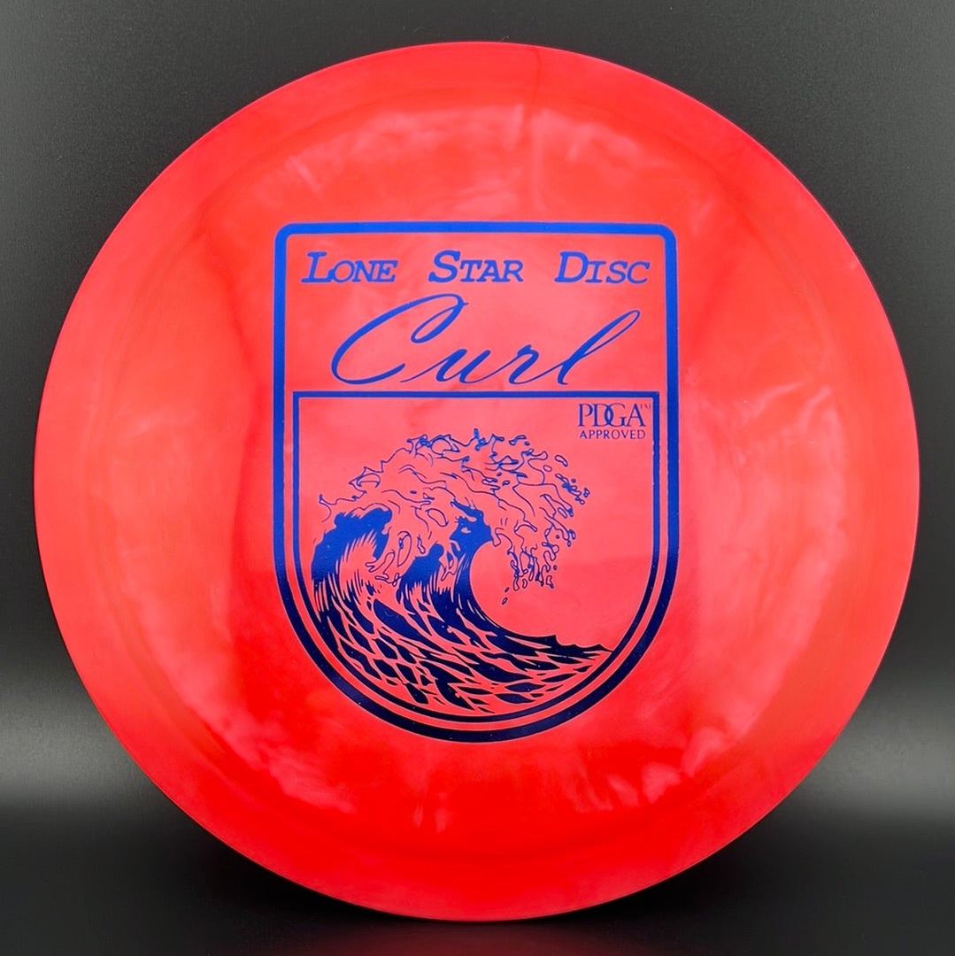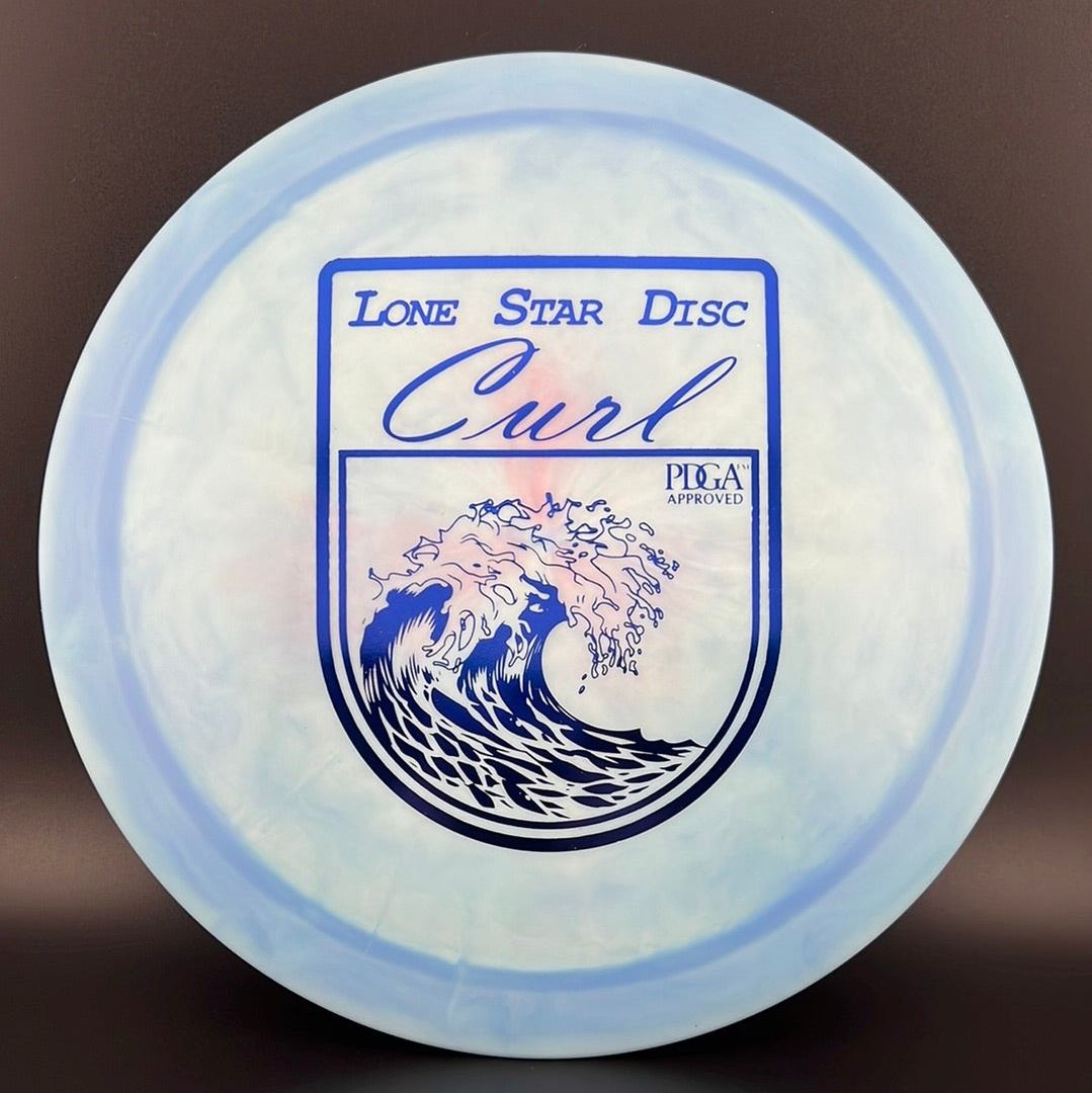 The Curl is a distance driver from Texas-based Lone Star Disc. At speed 11, many will find the Curl to be the perfect distance driver with high glide. It flips up faster than the Bowie and has a softer stable finish. It fits nicely between the high speed Bowie and the speed 9 Mad Cat. It's flight has been compared to the Innova Wraith.