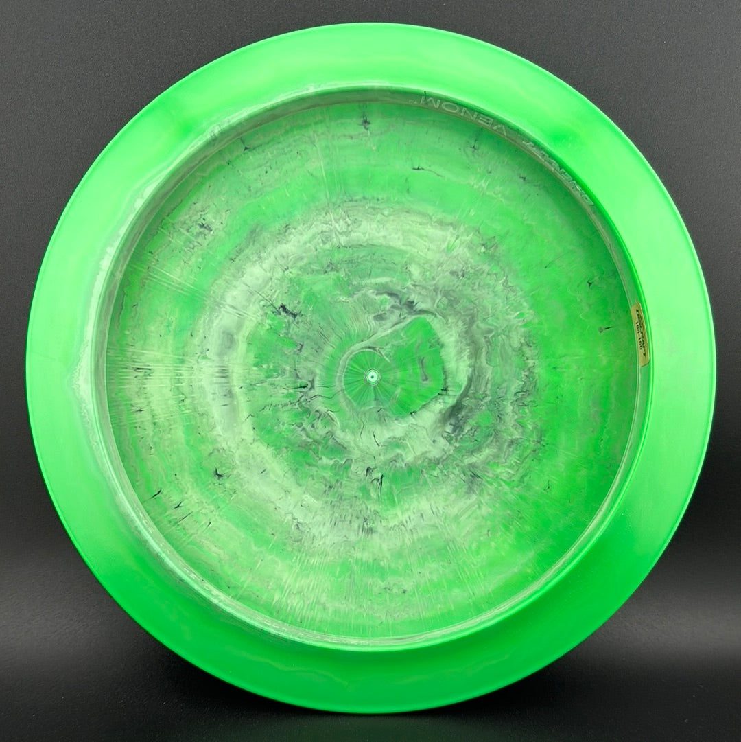 Drive your fangs into the all-new Venom. This entirely retooled disc is here to stay. That’s why our team took everything that works (and nothing that doesn’t) about the previous Venom to bring you a reimagined, consistent, overstable maximum distance driver. Fulfilling a need in many players bags, this addition to our lineup will become a favorite amongst power throwers and those looking for a reliable distance driver.