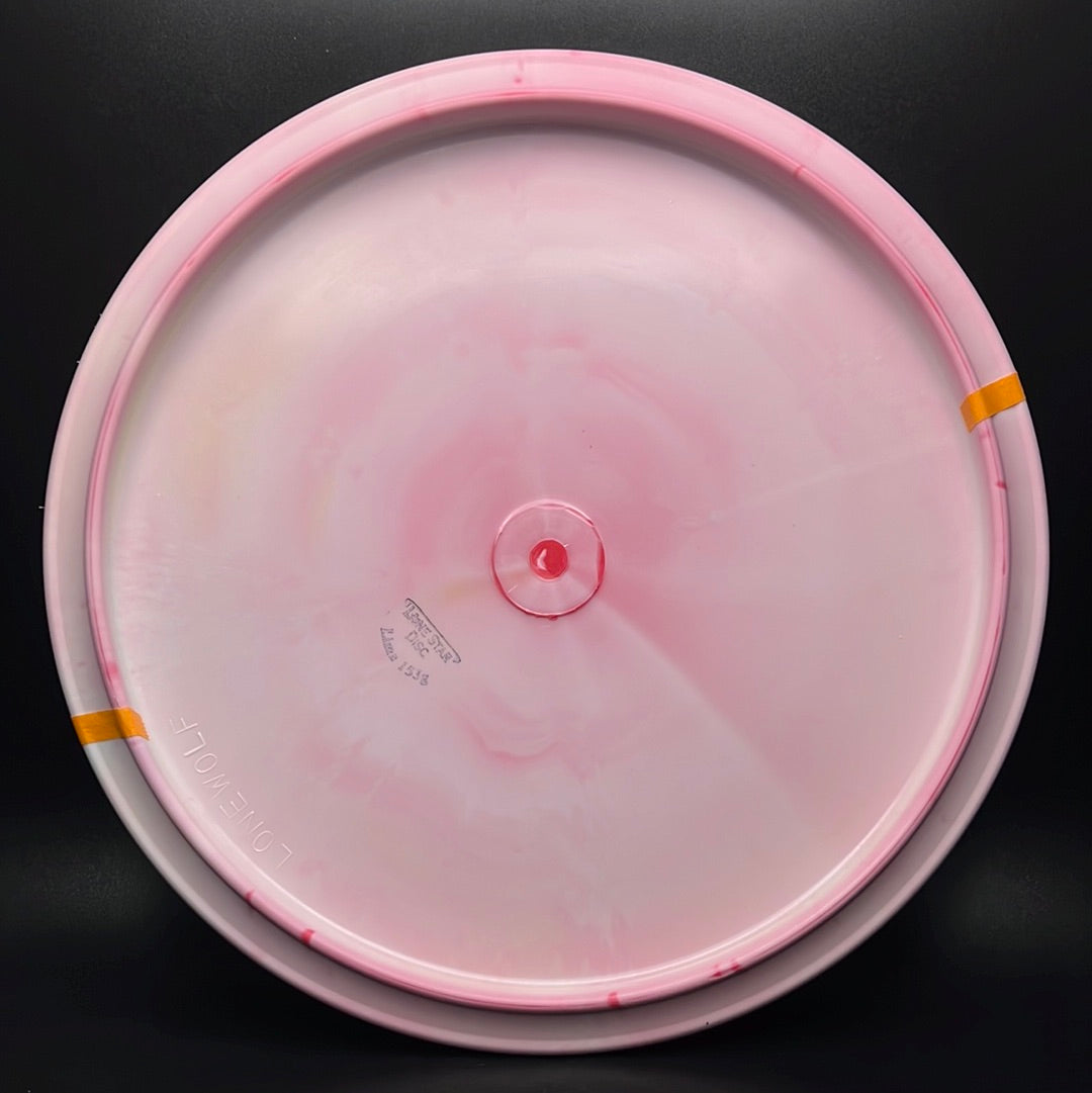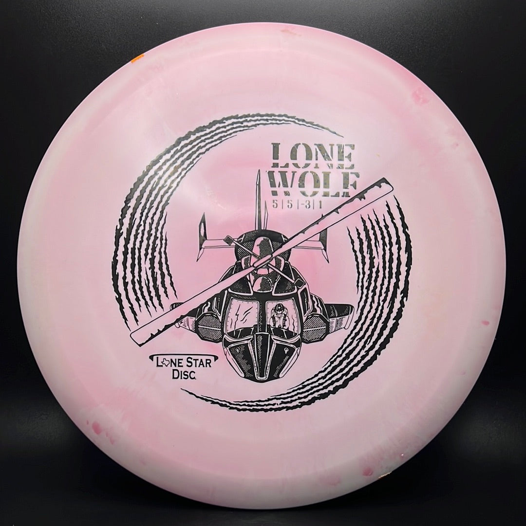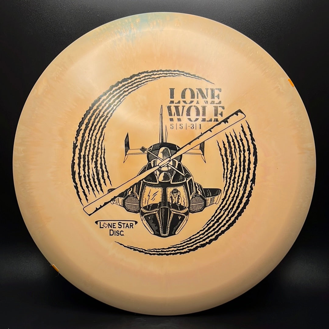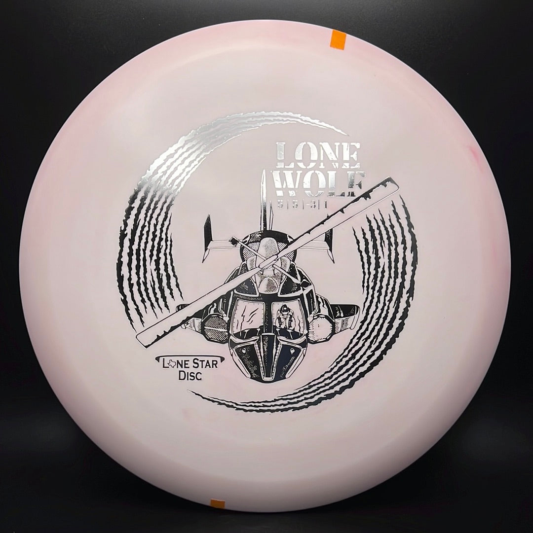 The Lone Wolf by Lone Star Disc is a fairway driver / mid-range crossover disc with a more aerodynamic profile than most mids. It is understable with plenty of turn to hold anhyzer lines and is also a great choice for new players who want to avoid a premature fade.