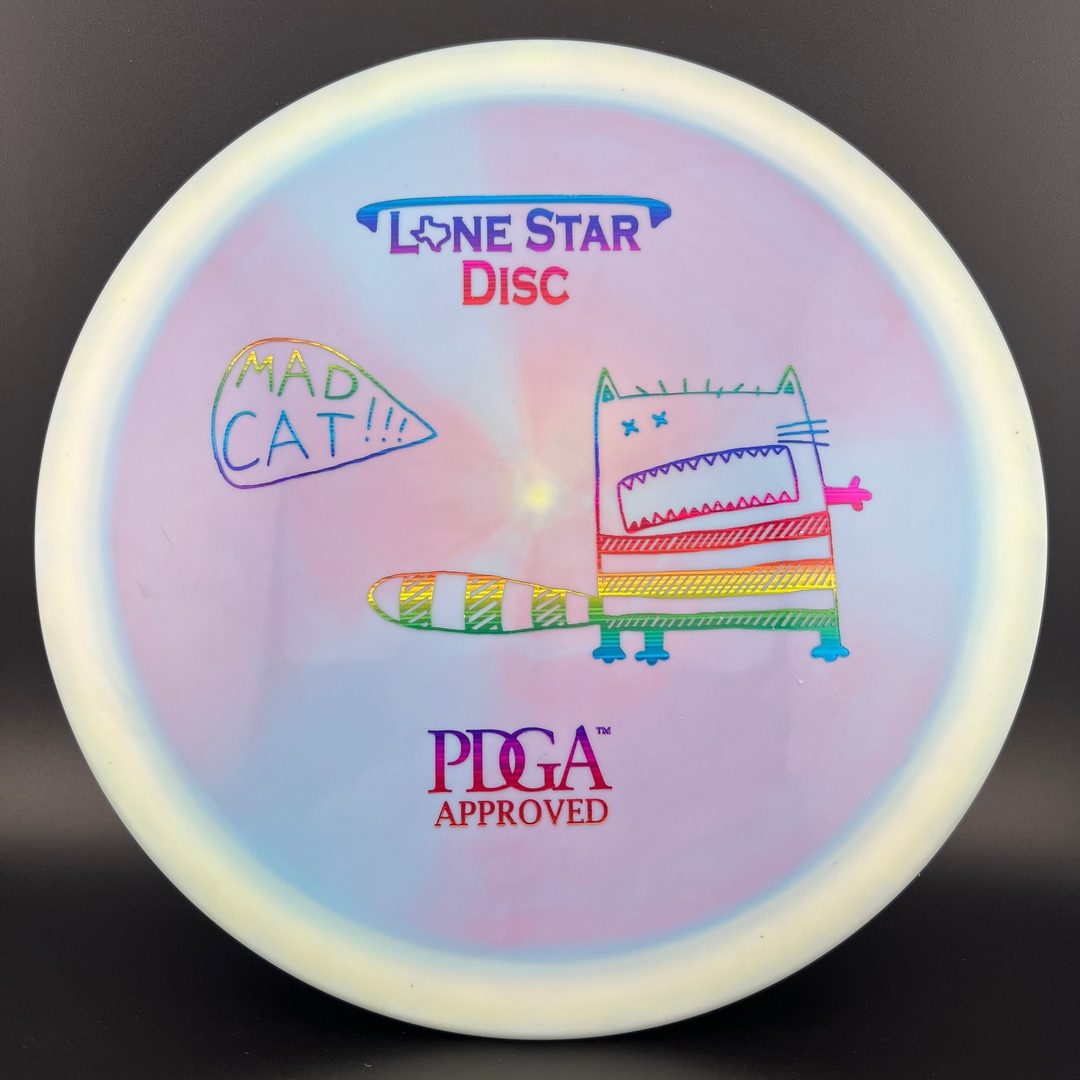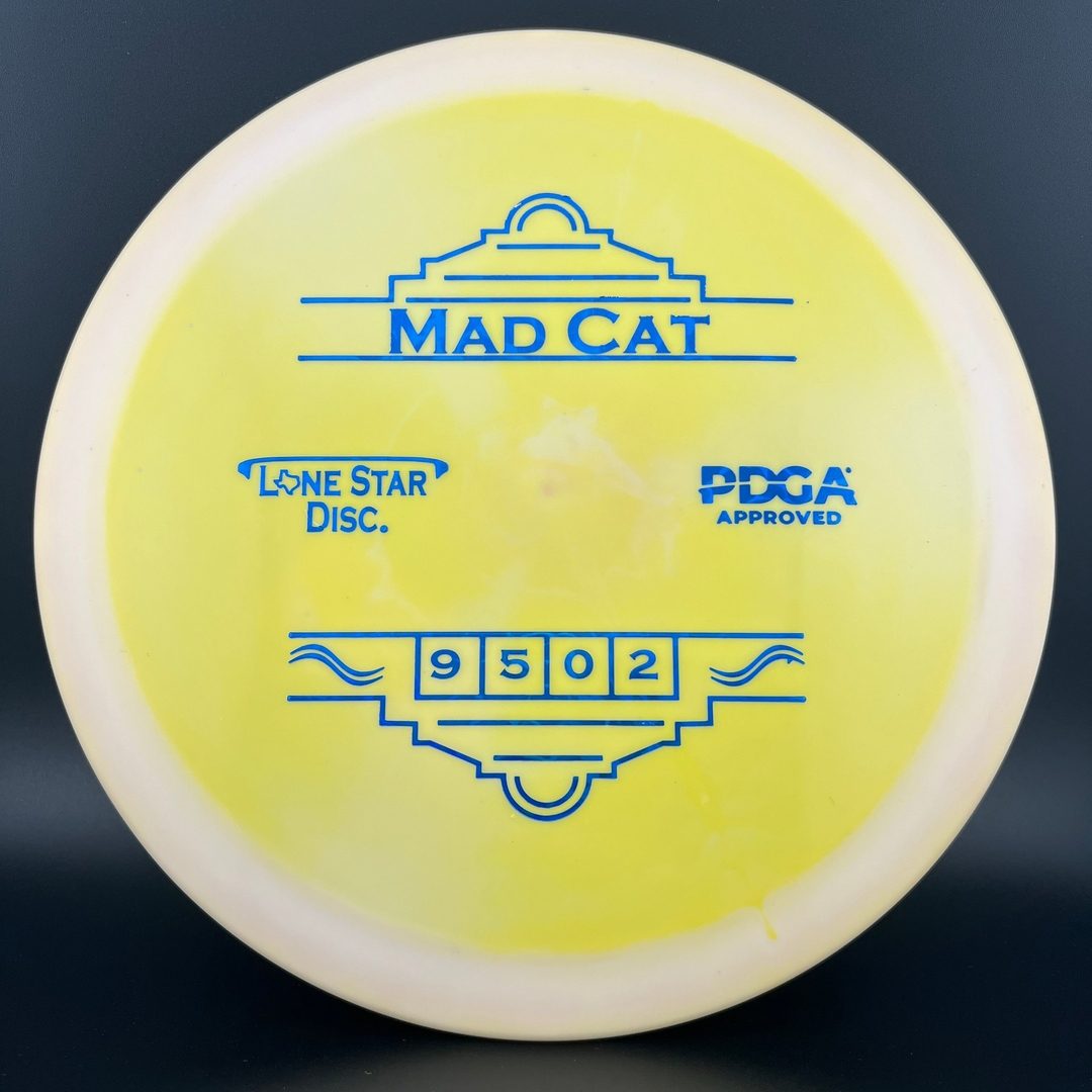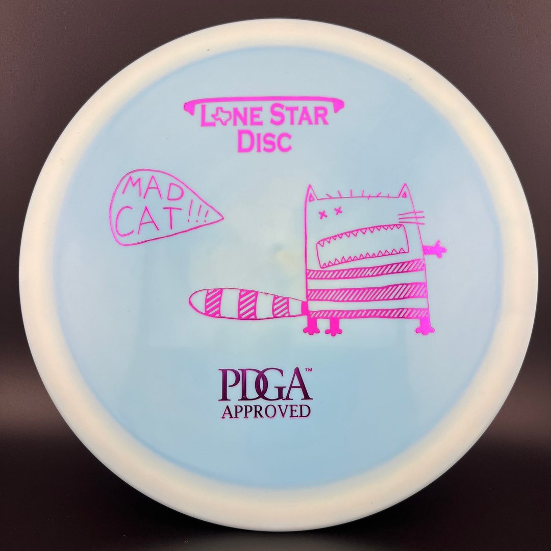 The Lone Star Mad Cat is a slightly overstable control driver for more experienced disc golfers. It has a slim, flat, profile that makes it great for forehand throws. It's reliable flight and great feeling plastic will make it your new favorite mold.