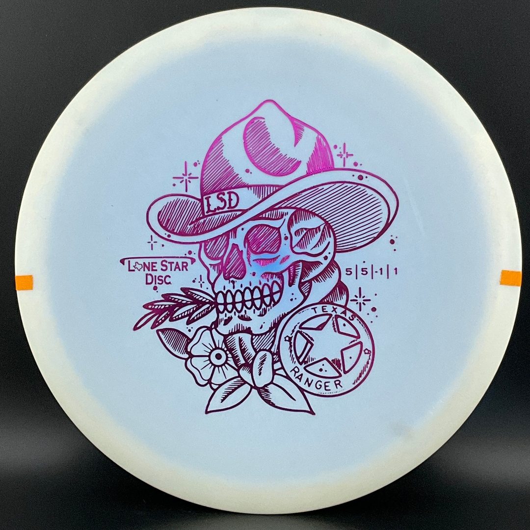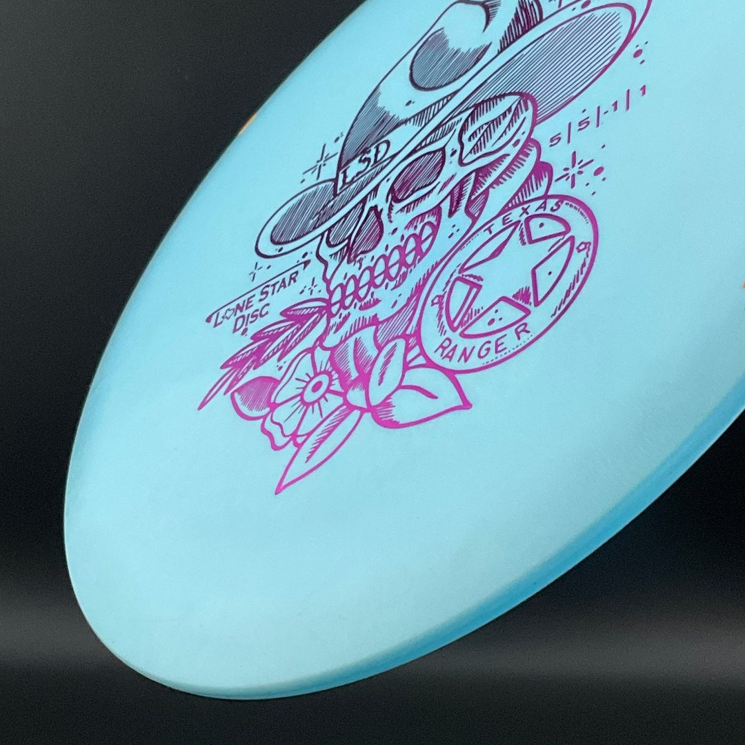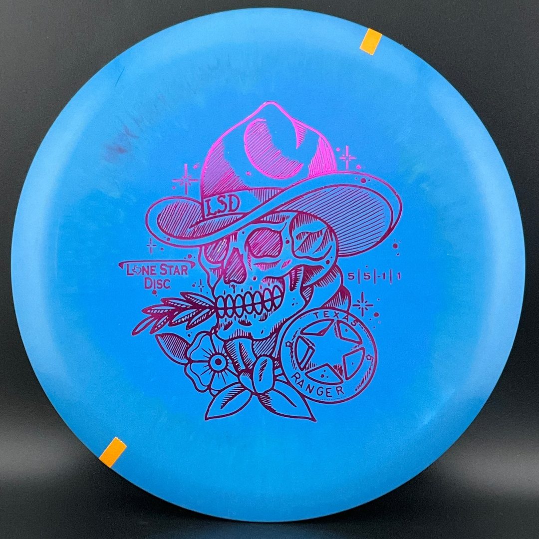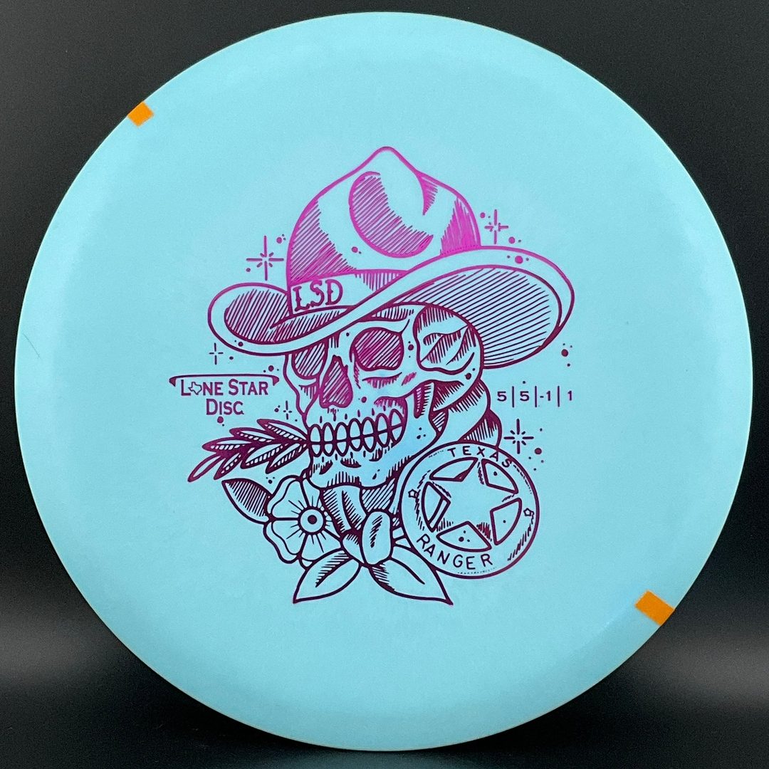 The Texas Ranger is a multi-purpose midrange that holds true to its flight numbers in most anyone's hands and regardless of the power put behind it. It flies straight with a consistent turn and reliable fade at the end. Capable of being a workhorse in the beginner's and advance player's bag.