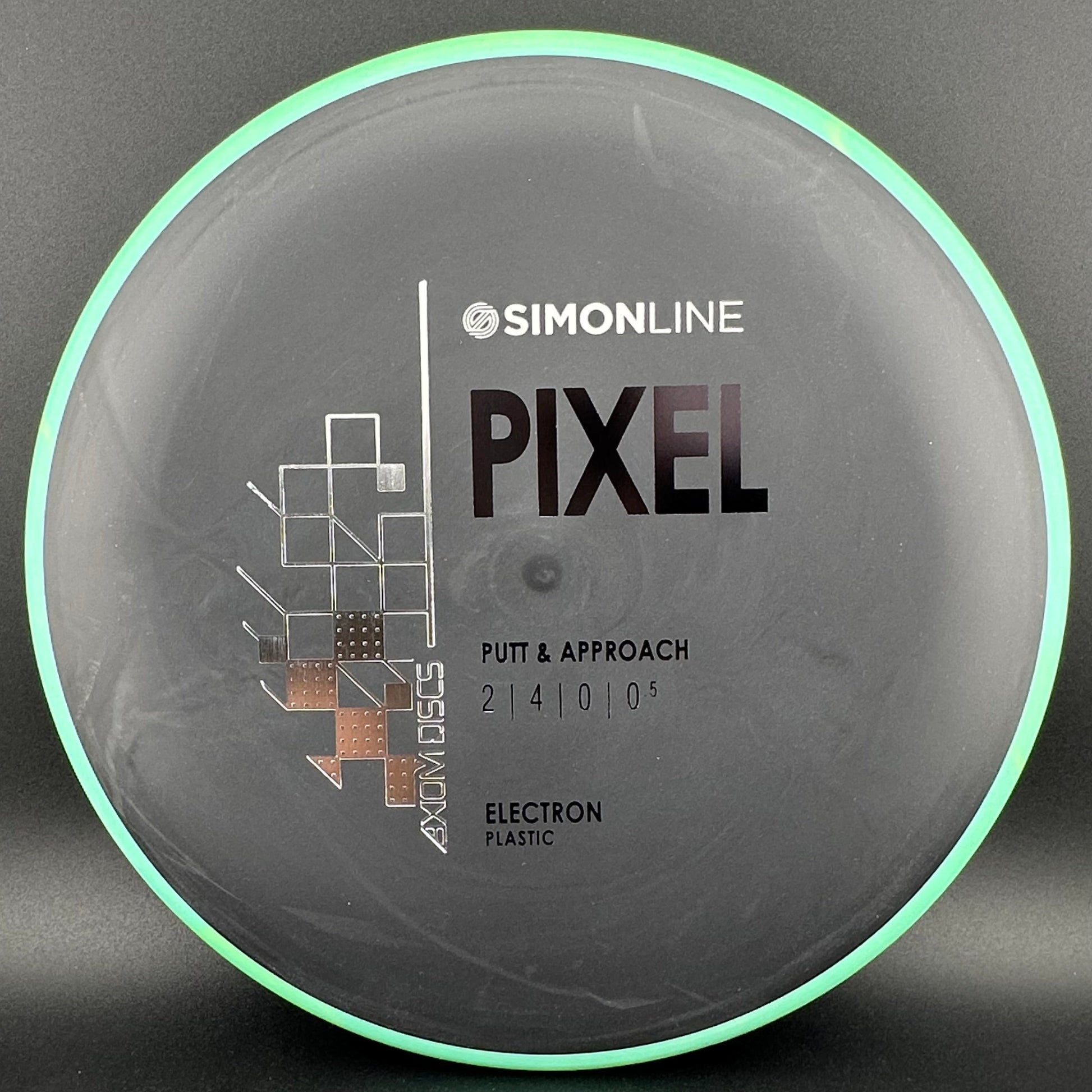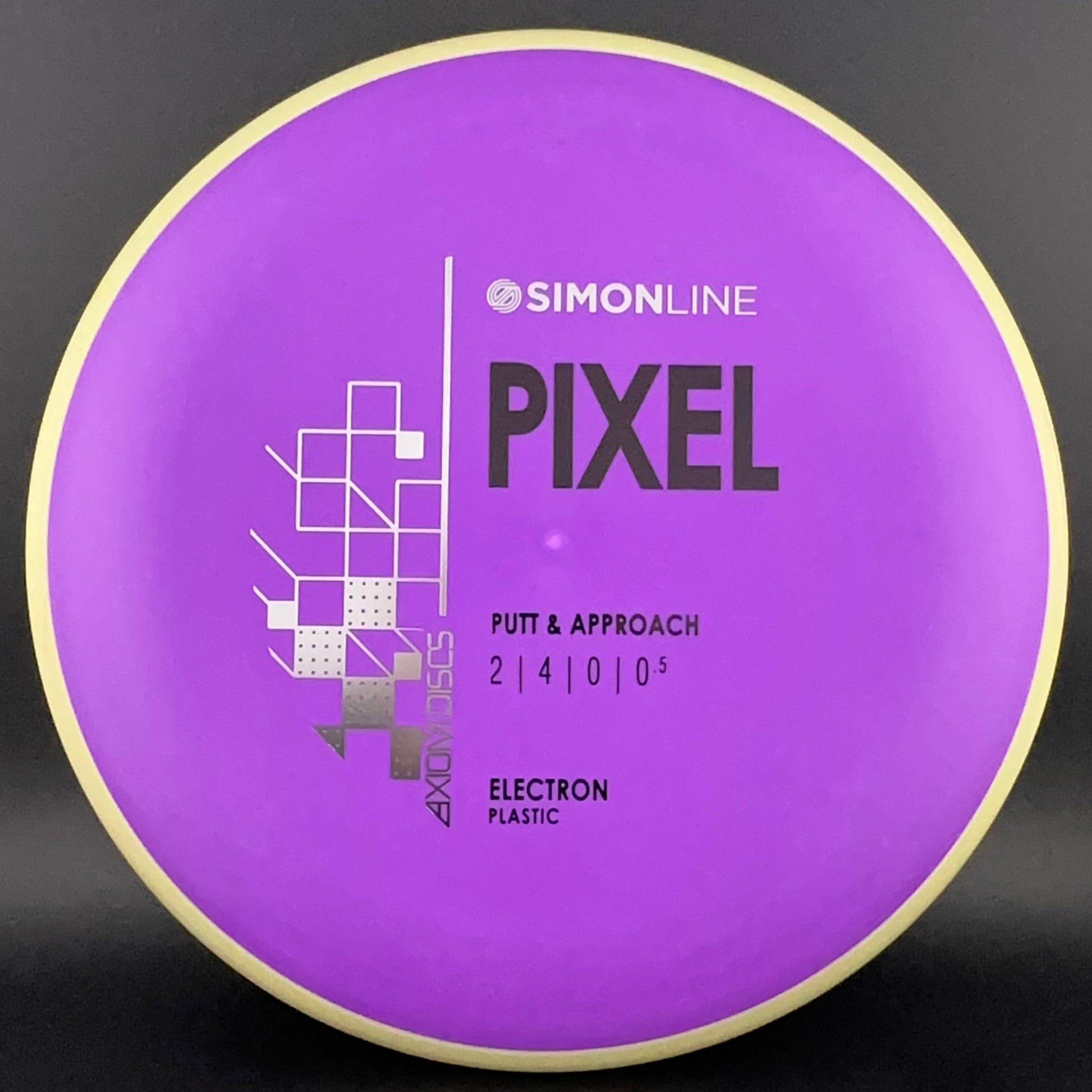 2/4/0/0.5 *One of the new discs to come from MVP/Axiom, the Simon Line Medium Electron Pixel!!! *All discs have matte black and chrome foils. *Storage wear is typical for this type of plastic.