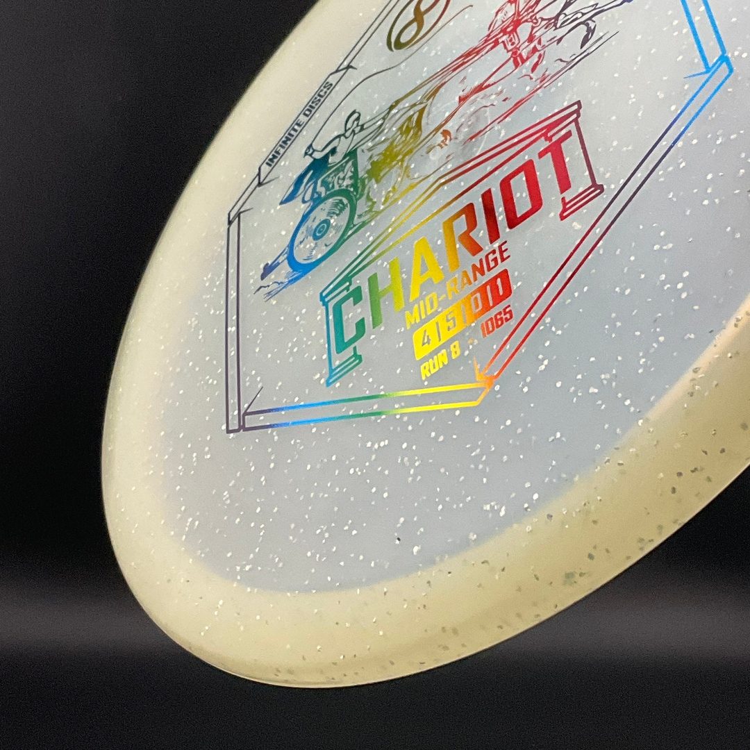 The Chariot is a straight-flying mid-range disc with excellent glide and a knack for following the thrower's angle of release. It can be guided on smooth hyzer lines, on anhyzer turns, or can be used for straight, precision approaches on the fairway. The Chariot finishes with a gentle and consistent fade and is ready for frequent use in your disc golf game. All Infinite Discs branded discs are manufactured by Innova Champion Discs.