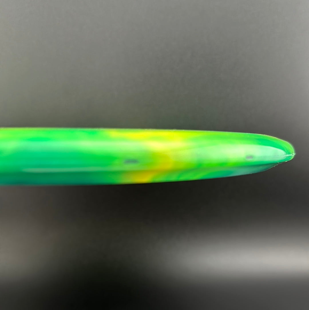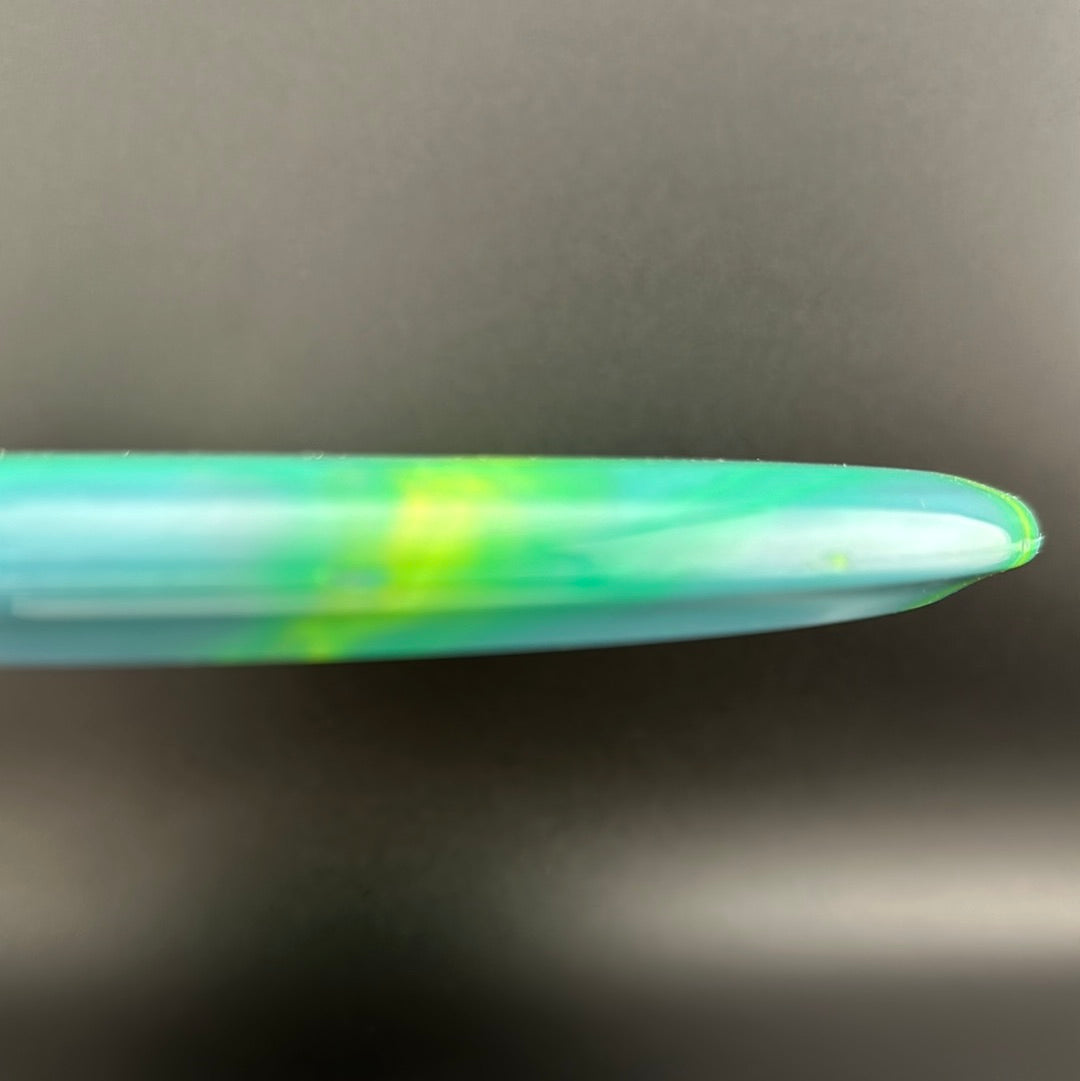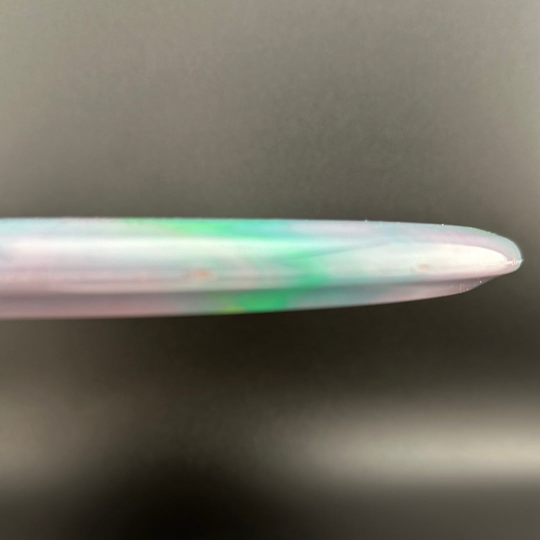 Nebula Aura is a special plastic blend with decorative swirls in bursty patterns. It has an opaque look with great durability and good grip, preferred for most drivers and throwers.