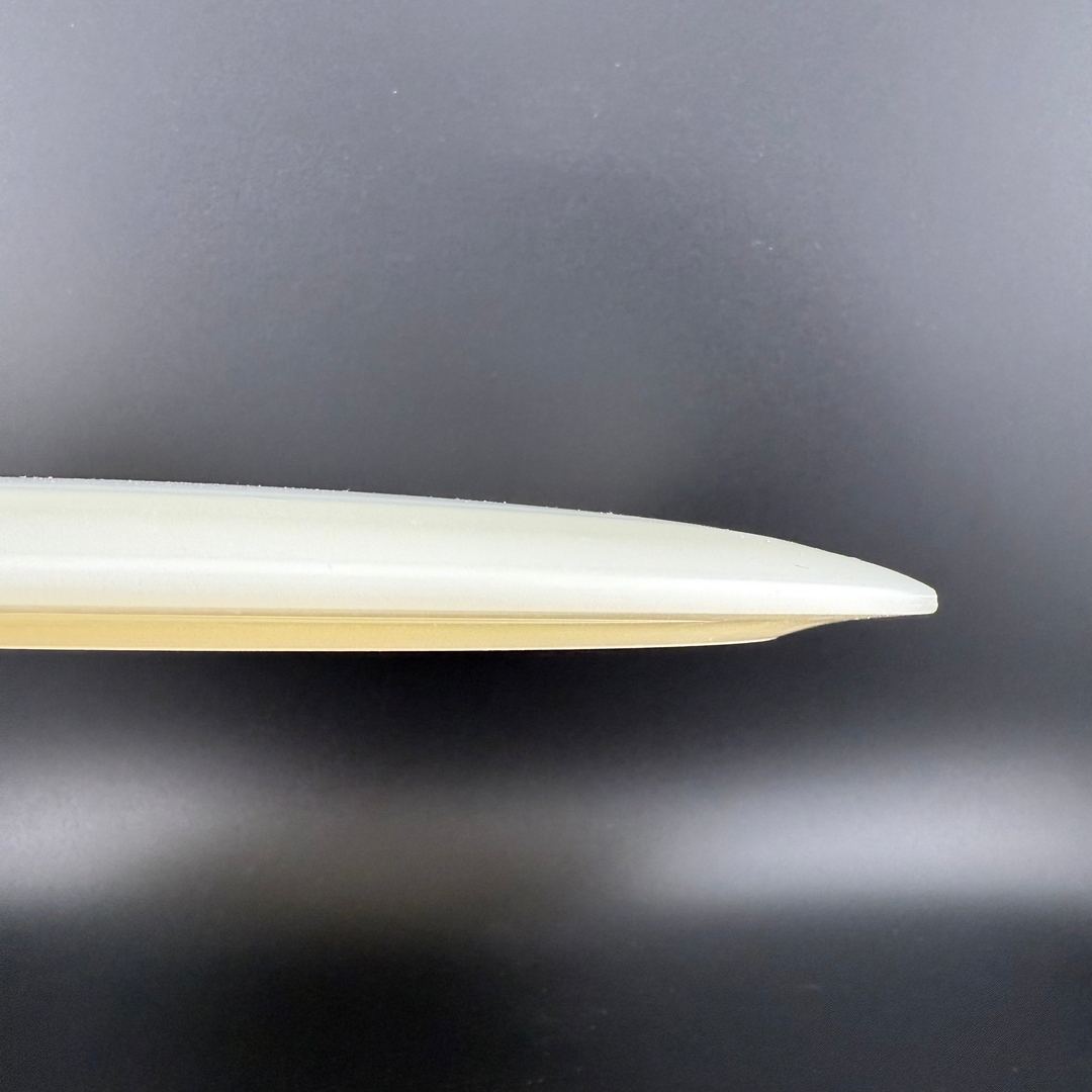 Discmania Evolution Neo plastic is manufactured by Latitude 64. It is a mix of opto and gold line plastic, resulting in a creamy, not quite opaque plastic blend. It feels great in the hand, like all Latitude plastics do!