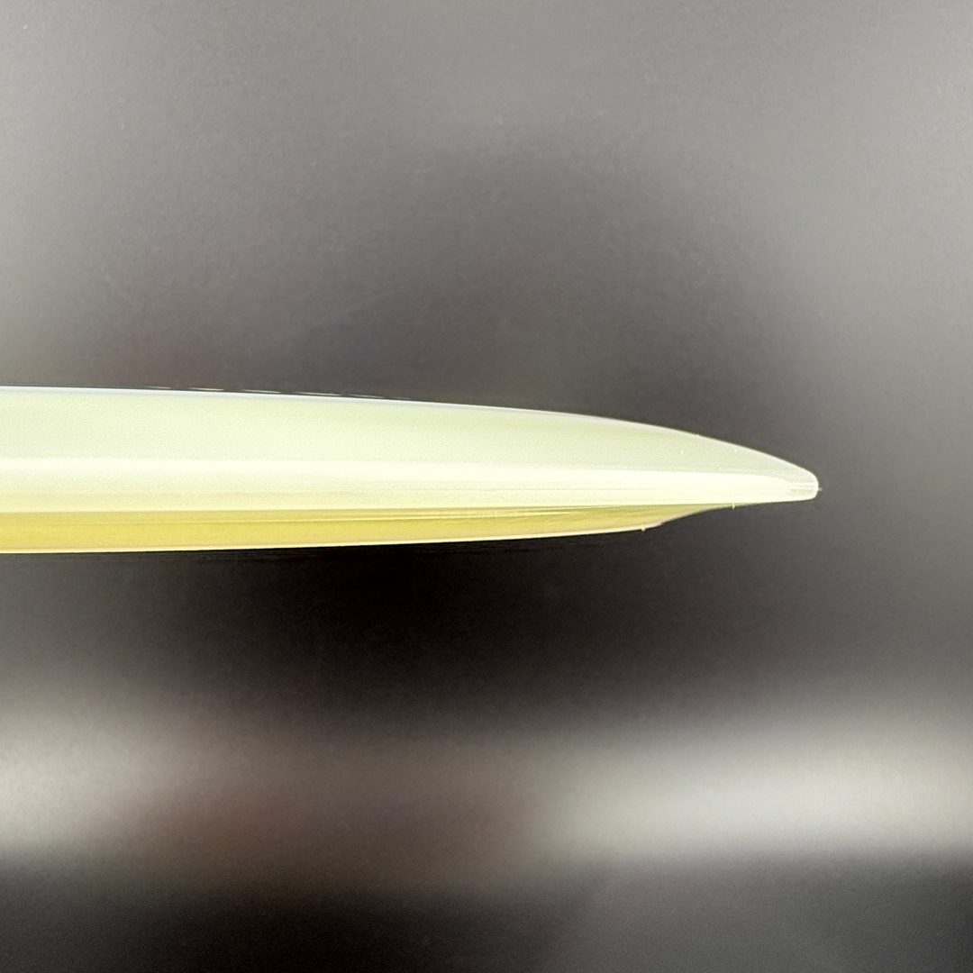 Discmania Evolution Neo plastic is manufactured by Latitude 64. It is a mix of opto and gold line plastic, resulting in a creamy, not quite opaque plastic blend. It feels great in the hand, like all Latitude plastics do!