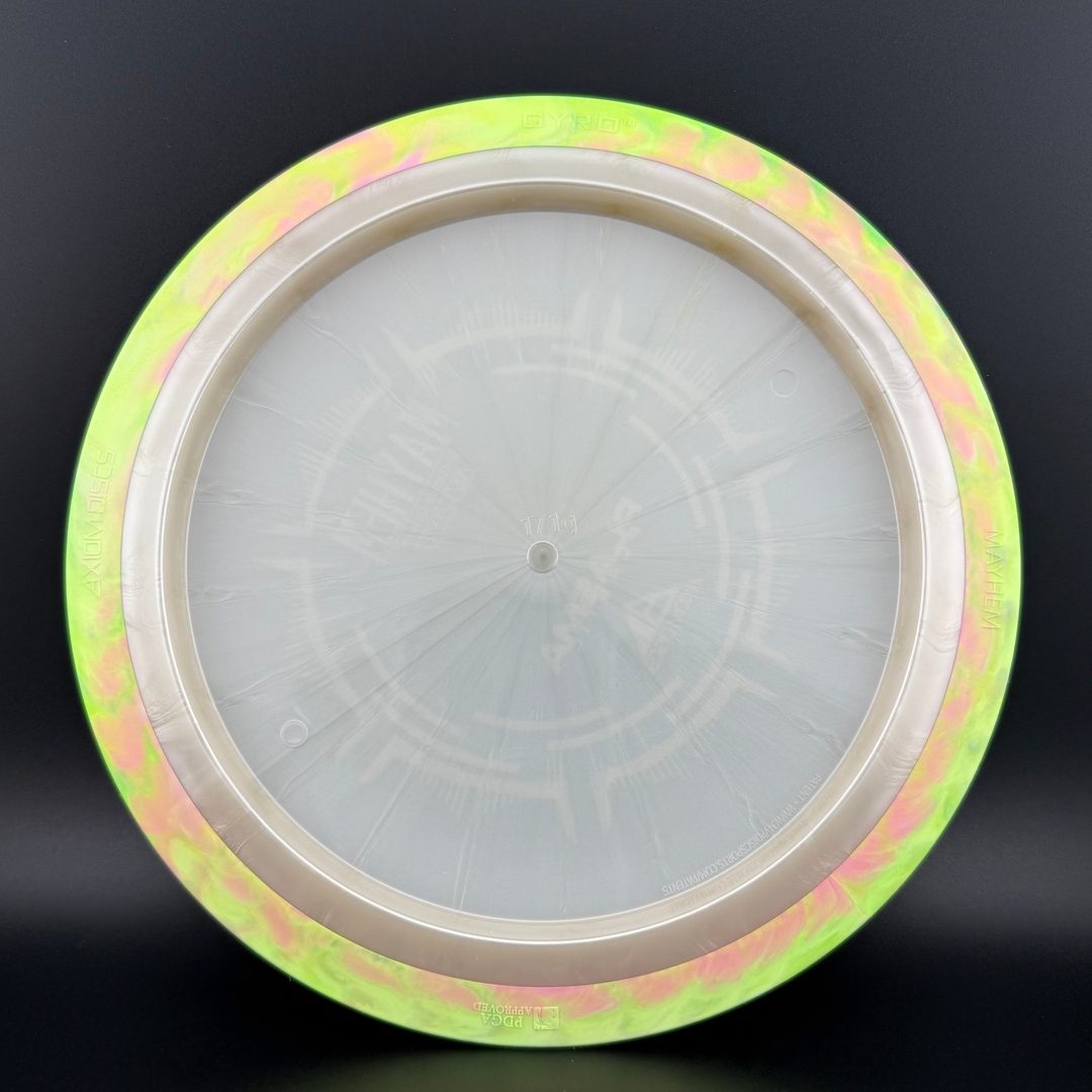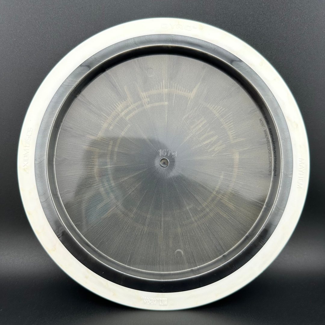 The Mayhem is part of a demanding high speed class, but its stability is softened a bit for easier straighter flights. Expert throwers will find the Mayhem ready to stand up and boom or drift over from flat, while average power throwers will be able to mash on it without fear of unmanageable turn.