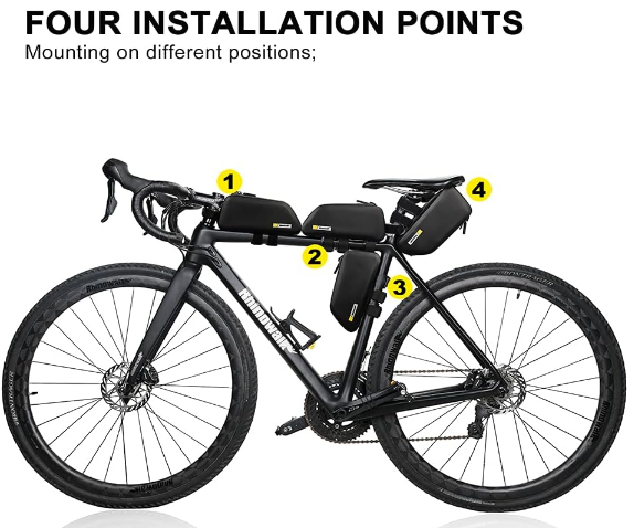 - Multiple Installation Methods: Four installation positions, which can be installed in different positions of the bicycle. Can be used as top tube bag and saddle bag. Rhinowalk is focus on bicycle bags,please contact us if you need more help or you have any questions