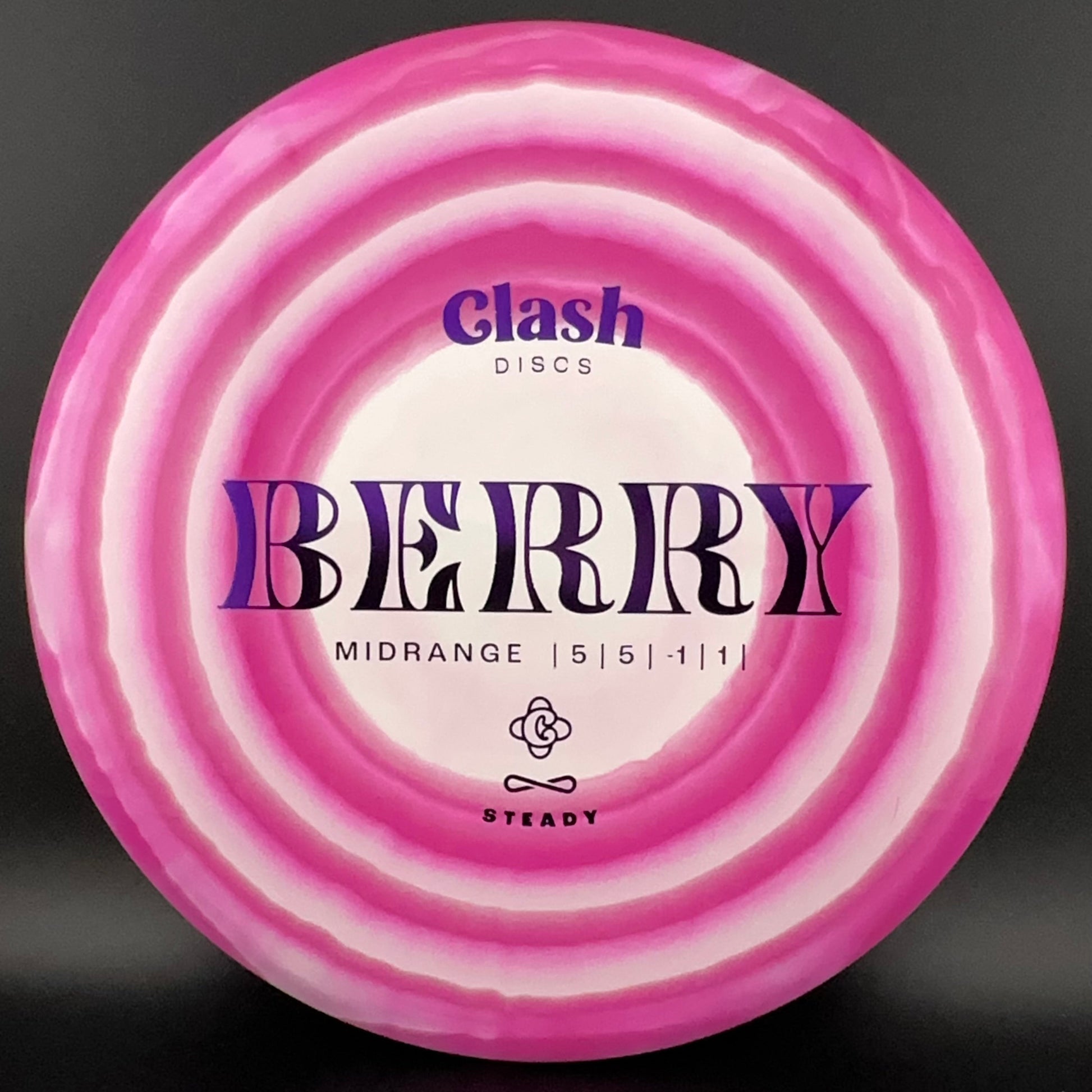 Steady Ring is Clash Discs' take on the ever-popular "Halo" effect. However, their edition has multiple swirly "Rings" throughout the plastic. This is their premium Steady plastic with this beautiful effect.  STEADY is a durable and flexible premium plastic that guarantees a nice easy grip in all circumstances.