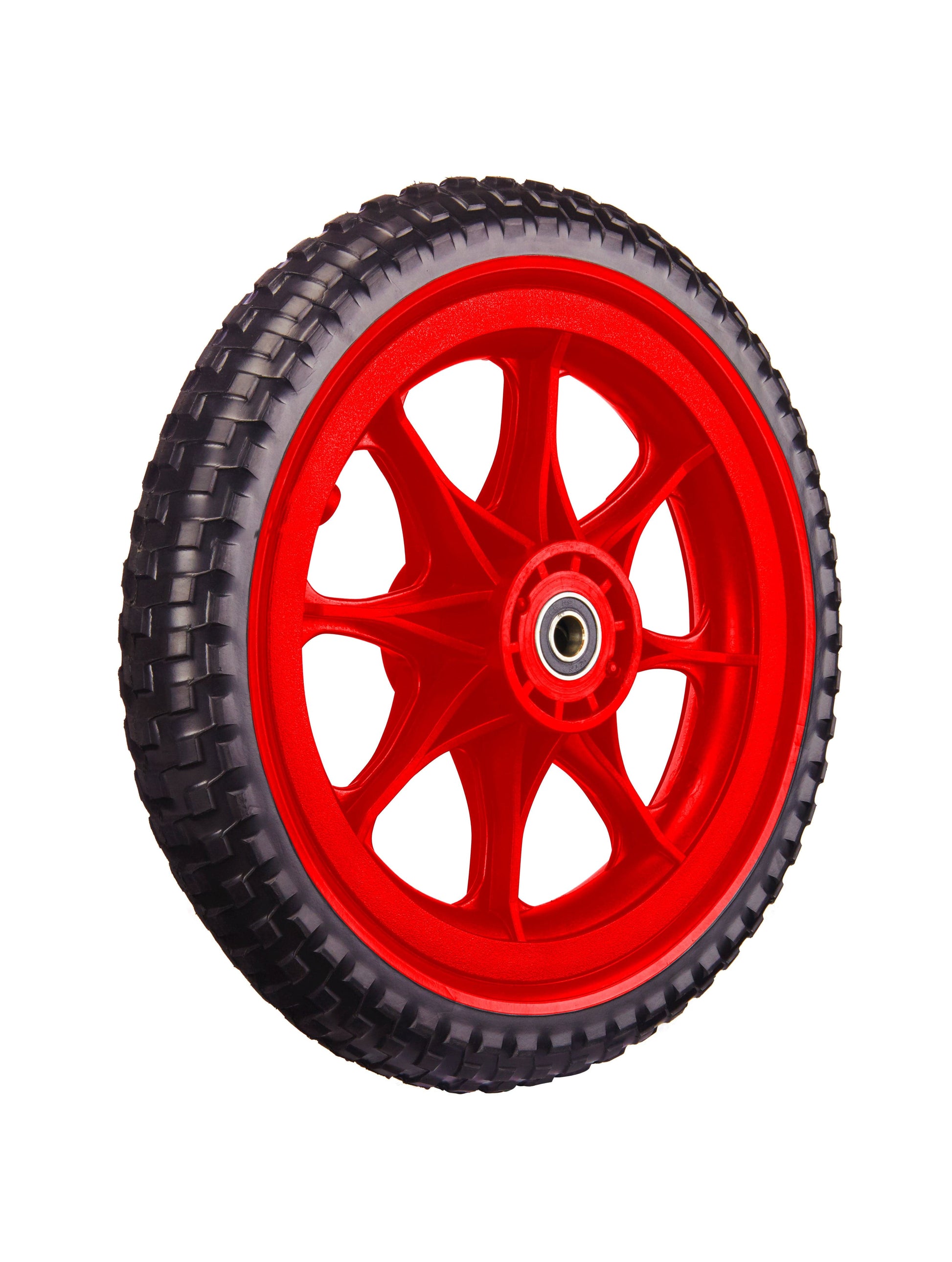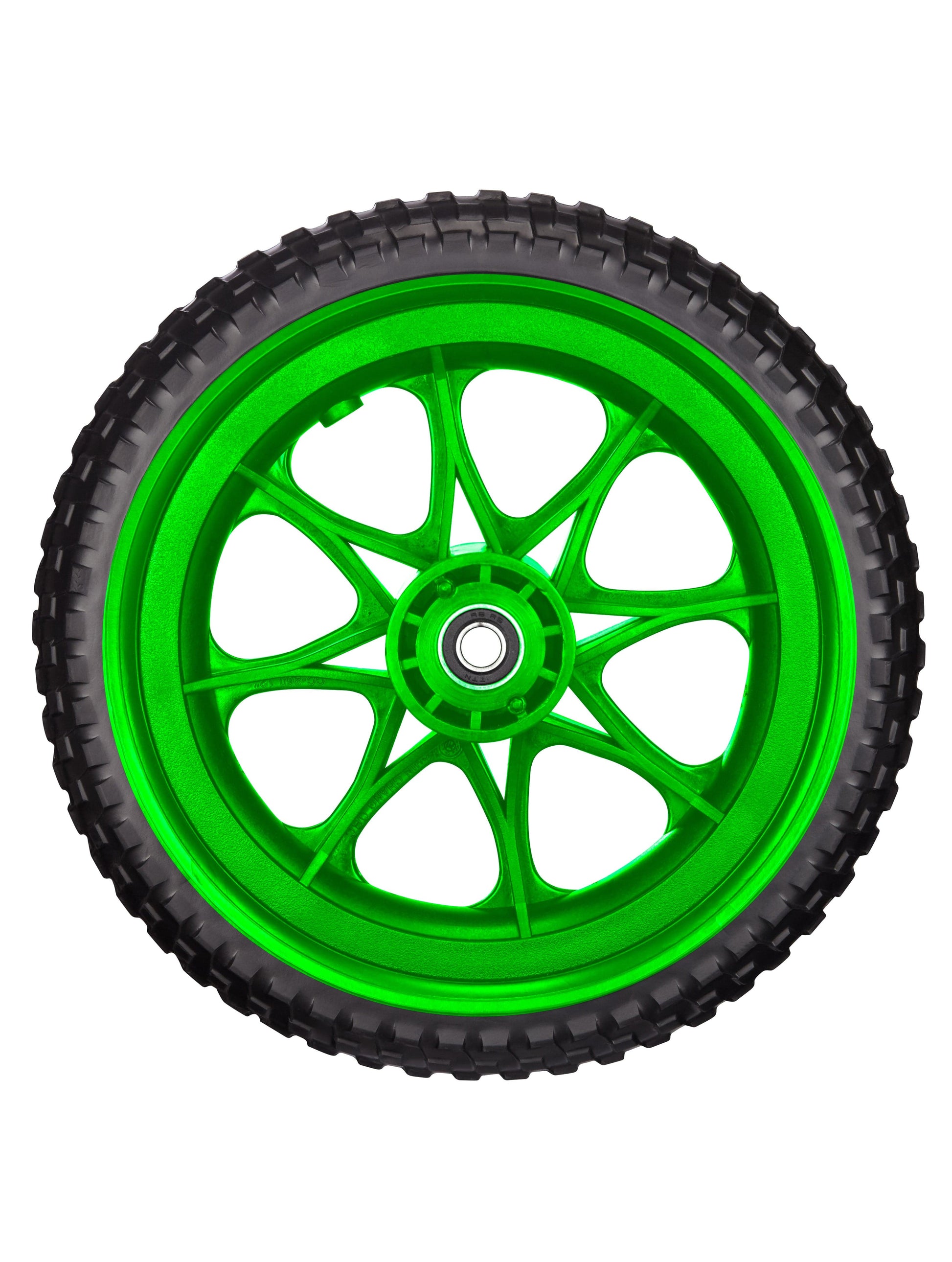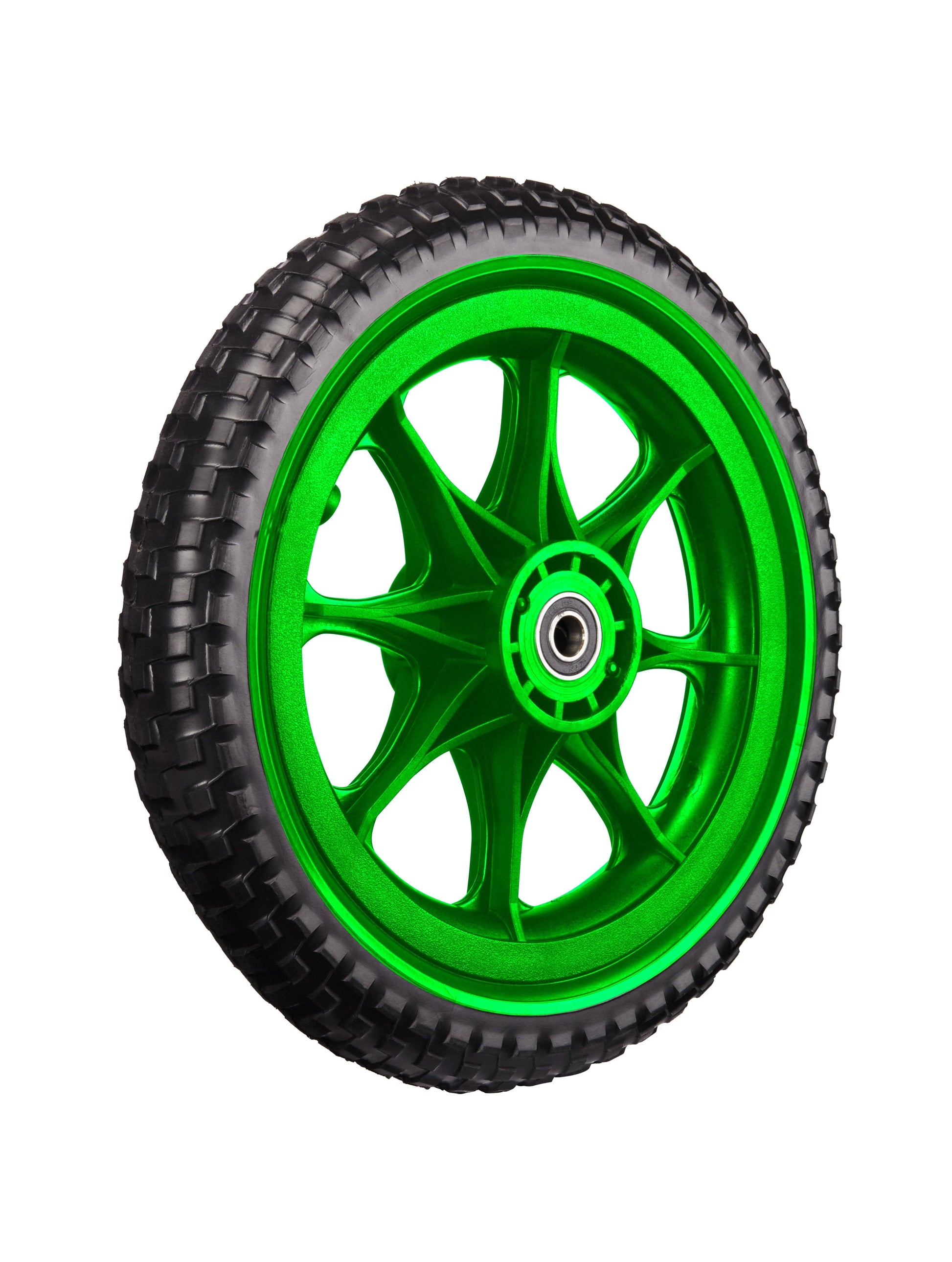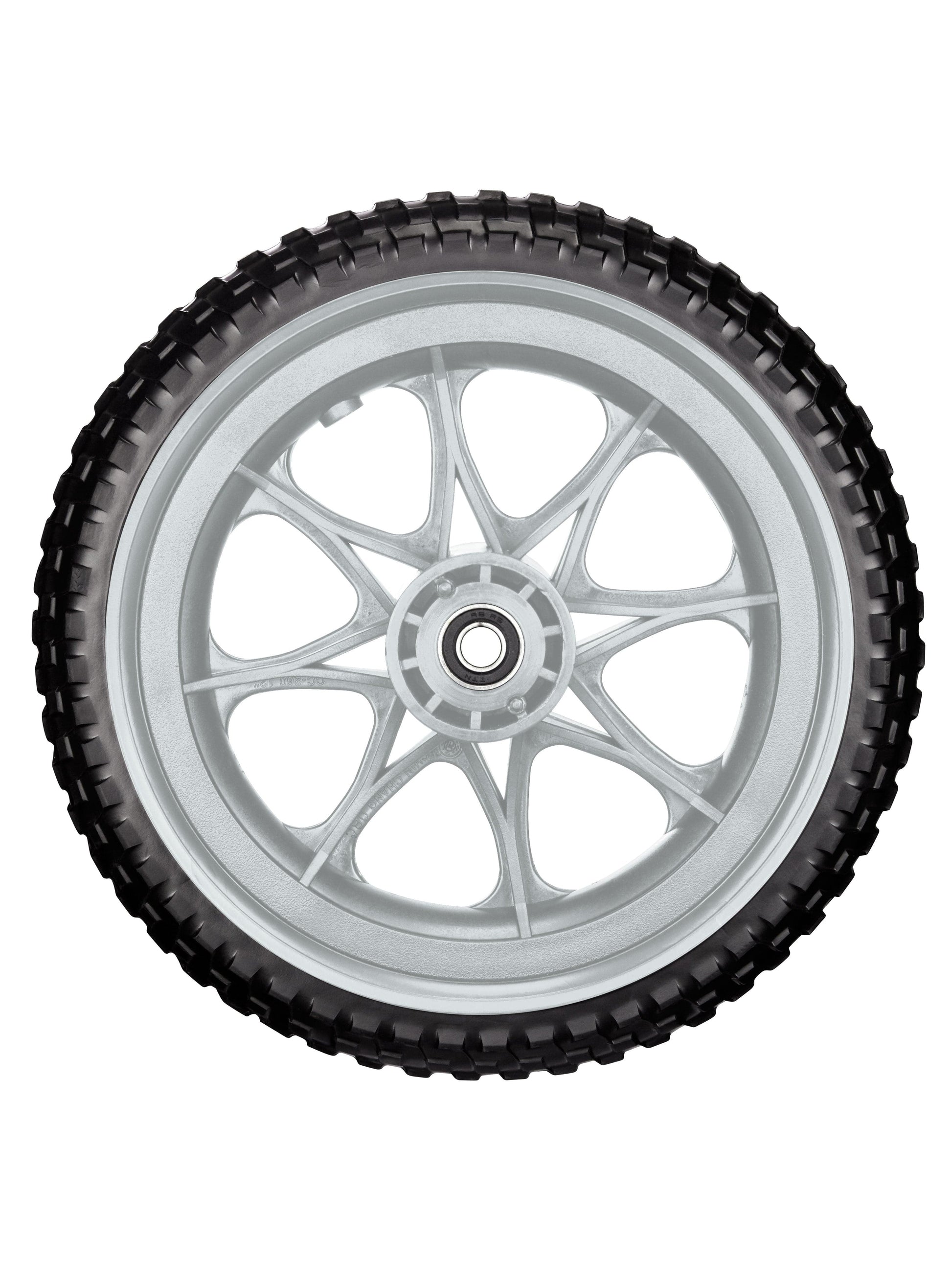 Never worry about a flat tire again! Our 12" solid foam tires are firm yet soft enough to absorb bumps just like air filled tires. Sealed wheel bearings and performance treads roll over any terrain.
