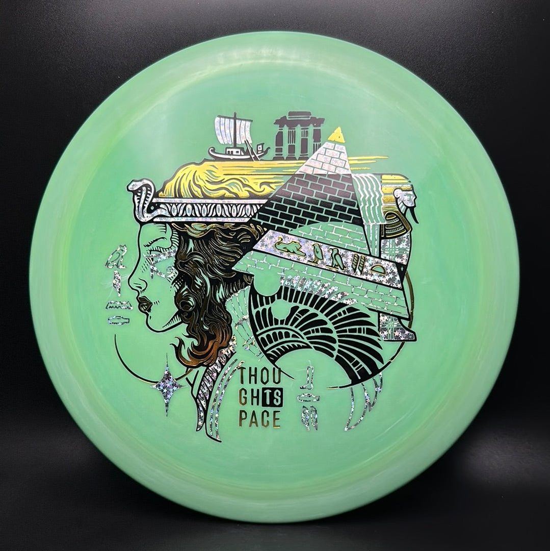The Omen is an overstable 9-speed driver from Thought Space Athletics. If you need a solid, hard fade when throwing side-arm, backhand, or overhead, you can always count on the Omen. It is an excellent overstable utility driver and a pre-level, high-performance disc for power throwers.