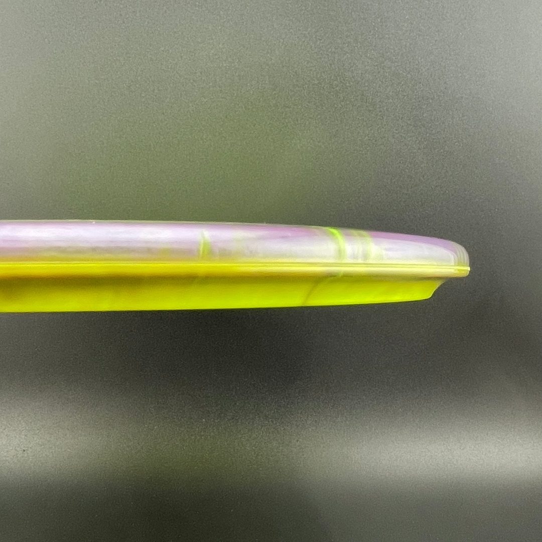 Halo plastic by Innova is a premium blend known for its stunning two-tone color patterns and exceptional durability. It features a slightly firmer feel and enhanced stability compared to traditional Star plastic, making it ideal for players seeking consistent performance and long-lasting flight characteristics. The outer rim is typically more overstable, offering extra torque resistance and reliability in windy conditions. With its eye-catching aesthetic and dependable flight, Halo plastic stands out both in your bag and on the course.
