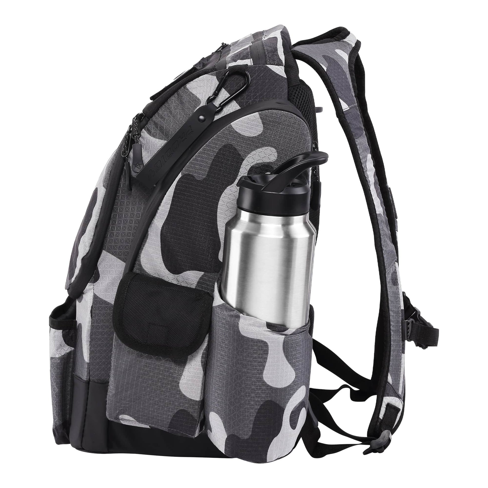 • Holds up to 20 - 26 discs (main compartment) + 4 putters (top putter pocket) + 2 putters (front putter pocket) + 10 discs (expandable side pockets)