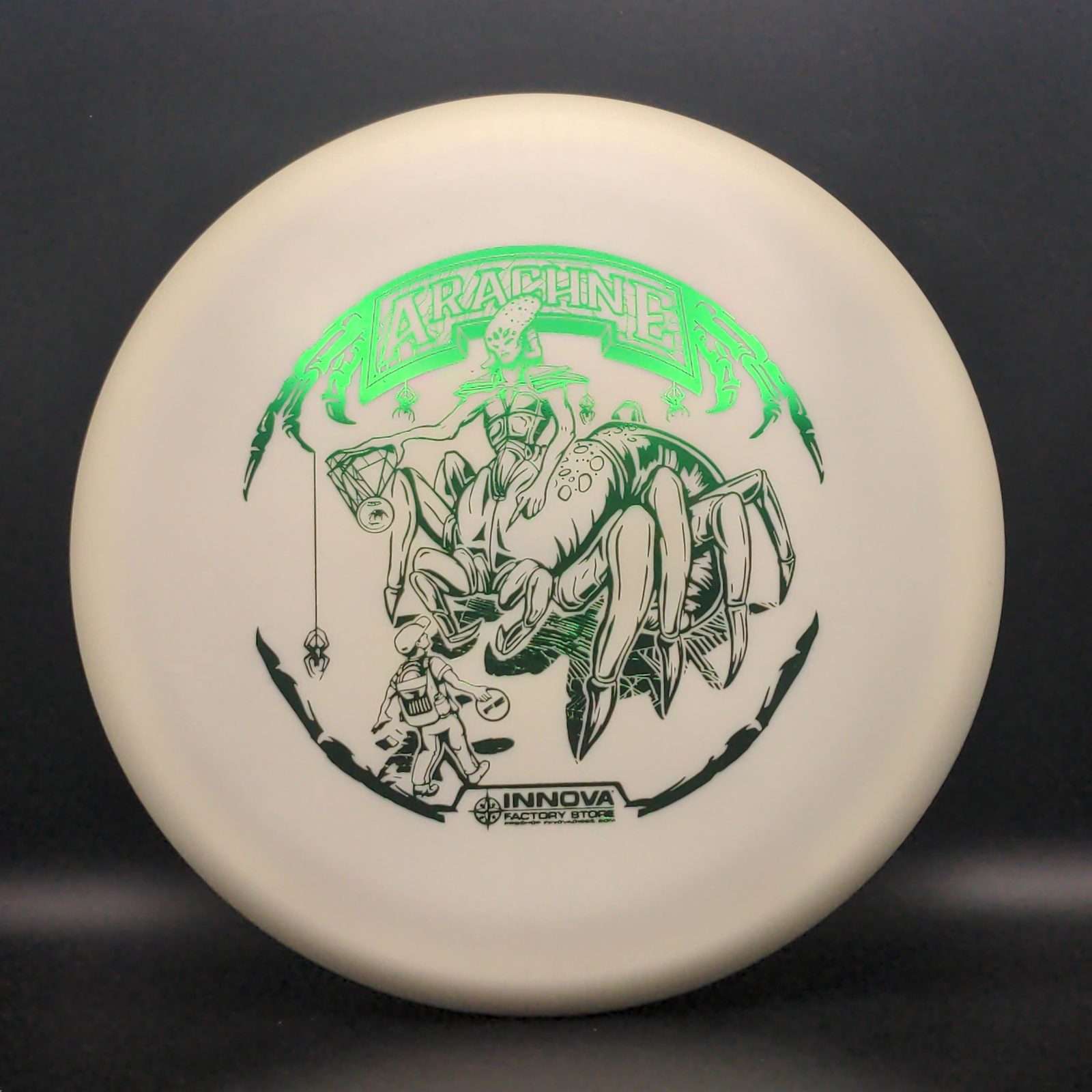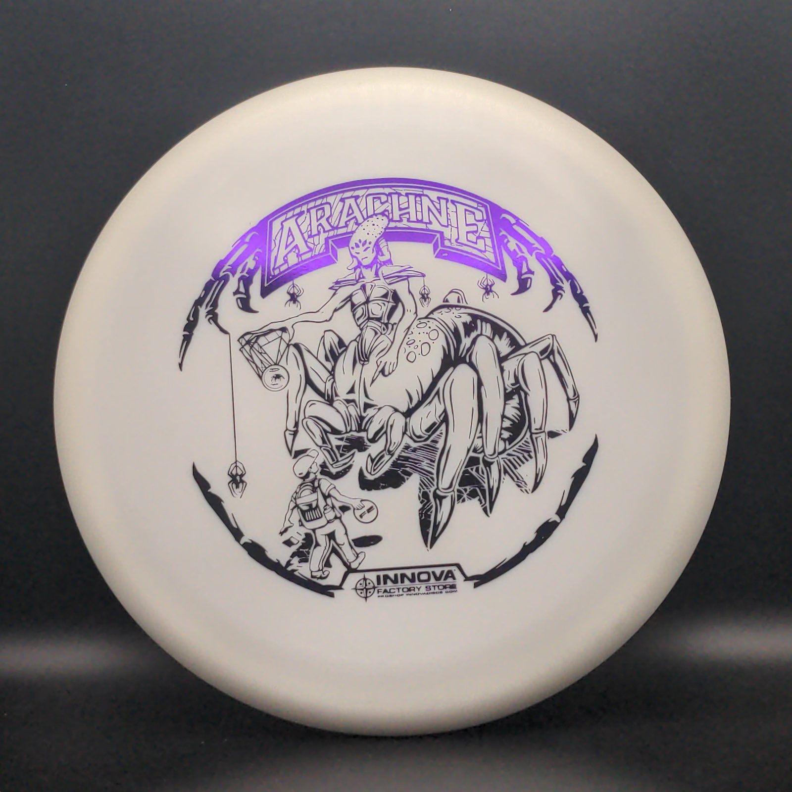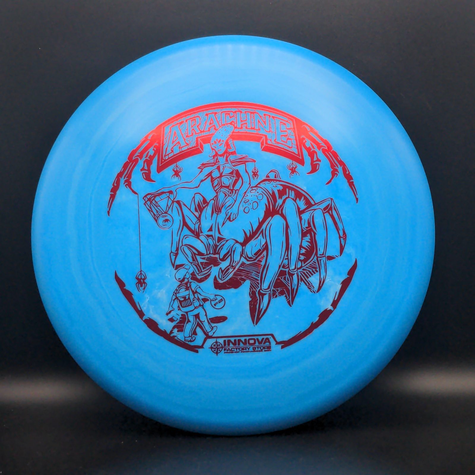 The Spider is a Mid-Range disc that works for hyzer, straight and turnover throws. Throw it with the nose up and the Spider will turn left, with the nose down it will turn right. The Spider is a low speed predictable disc that makes a great approach disc. Excellent for all skill levels and players who prefer a smaller diameter disc.