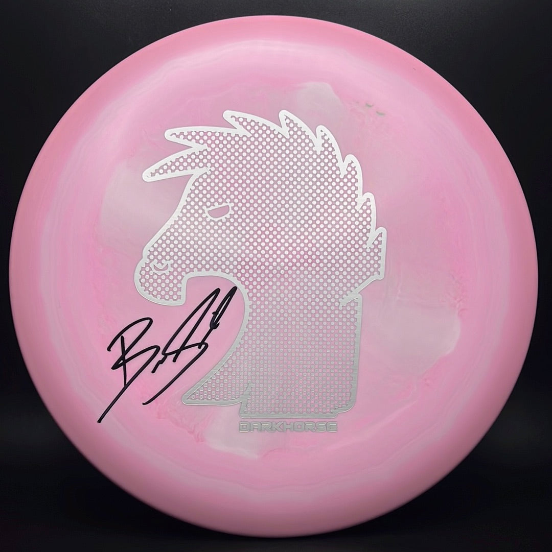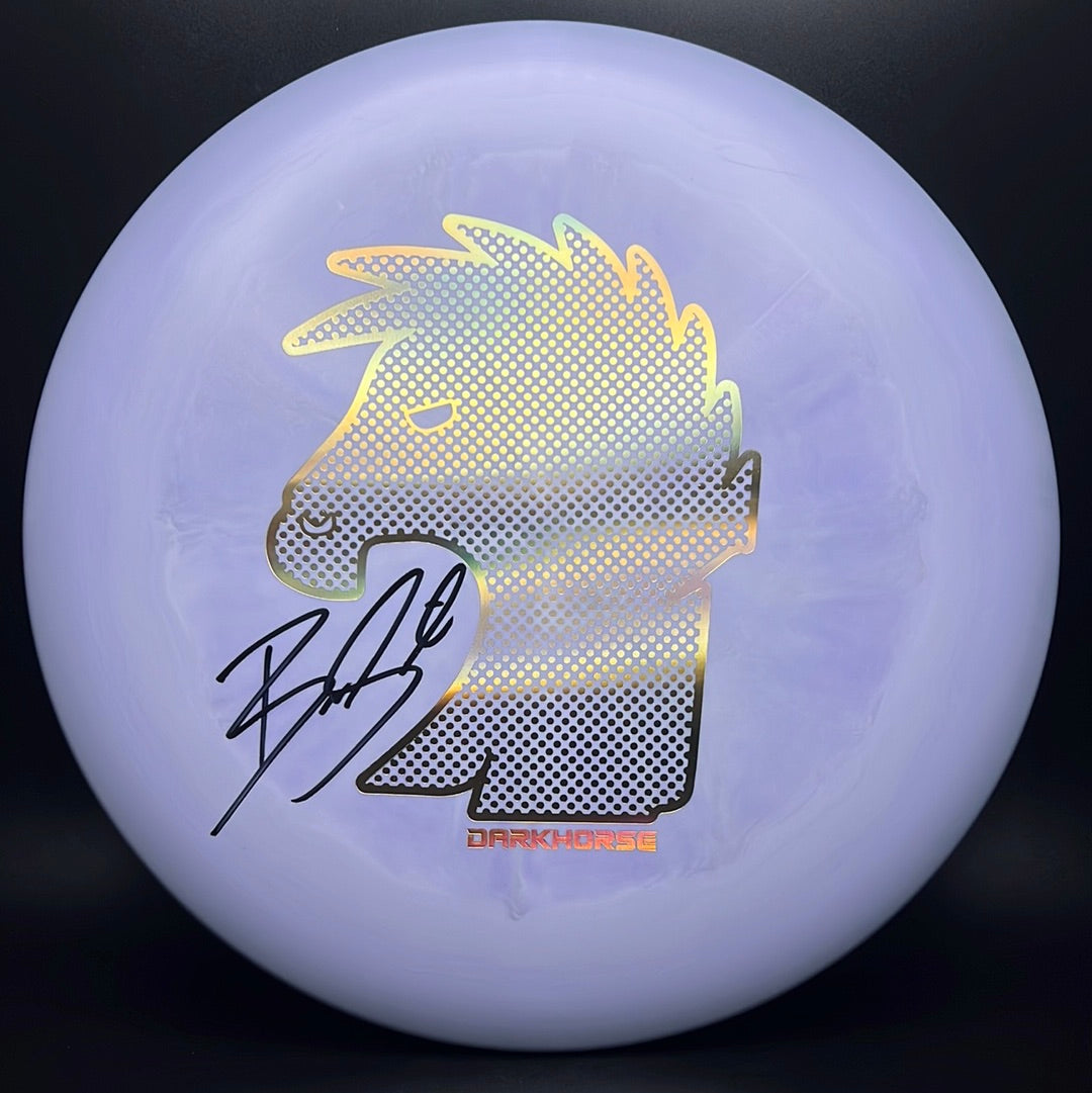 The Discraft Buzzz is the most popular disc in the game. It’s a super straight midrange and is the preferred midrange of many top pros including Brodie Smith. The Buzzz was designed for all skill levels and this limited run includes this OG Darkhorse logo. This run of the Buzzz was made specifically for Brodie and comes in Discraft's ESP Swirl plastic.