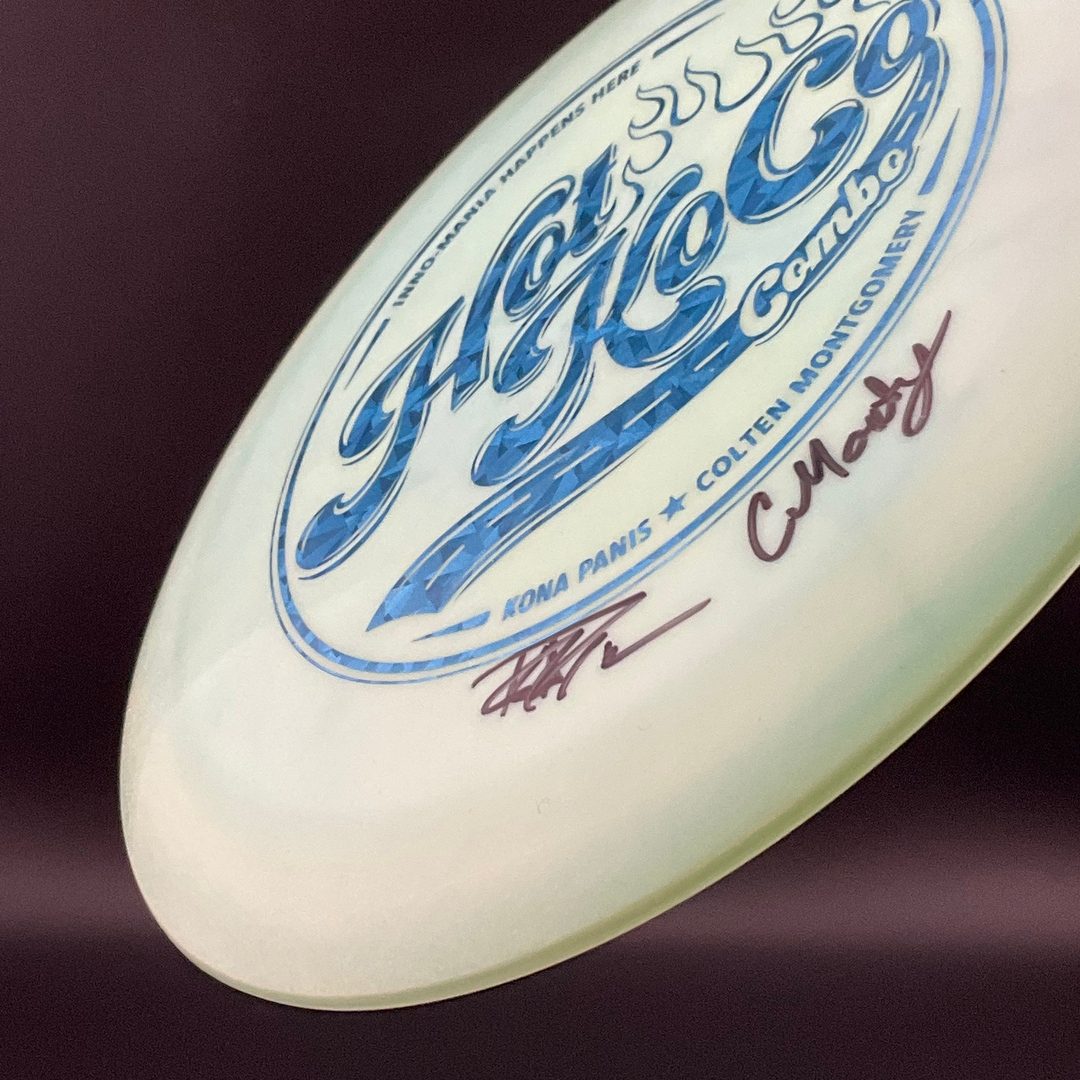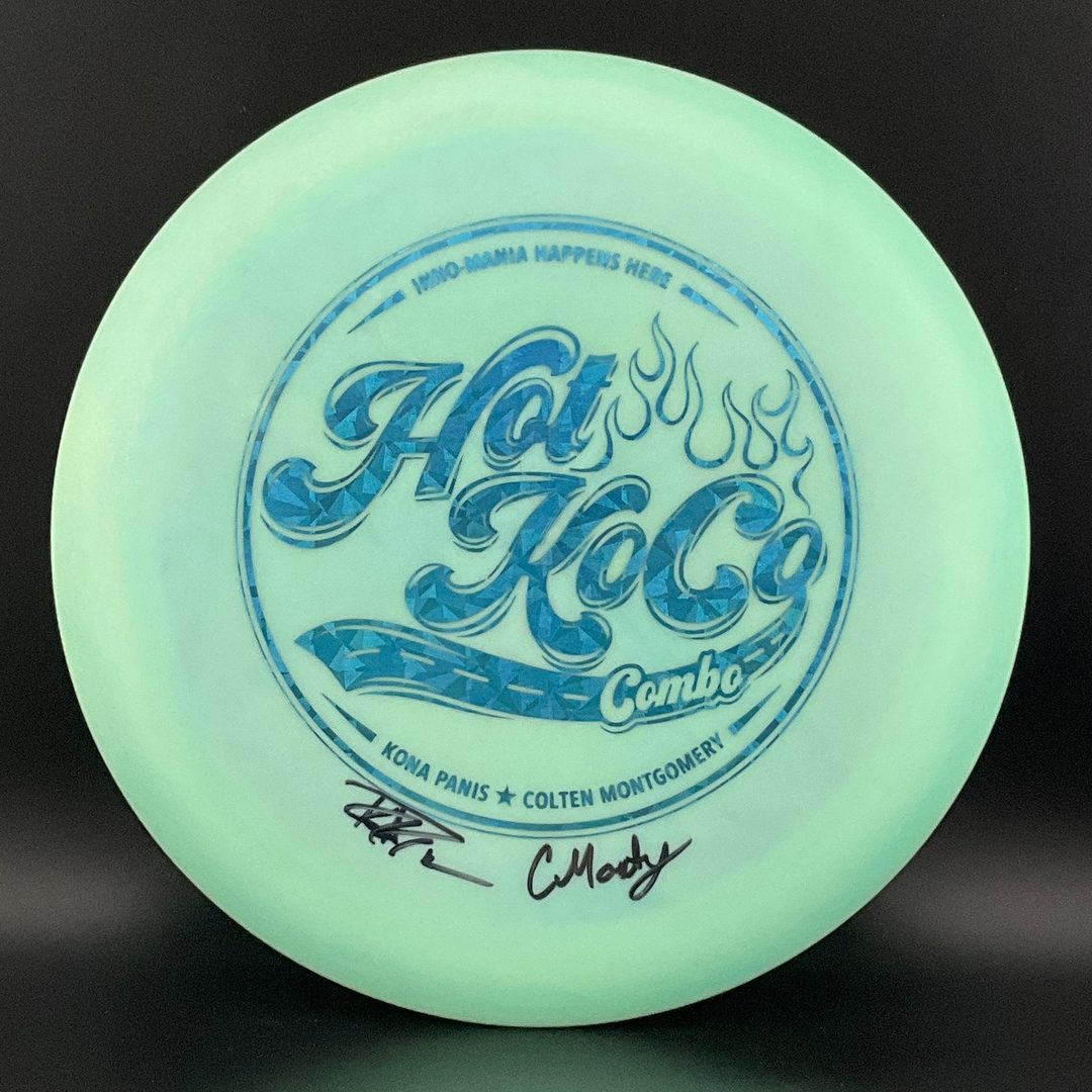 12/5/-1/3 *Signed by Kona and Colten! Order run Limited edition Hot KoCo Combo stamp for Kona Panis and Colten Montgomery! Feels very similar to a Philo Destroyer with an old run of grippy gummy star for the flightplate! Minor storage wear possible.