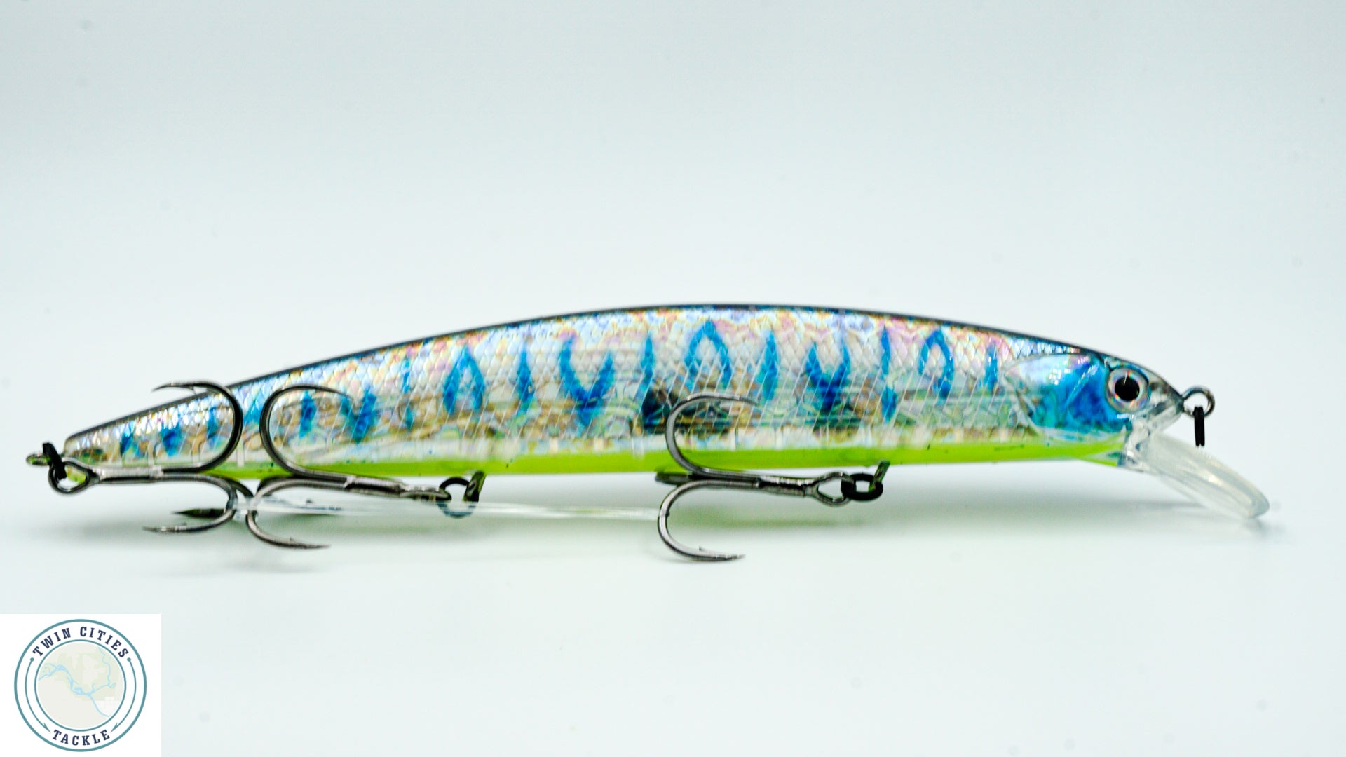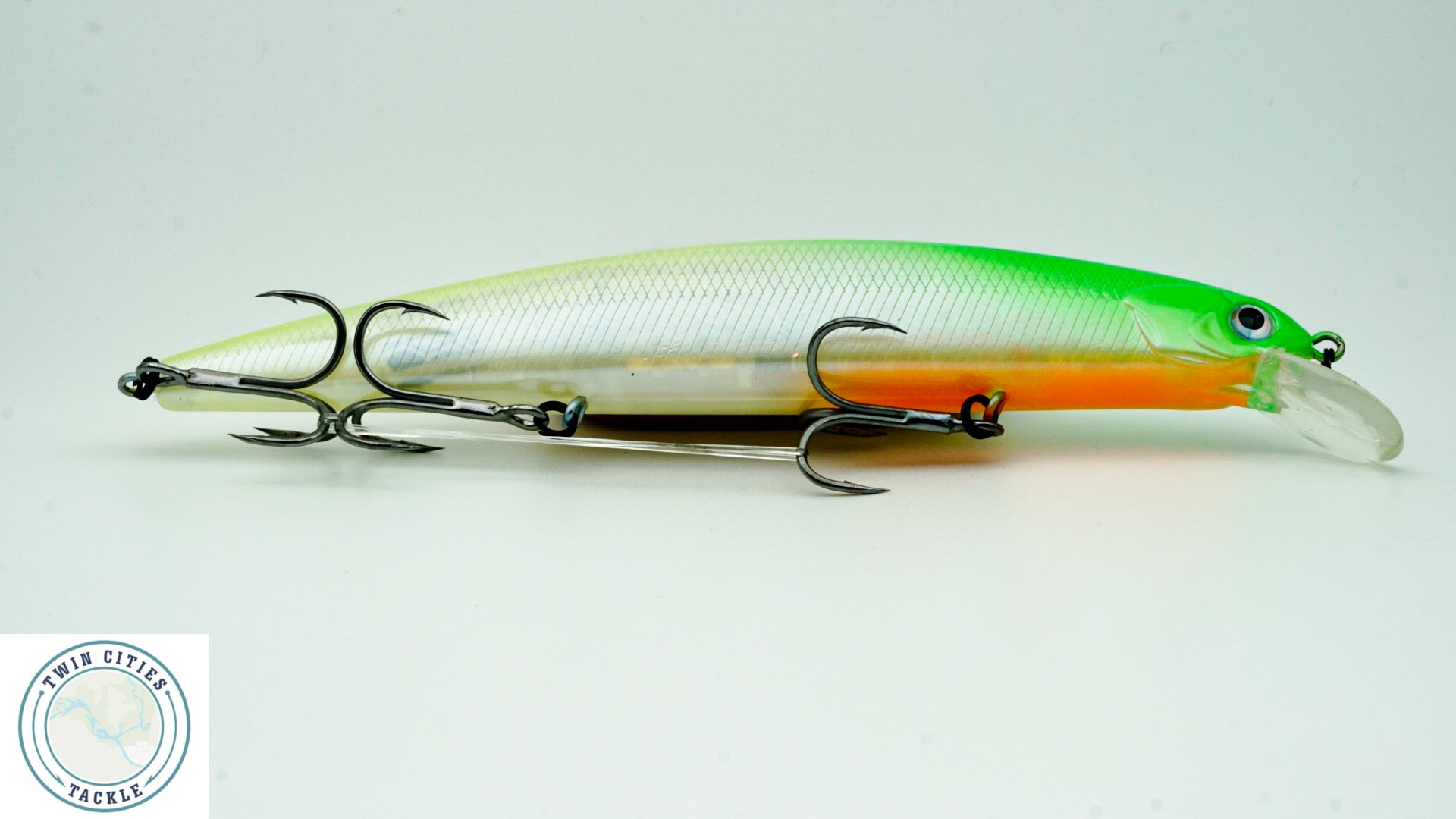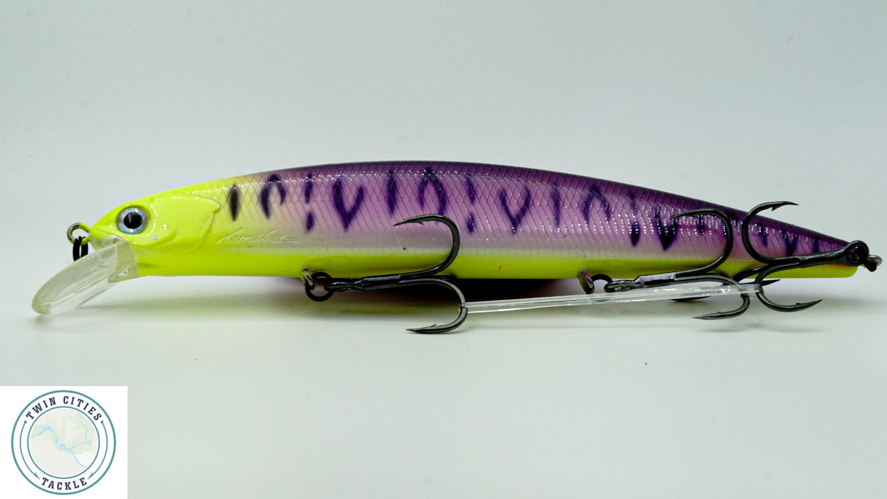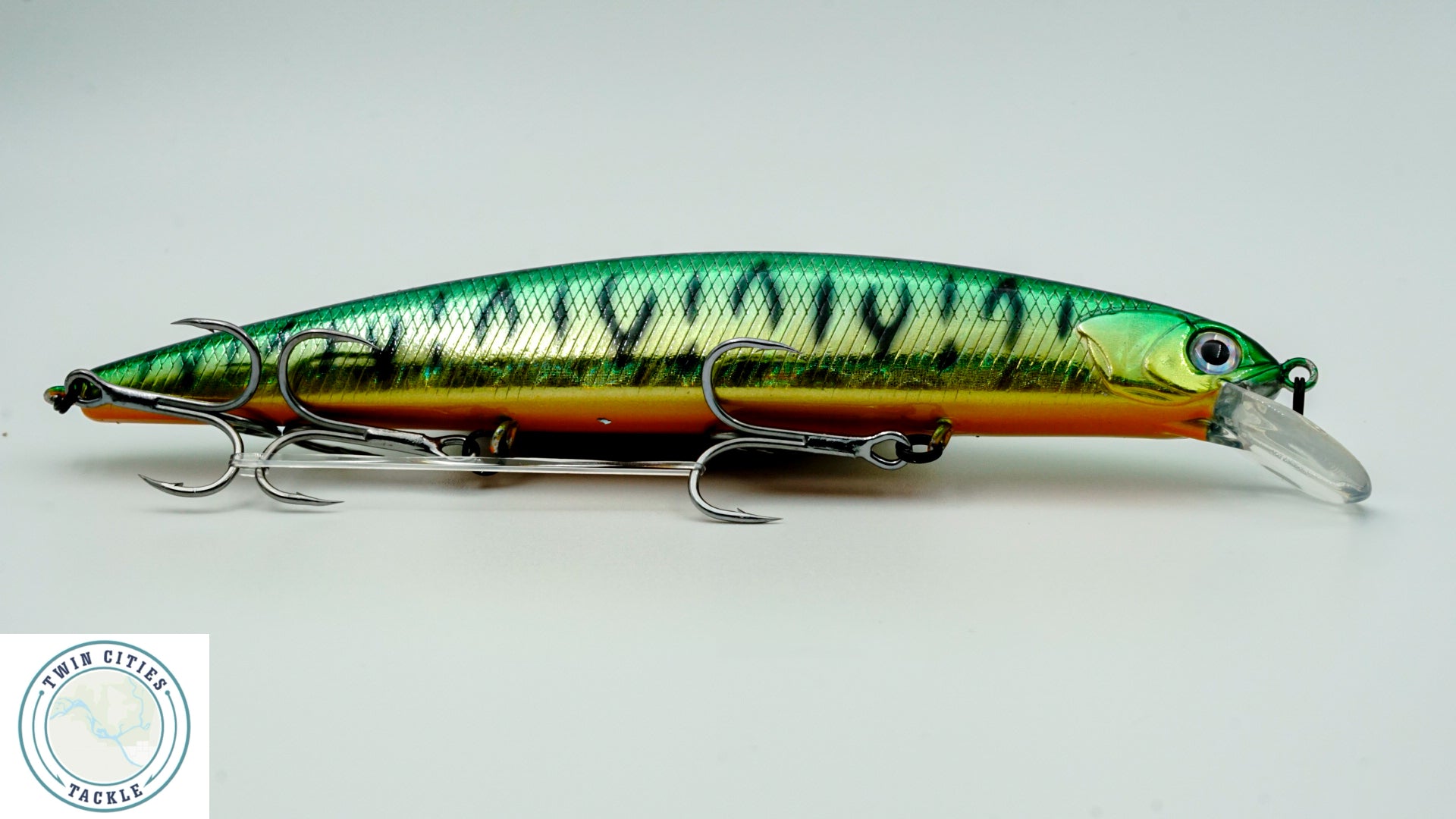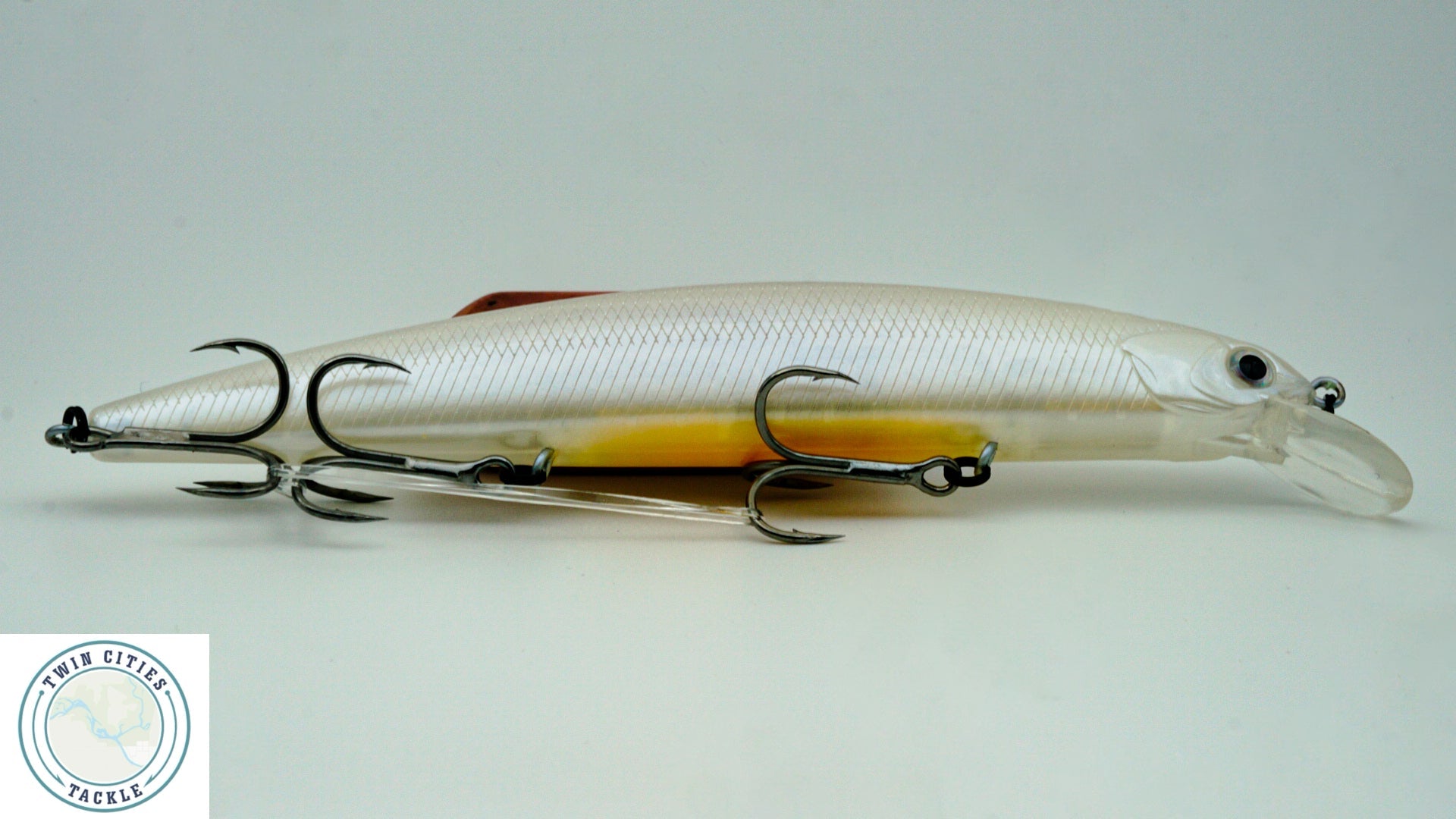 Prepare to experience the thrill of the hunt with the Twin Cities Tackle the Judge. This suspending jerkbait is engineered for maximum effectiveness, with a 5.125" body, 3/4oz weight, and 0-6' diving range to reach prime feeding zones. An internal weight transfer system delivers laser-guided casts, while super sticky hooks and a wide rolling action provoke vicious reaction strikes from gamefish. Available in 12 eye-catching colors, the Judge is ready to become your go-to bait for trolling or casting.