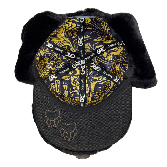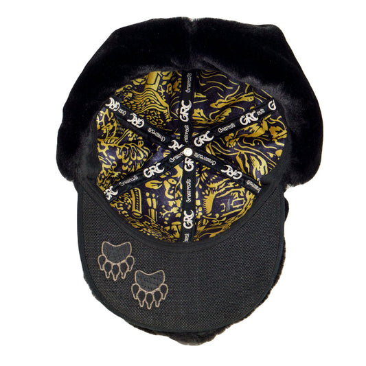 Black Bear Fur Earflap Snapback Hat