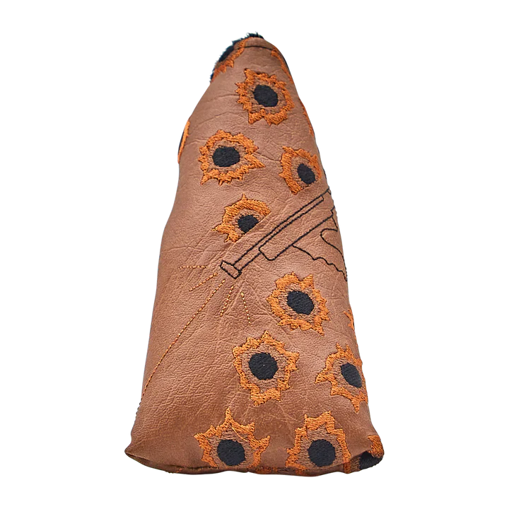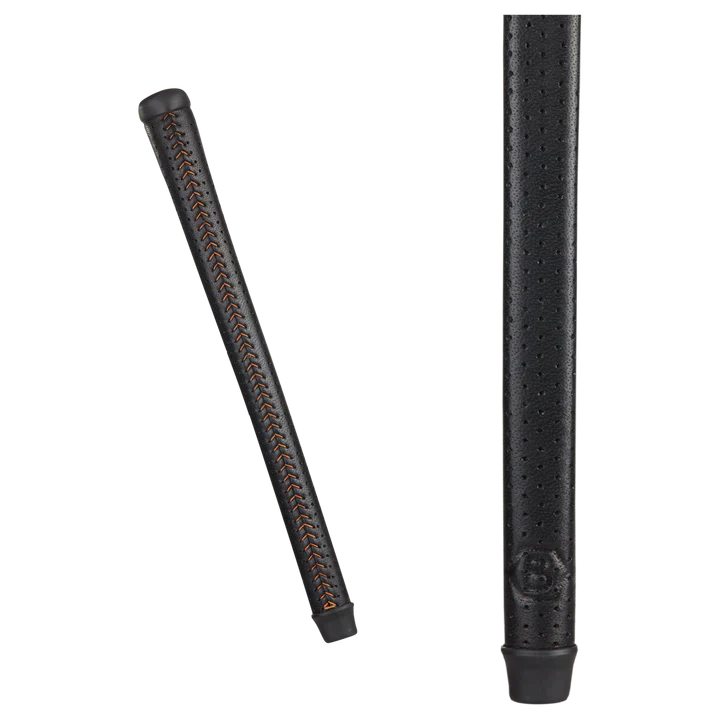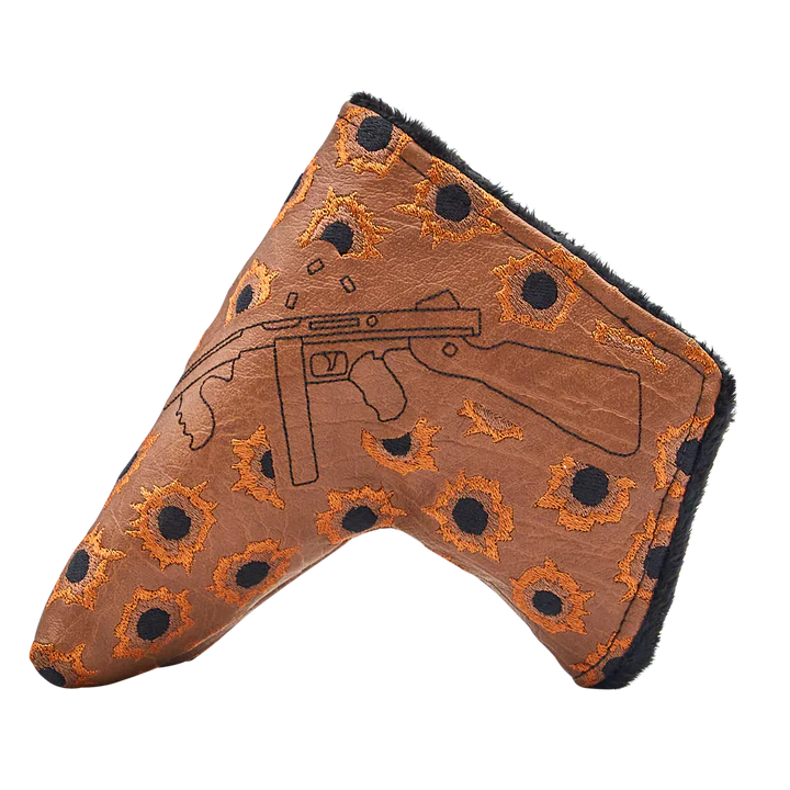 Introducing Robert J. Bettinardi’s SS17 Thompson Limited Run, crafted from the finest American 303 Stainless Steel, which includes 17 skillfully placed Copper plugs on the Flymill face and Honeycomb neck. The showstopping sole features an iconic Tommy gun, straight from the Prohibition era. This putter was precision-milled to 358 grams and features a vintage text treatment of the Bettinardi wordmark in the pocket that adds a Gatsby-style Art Deco touch. Completed with a sleek High Polish face and sole, this putter comes perfectly paired with a black leather Gripmaster grip with copper stitchback and a distressed leather headcover that matches perfectly with the putter. Good luck!