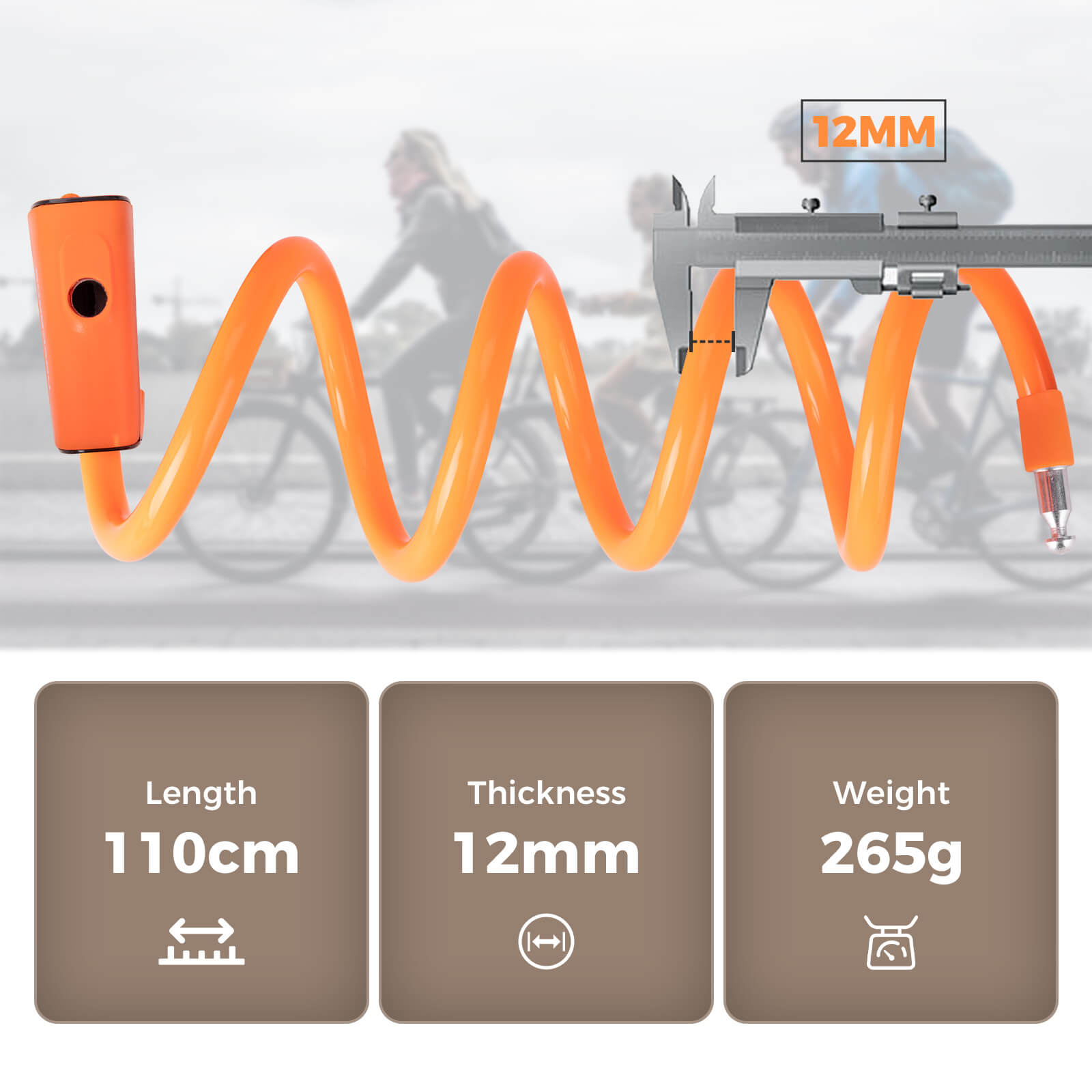 Built with a premium copper core and a 12mm flexible steel cable, this lock delivers both strength and convenience. Weighing only 0.7 lb (320g), it’s easy to carry while offering solid resistance against cutting or tampering. -