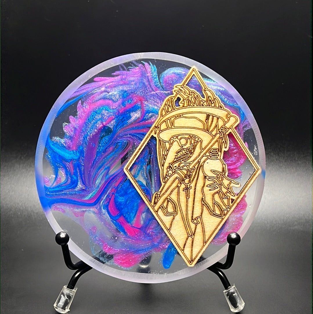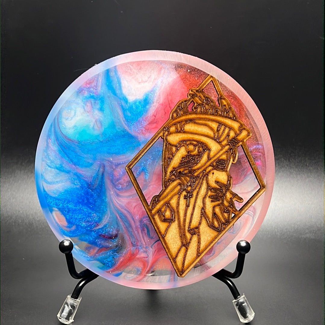 *Exclusive to Rare Air Discs, Wiser Hyzer has made glowing resign backdrops with a wooden "RAD Plague Doctor" design! These came out incredible - Four Pictures of each one!