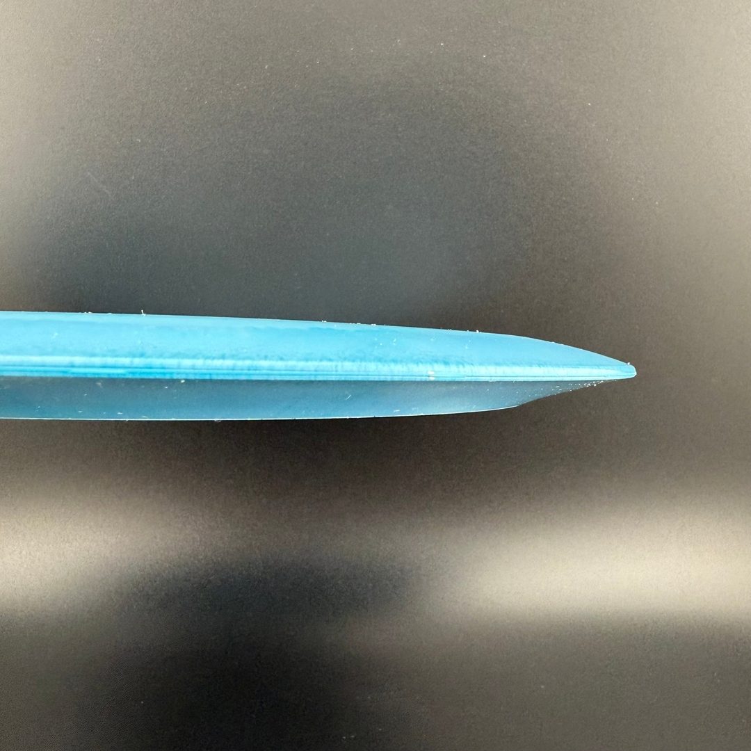 The Prodigy D1 is an overstable, ultra high speed driver (speed 13 using the Innova system). Like all very high speed drivers, the D1 has a thick (2.3 cm) rim. While the rim is considered thick, it isn’t maximum PDGA width. The width is the same as discs such as the Innova Krait and Westside King. While the D1 is overstable, it isn’t a “meathook”, or one we would classify as “very overstable.” The D1 is a fantastic driver for power throwers, windy shots, forehand throws, and strategic doglegs.