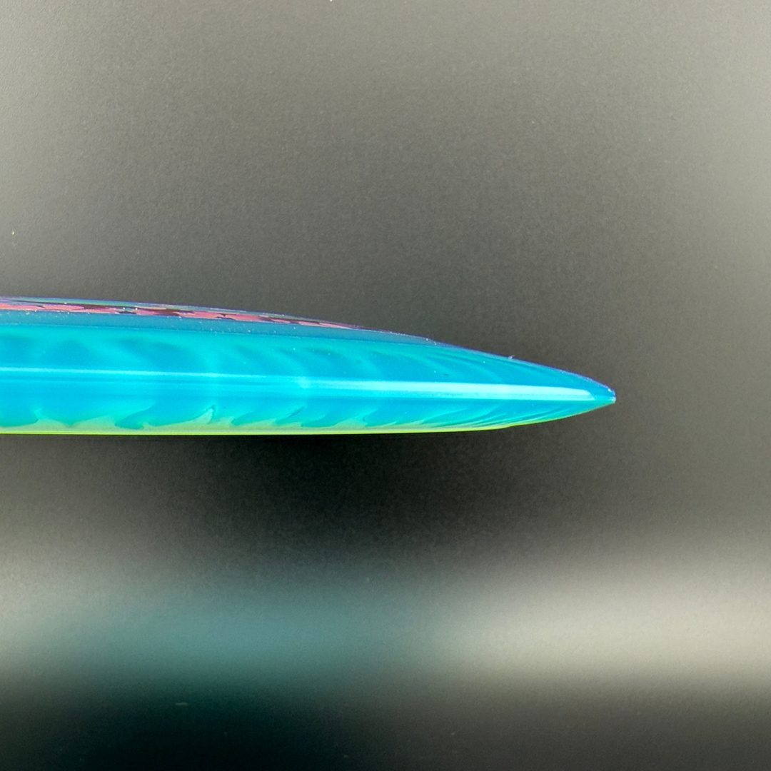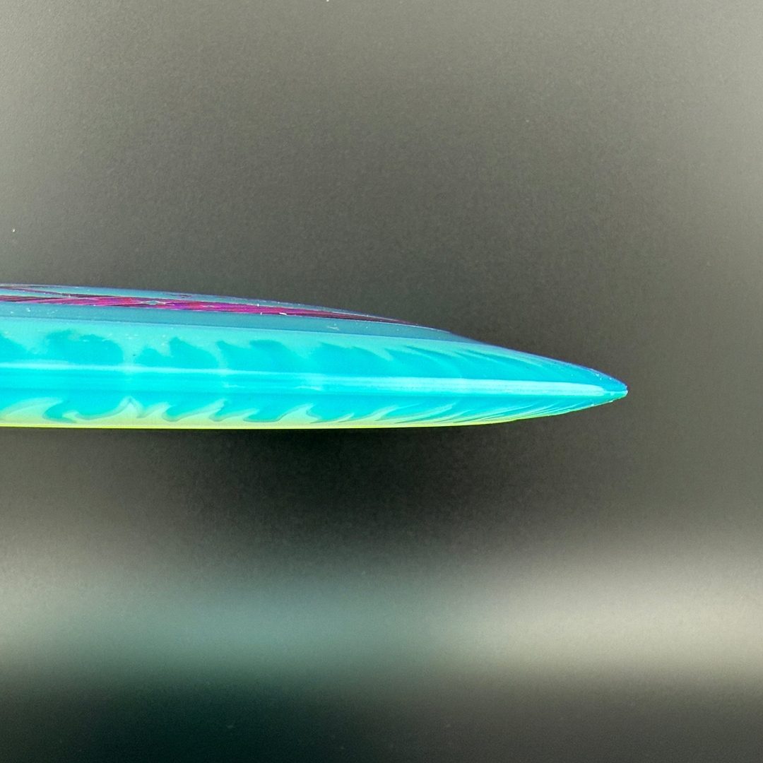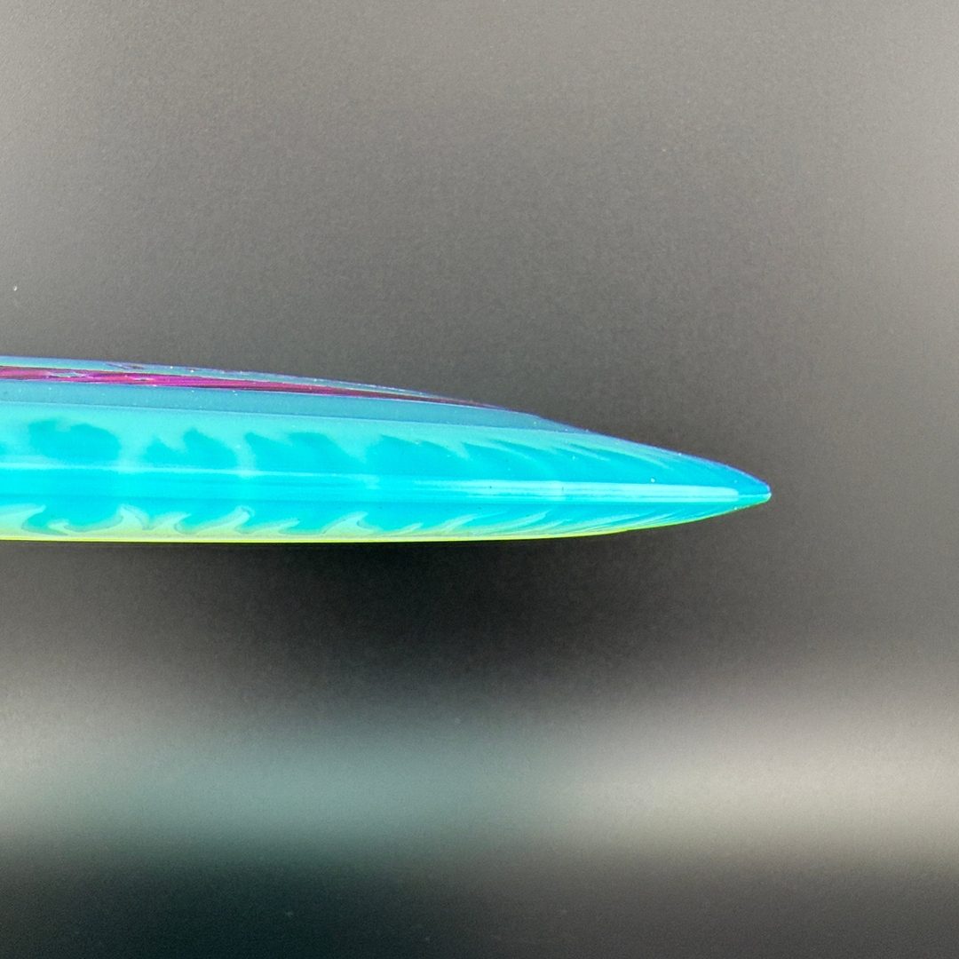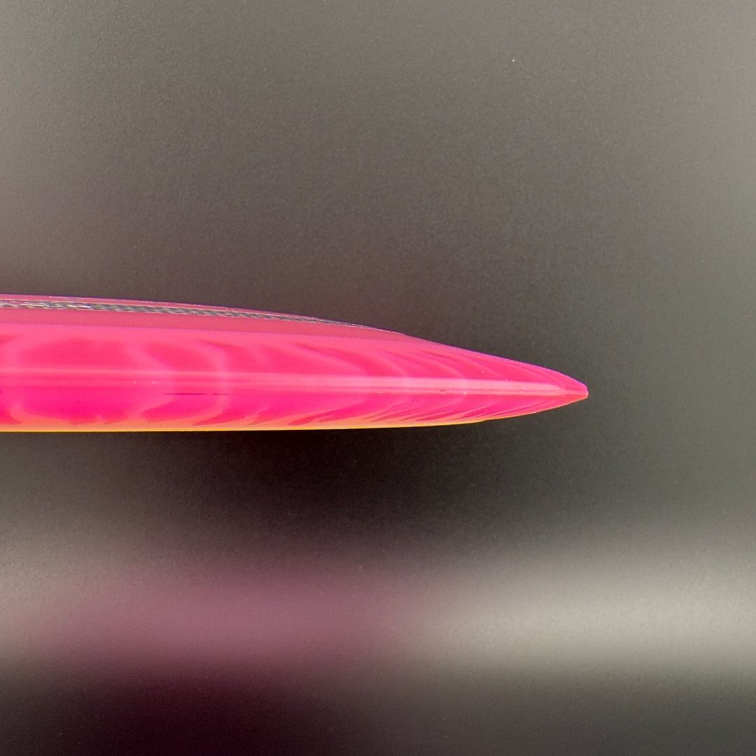 The Discraft FuZed Scorch is a standout in both performance and aesthetics, thanks to its innovative FuZed Line plastic. This unique blend fuses two different premium plastics, creating eye-catching, swirled patterns—particularly noticeable in the rim—while maintaining a high level of durability and grip. Unlike traditional plastics, the FuZed Line combines the best features of both stiff and flexible materials, offering a stable yet comfortable feel in the hand. This makes it ideal for players who want both visual flair and dependable performance on the course.
