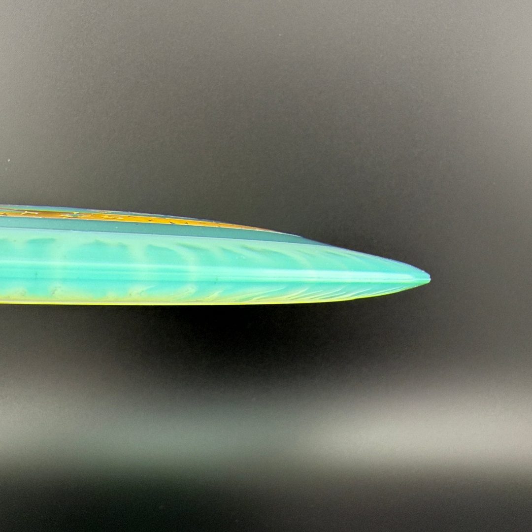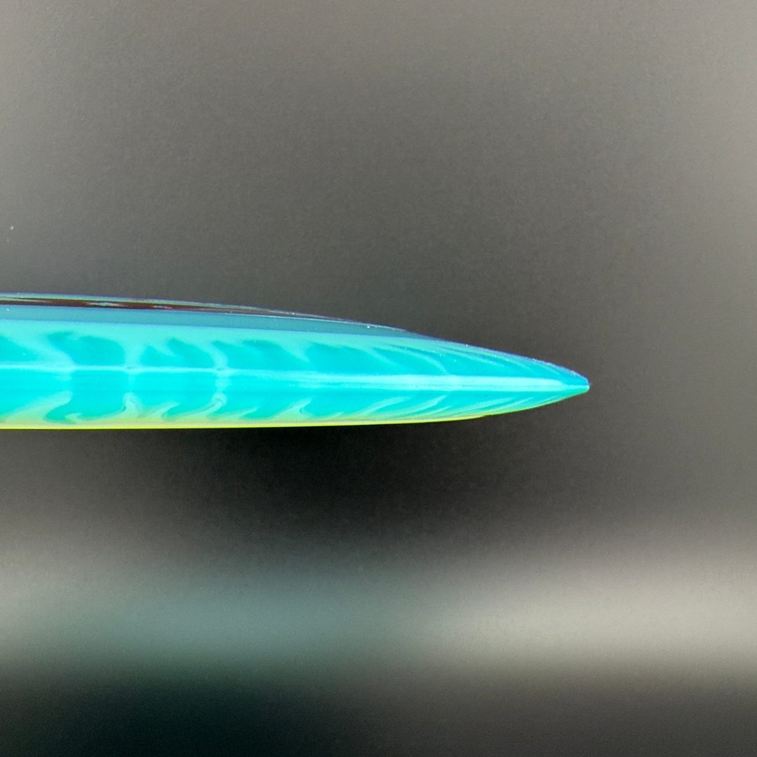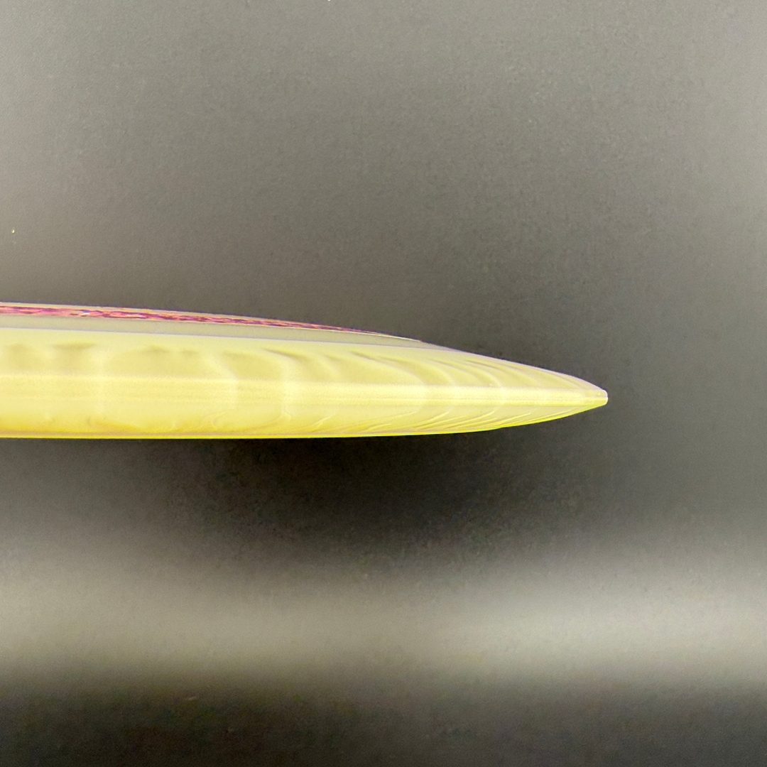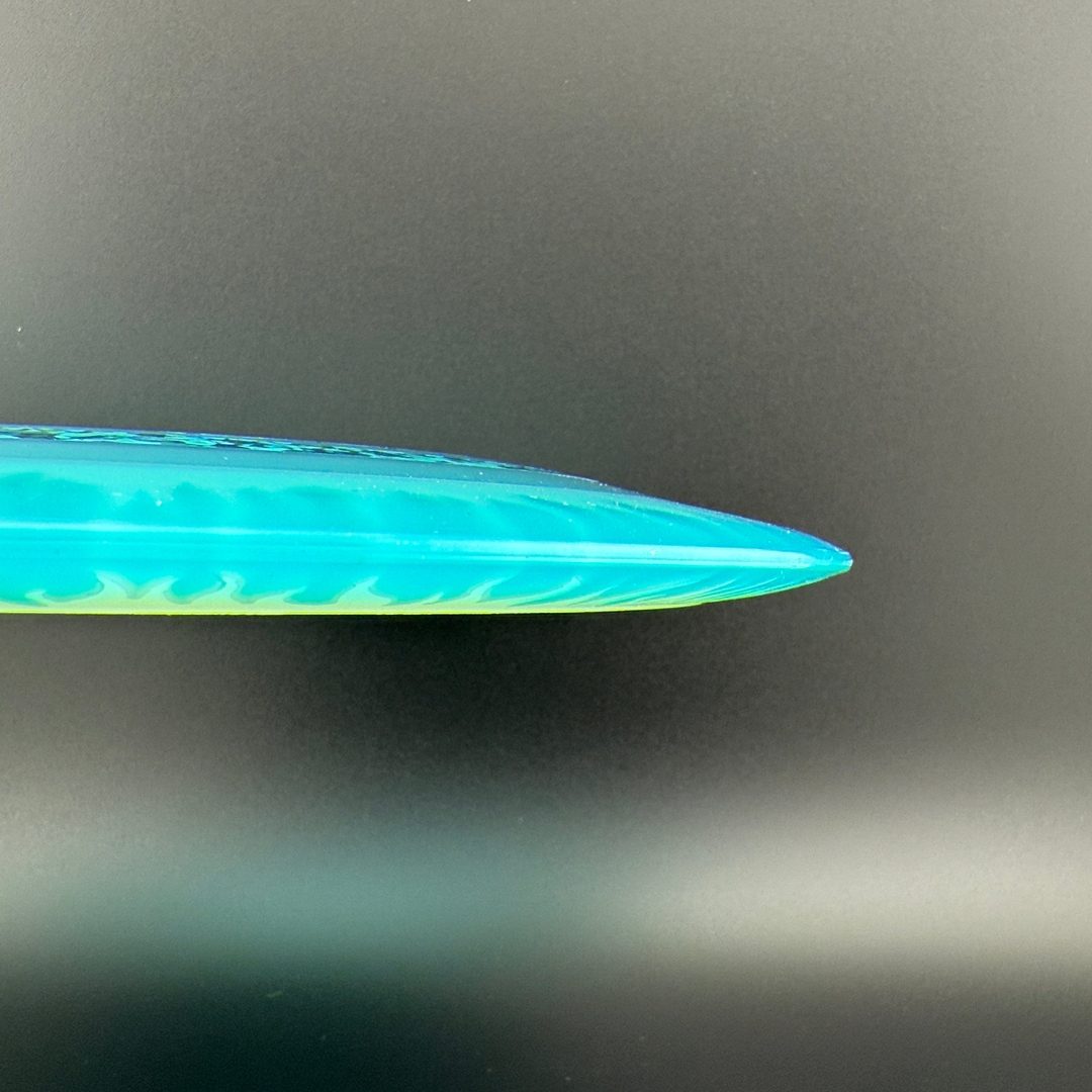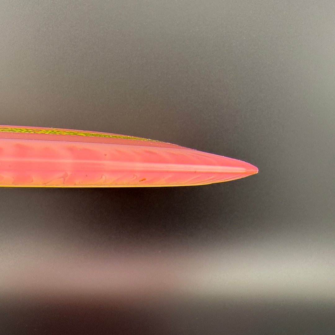 The Discraft FuZed Scorch is a standout in both performance and aesthetics, thanks to its innovative FuZed Line plastic. This unique blend fuses two different premium plastics, creating eye-catching, swirled patterns—particularly noticeable in the rim—while maintaining a high level of durability and grip. Unlike traditional plastics, the FuZed Line combines the best features of both stiff and flexible materials, offering a stable yet comfortable feel in the hand. This makes it ideal for players who want both visual flair and dependable performance on the course.