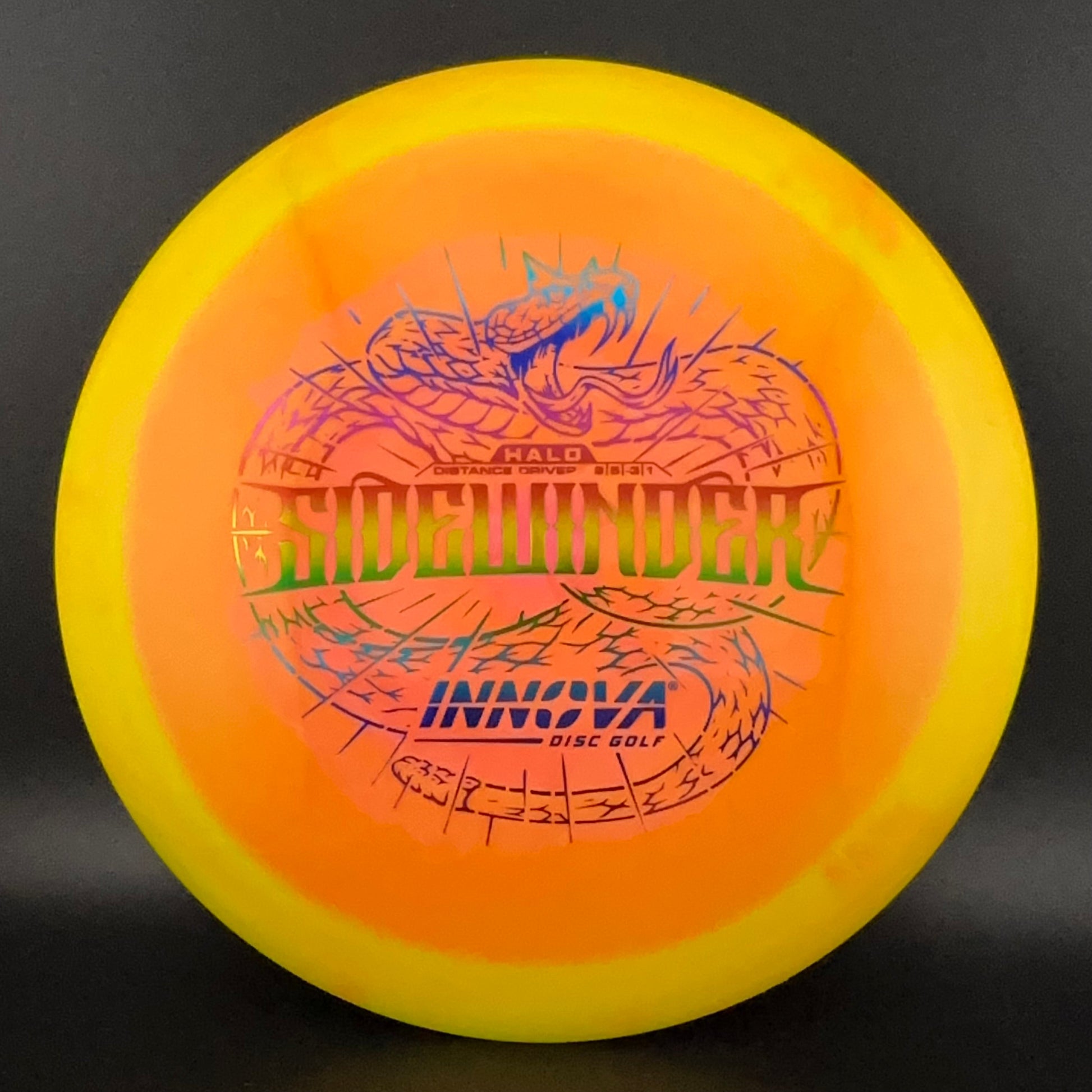 The Sidewinder is a fast flyer with a predictable high speed turn and lots of glide. This disc can add distance to anyone’s drive, but is especially useful for those with less power. The Sidewinder is our best disc for long turnover shots and long distance rollers. Grab the extra glide and superior looks with the Halo Star material!