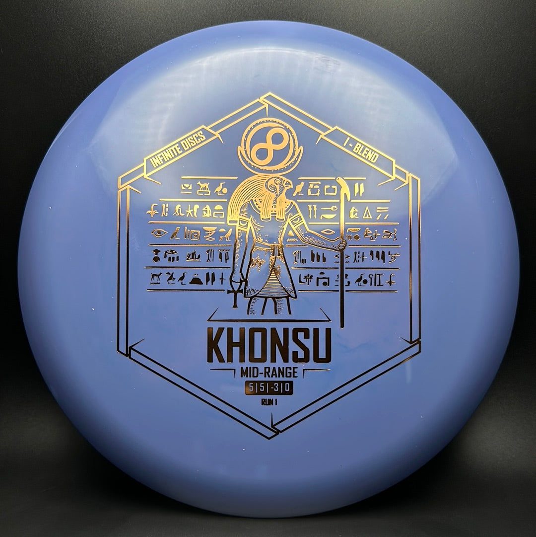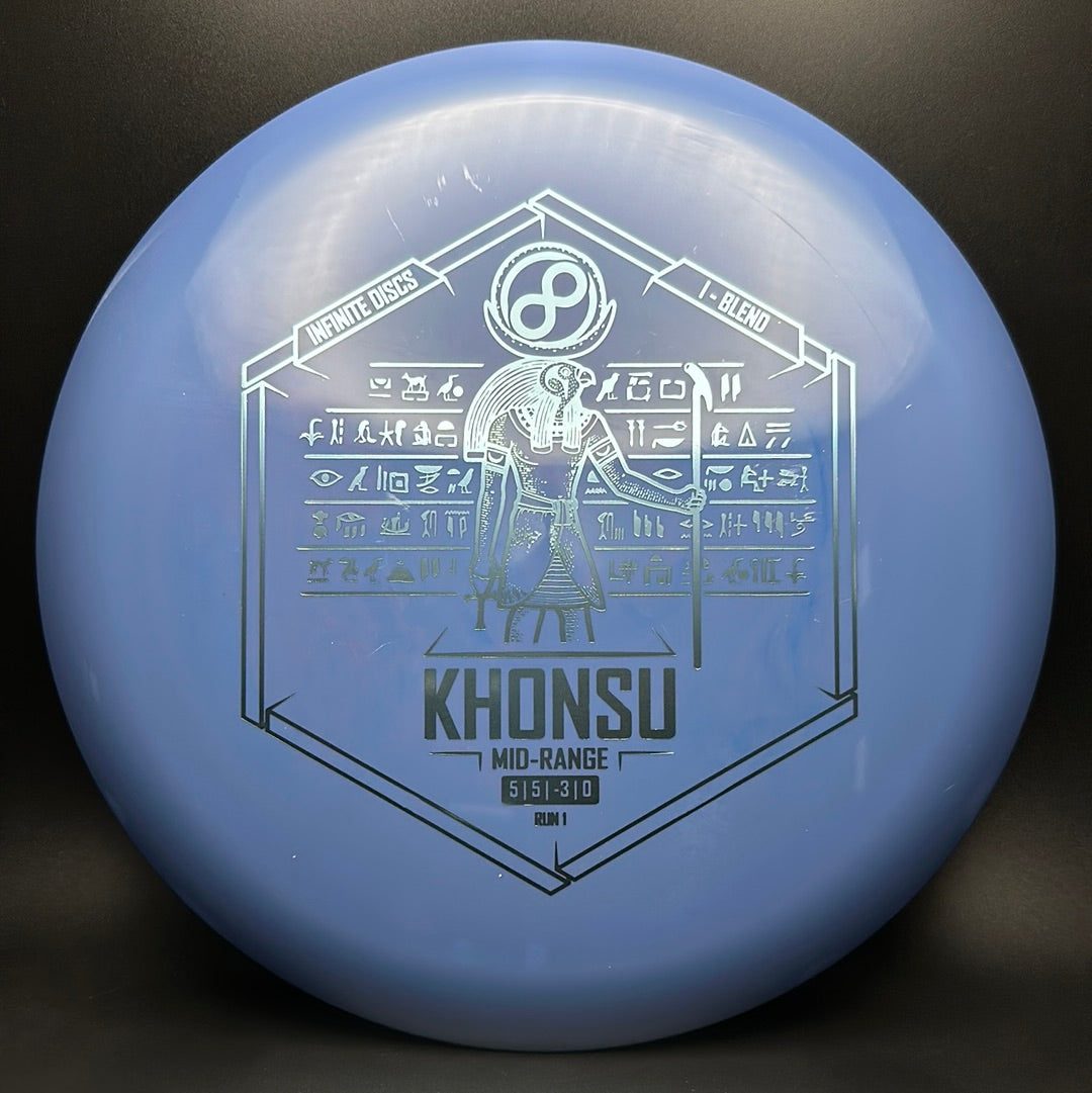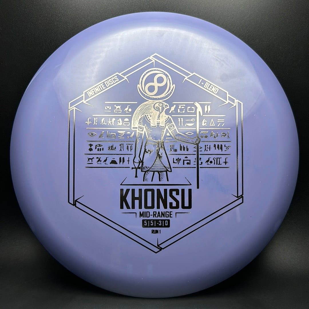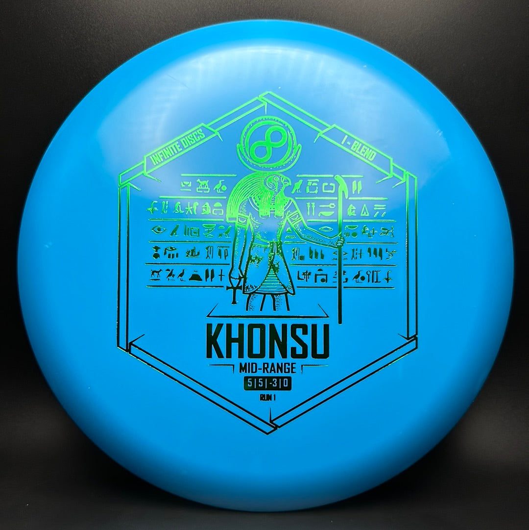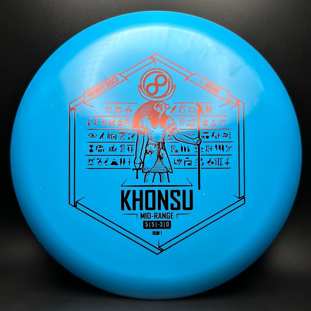 The Khonsu is an awesome, understable, beadless addition to Infinite's midrange line up. Throw the Khonsu on hyzer and it will go super straight, or give it a little anhyzer and it will hold the line when trying to get around something. This disc feels excellent and is a must for anyone needing an understable midrange.