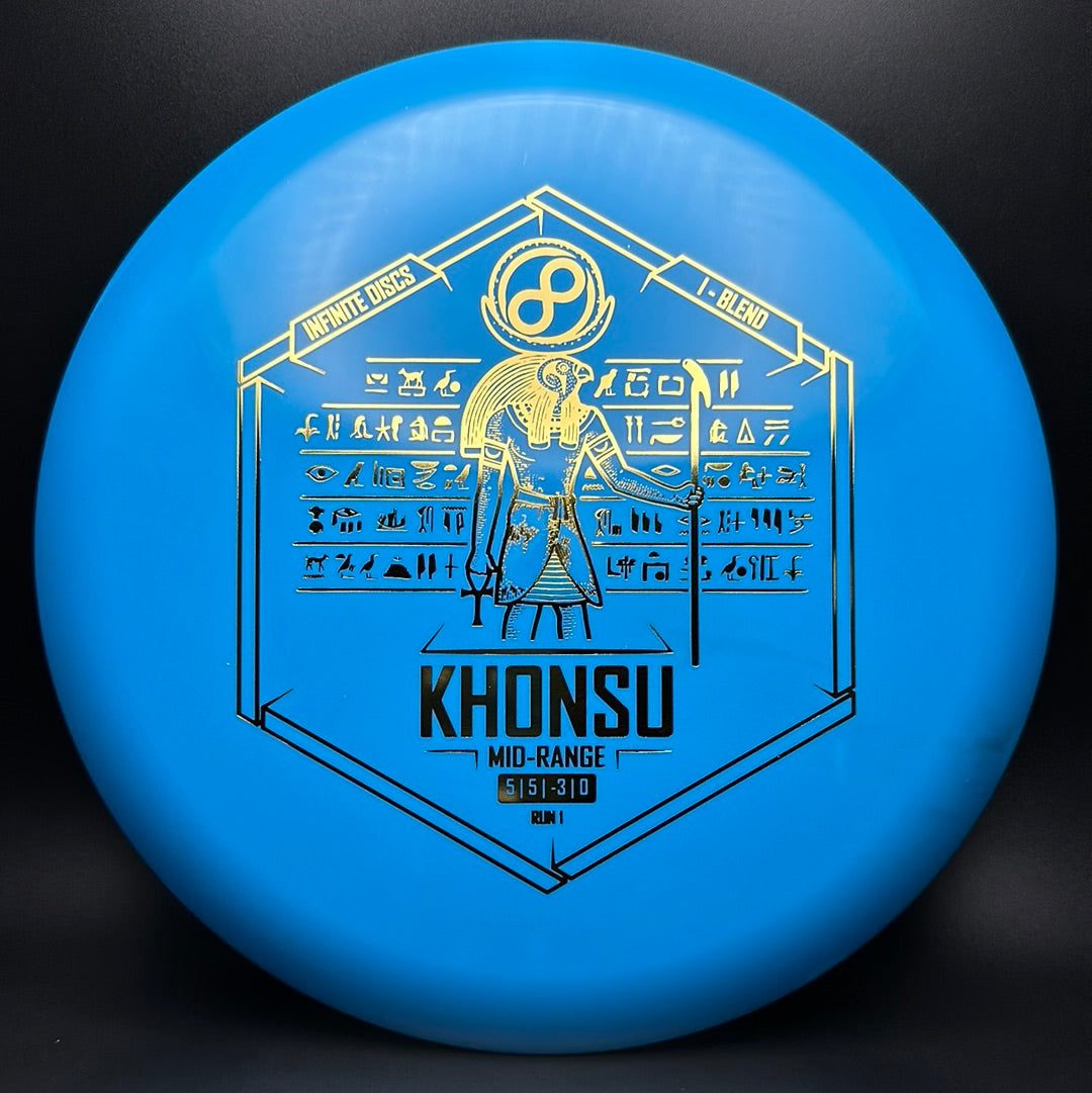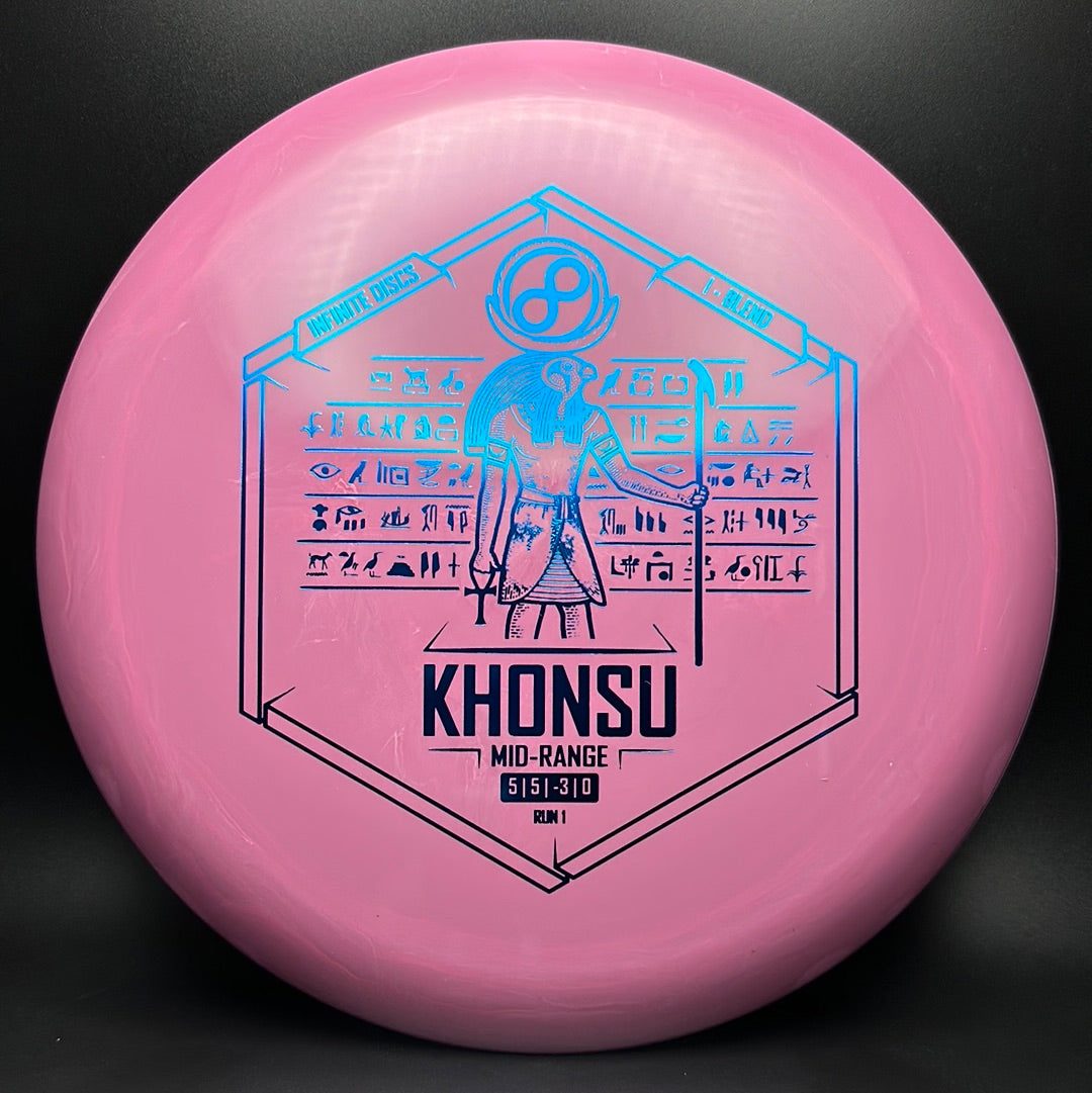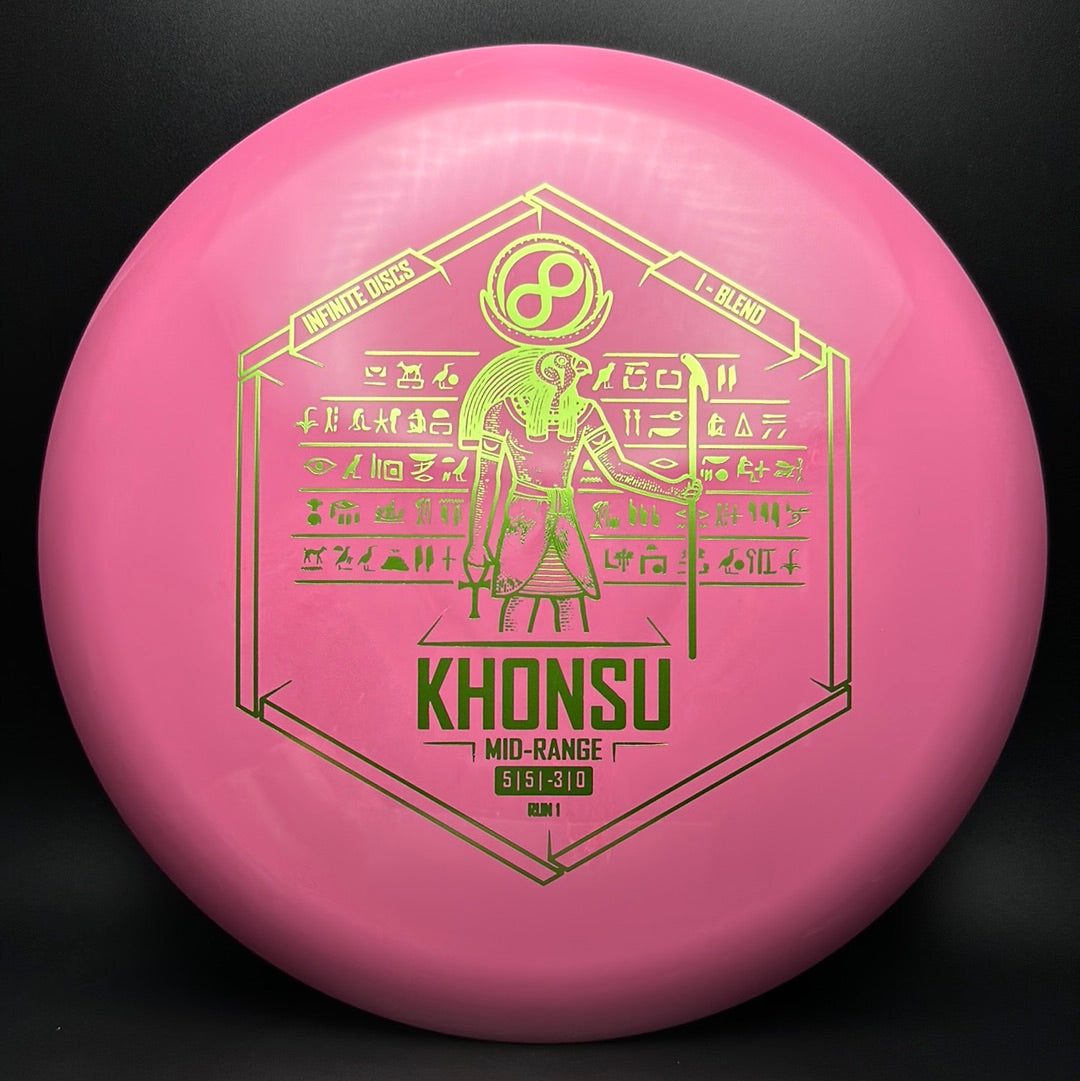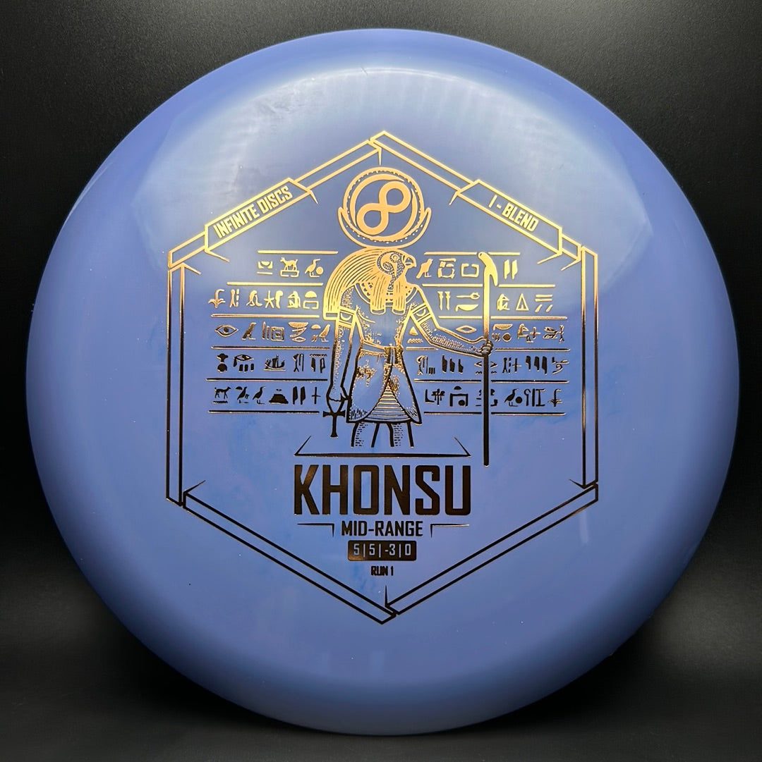 The Khonsu is an awesome, understable, beadless addition to Infinite's midrange line up. Throw the Khonsu on hyzer and it will go super straight, or give it a little anhyzer and it will hold the line when trying to get around something. This disc feels excellent and is a must for anyone needing an understable midrange.