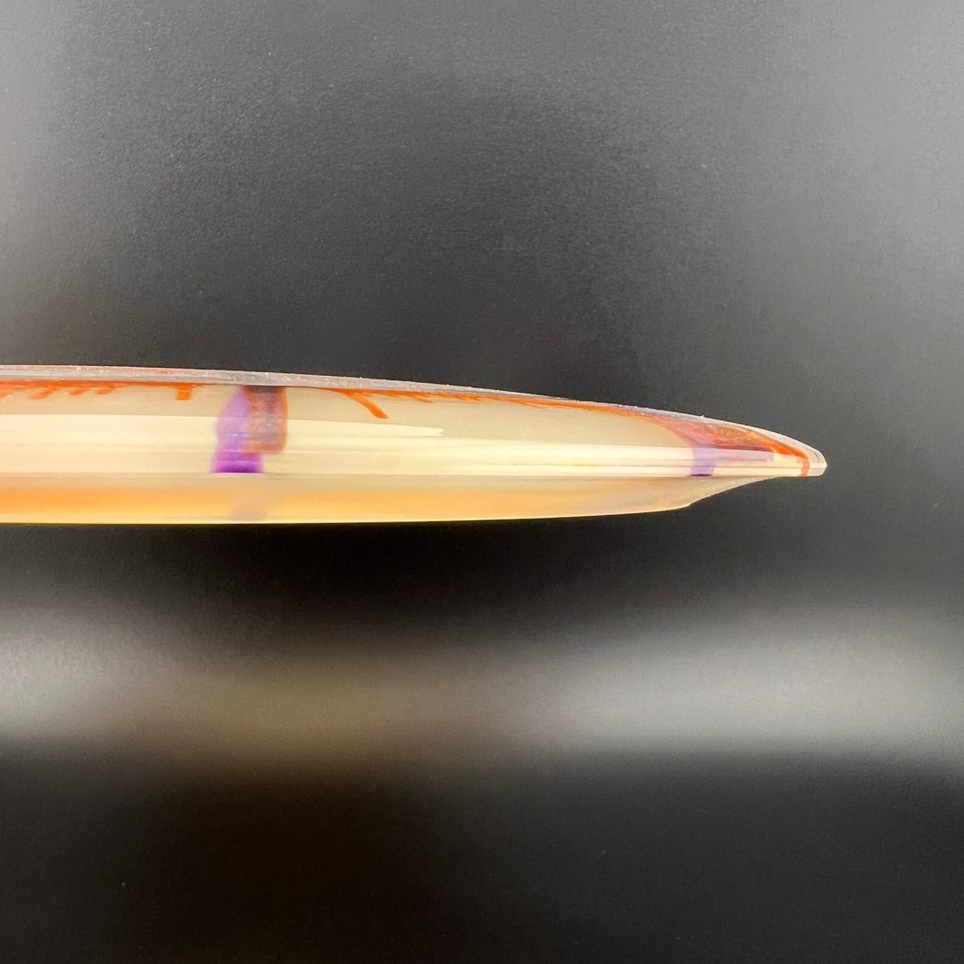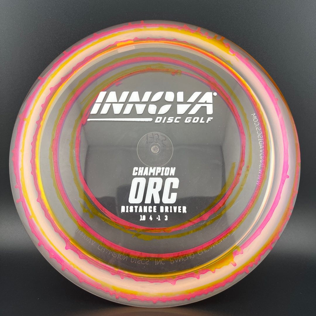The Orc is a classic 10 Speed driver made by Innova. This is a fast but accurate flying disc, good for intermediate players. The Orc flies well for both backhand and forehand throws. This is an overstable disc, but it has a degree of understable turn (-1) which gives it a nice flying S path. The Orc is taller than the average distance driver and has a thinner rim. In lighter weights, this disc is a good driver for newer disc golfers. The Orc is also a good beginner disc for new players who prefer forehand throws.