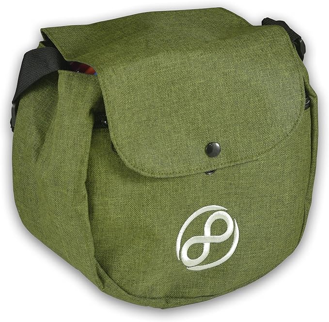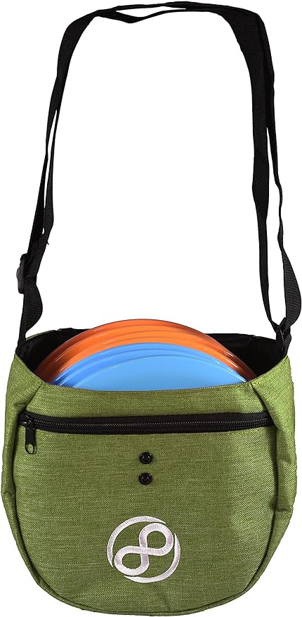 The Infinite Discs Easy Bag is the most affordable, easy way to carry your favorite disc golf discs around the course for your casual play. Yet even for the low price, it is made from quality, long-lasting material and features an embroidered logo for a clean, simple look. It has a zipper pocket on the front, two snap positions to close the top flap over your discs for transport or storage, and an adjustable shoulder strap. The Easy Bag carries 8-10 discs.