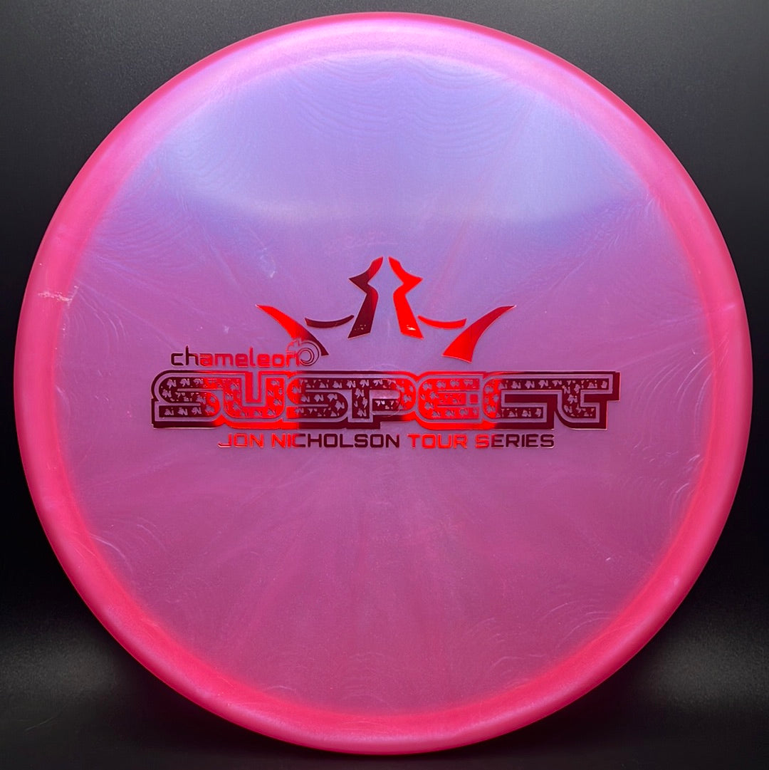 I like the Suspect because it is very torque resistant but does not have the aggressive overstability that accompanies most discs with similar resistance. I can throw it as hard as I want and it goes straight with a super slow fade. It’s a cheat code.
