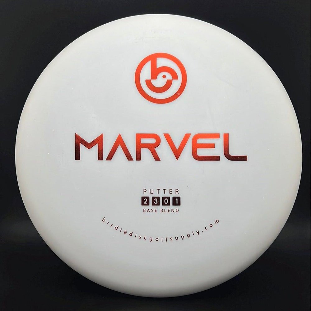 The Marvel by Birdie Disc Golf Supply is a straight to slightly overstable beadless putter and is very consistent for putting and throwing alike. The Marvel takes well to spin putts as well as push putts.